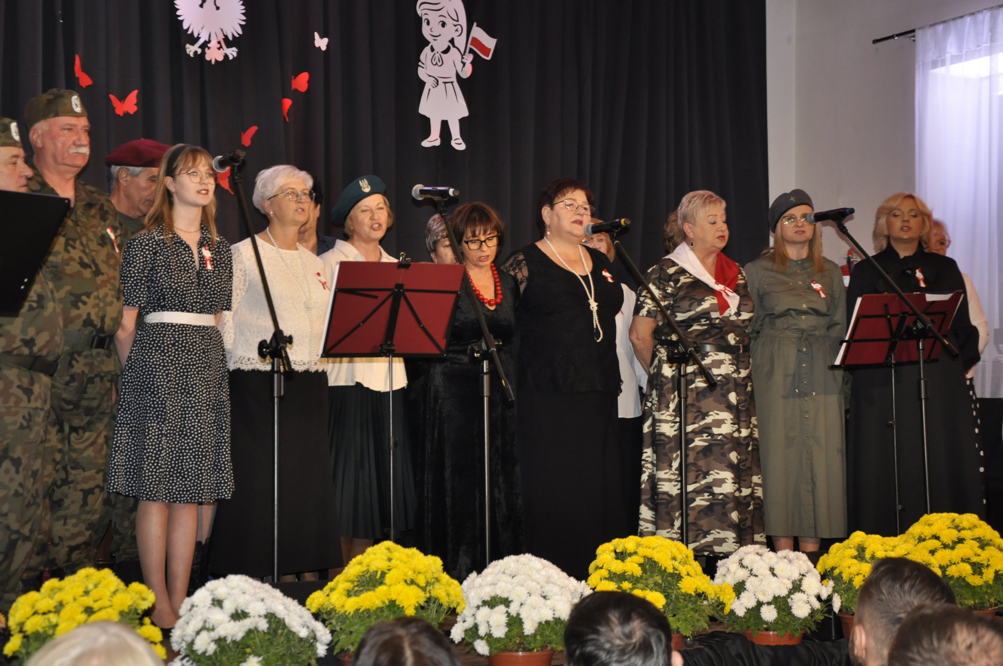 „Porębianie” zachwycili zgromadzonych pięknie przygotowanym programem artystycznym w którym pieśni patriotyczne przeplatały się z wątkami historycznymi. Najlepszym komentarzem do scenicznych prezentacji były długie i rzęsiste brawa po każdym z utworów.