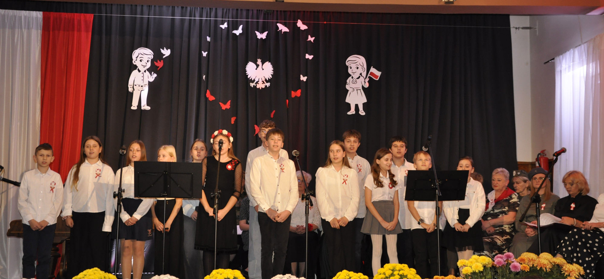 Była to już ósma edycja patriotycznego spektaklu „Niepodległość Pieśnią Opowiedziana”. Widowiskowy koncert, który po wspólnym odśpiewaniu Mazurka Dąbrowskiego i Roty rozpoczęła pieśń Jana Pietrzaka „Żeby Polska była Polską”, prowadziła była dyrektor Szkoły Podstawowej w Porębie Wielkiej - Małgorzata Bucka.