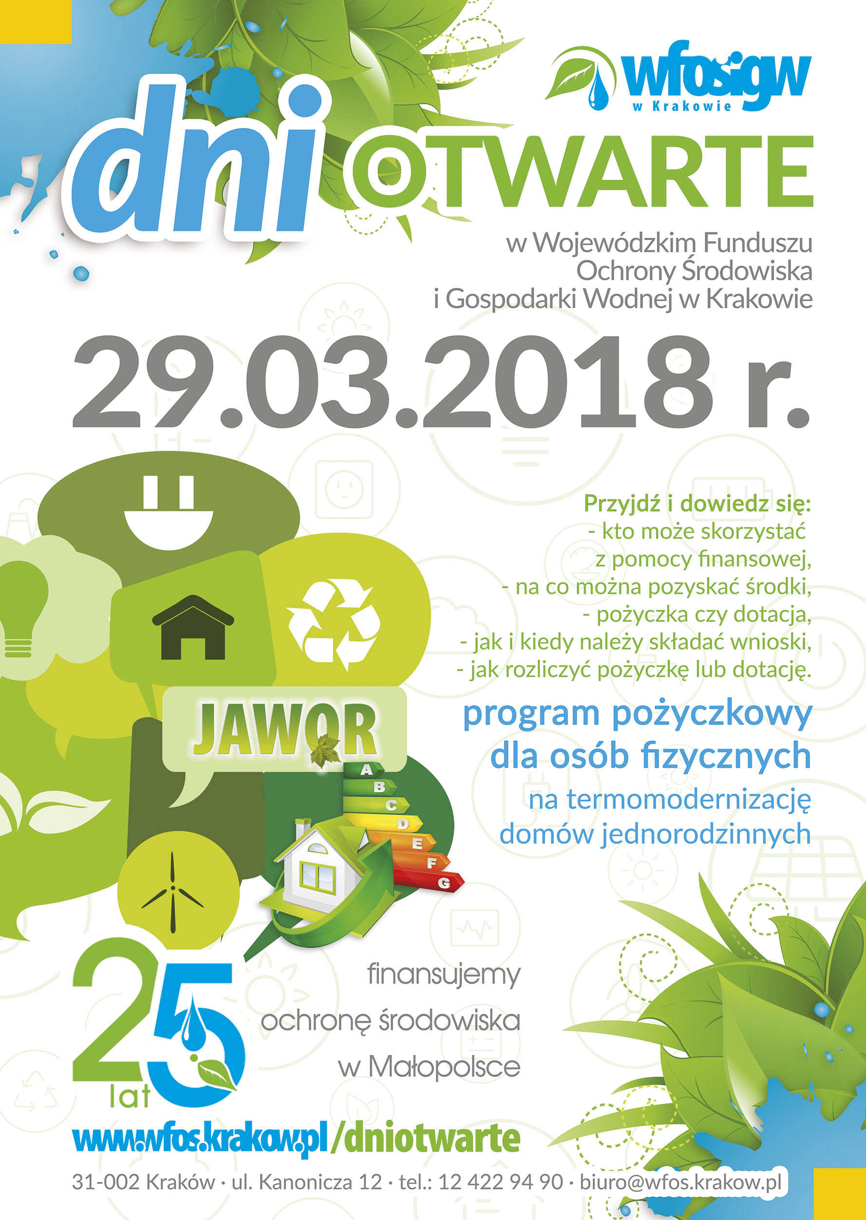 W imieniu Prezesa Zarządu Wojewódzkiego Funduszu Ochrony Środowiska i Gospodarki Wodnej w Krakowie, zapraszamy na Dzień Otwarty, który odbędzie się w dniu 29 marca 2018 r....