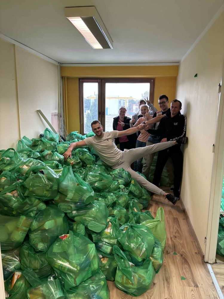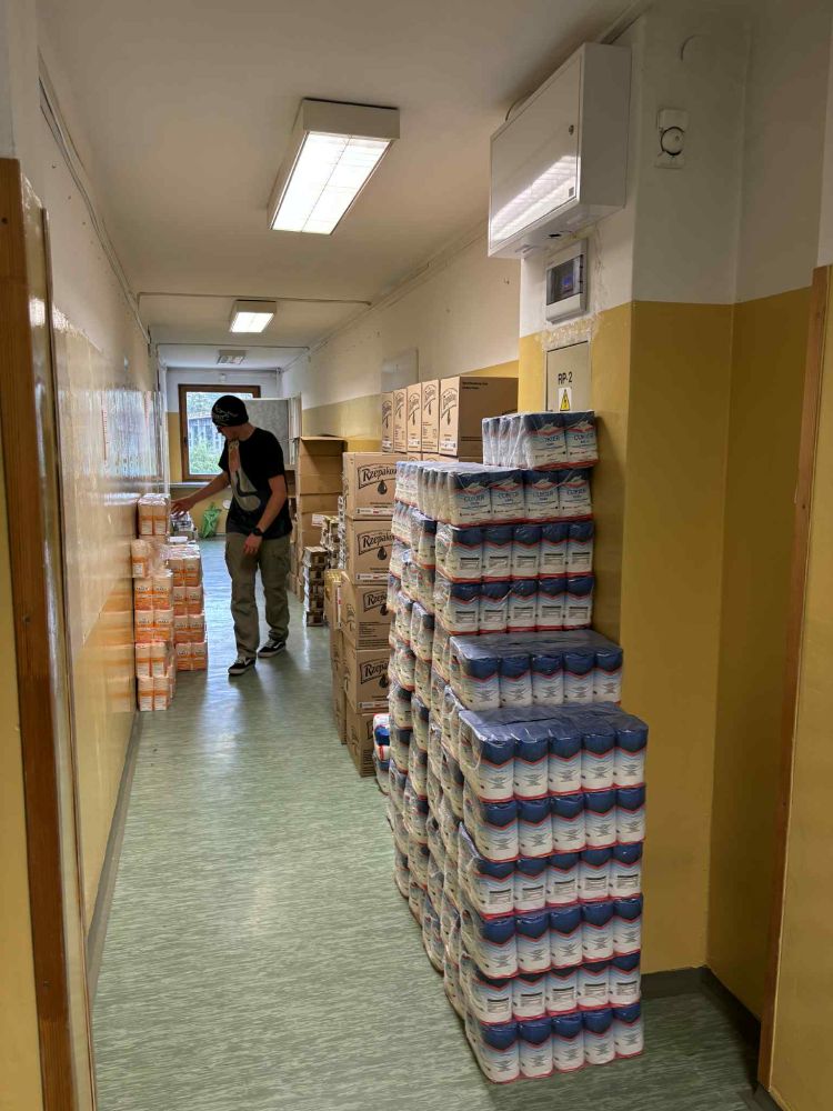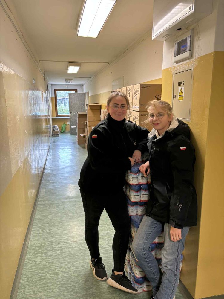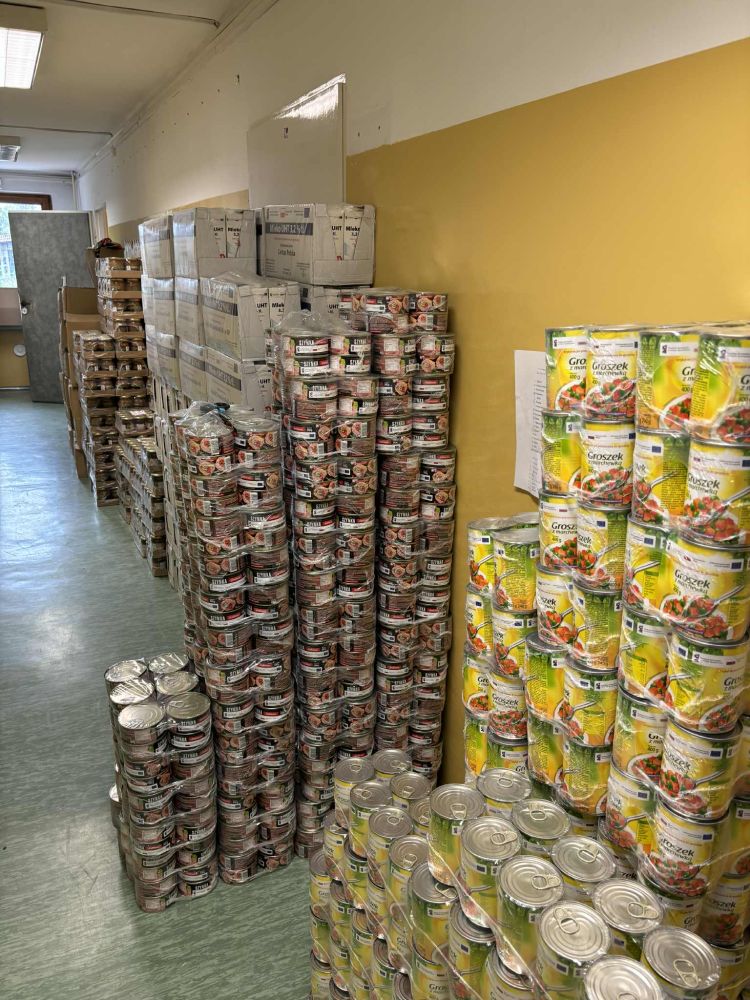 Produkty spożywcze w ilości ok.  16 ton  zostały przywiezione i złożone w wyznaczonym do tego pomieszczeniu w formie paczek żywnościowych, które wydawane były przez pracowników socjalnych w siedzibie Szkoły Podstawowej w Rajsku, w magazynie przy