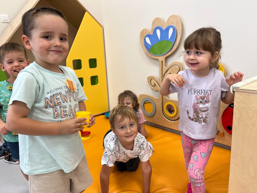 To był wyjątkowy czas pełen emocji, nowych doświadczeń i radosnych chwil. Dzieci z dużym zaangażowaniem poznawały swoje otoczenie, salę, zabawki oraz oczywiście siebie nawzajem. Z dnia na dzień stawały się coraz odważniejsze i bardziej otwarte, a wspólne zabawy sprzyjały nawiązywaniu pierwszych przyjaźni.