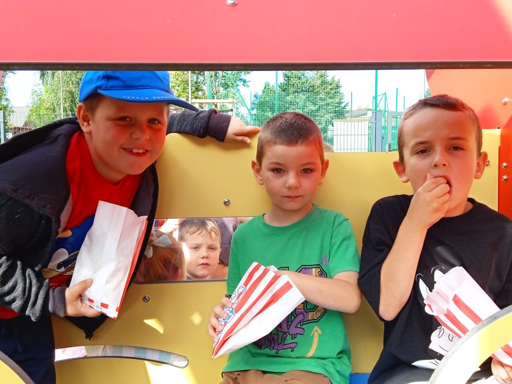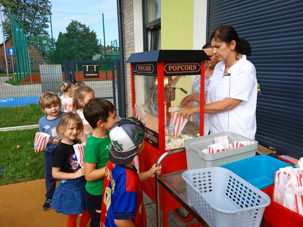Po występie na przedszkolaków czekała cała masa atrakcji: pyszny popcorn, który chrupał wesoło w małych rączkach, bańki mydlane, unoszące się w powietrzu i wywołujące zachwyty, malowanie, które pozwoliło dzieciom dać upust swojej kreatywności,