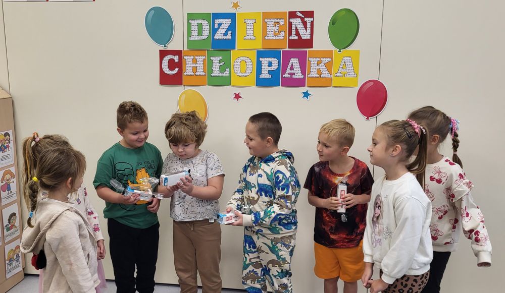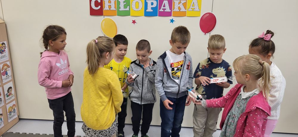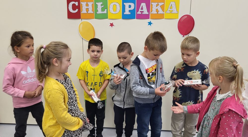 30 września chłopcy z grupy Kotki obchodzili Dzień Chłopaka. Z tej okazji dziewczynki składały chłopcom życzenia oraz wręczały upominki.