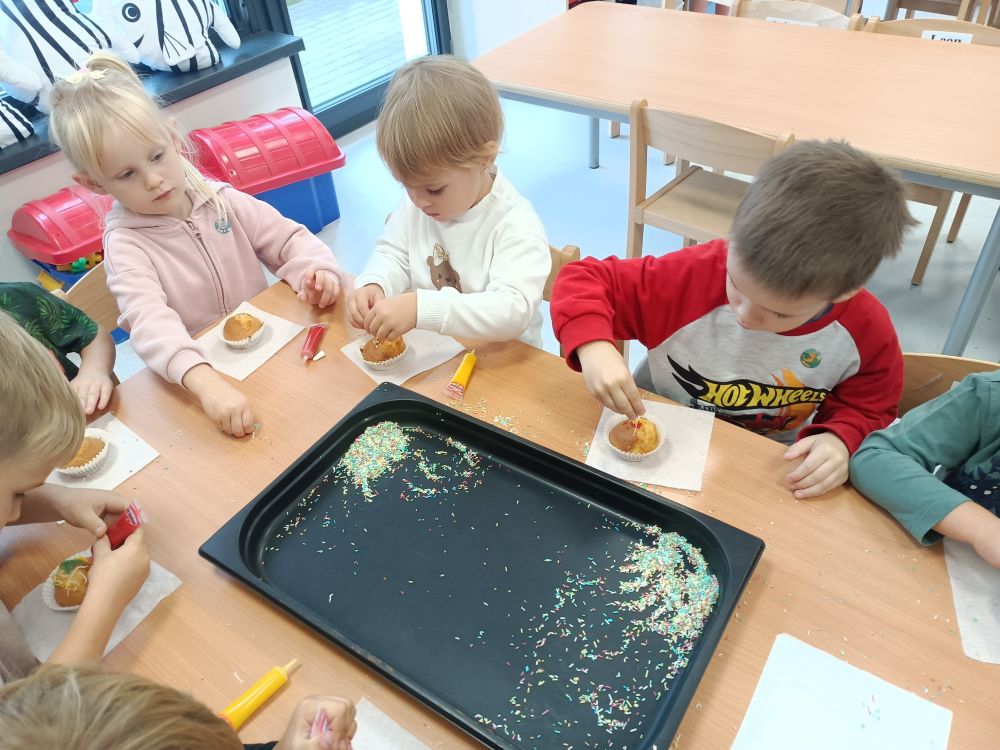 Chłopaki z grupy Rybek obchodzili święto chłopaka. W tym dniu nie zabrakło ani dobrego humoru ani wesołych min. Dziewczynki złożyły życzenia oraz wręczyły upominki. Dodatkowo przedszkolaki wcielili się w role małych kucharzy przygotowując ciasto na pyszne babeczki. Dzieci chętnie łączyły ze sobą składniki, dodawały kolejne produkty. Po upieczeniu przez panią kucharkę ozdabiały lukrowymi pisakami oraz kolorową posypką. Wszystkim bardzo smakowała słodka niespodzianka.