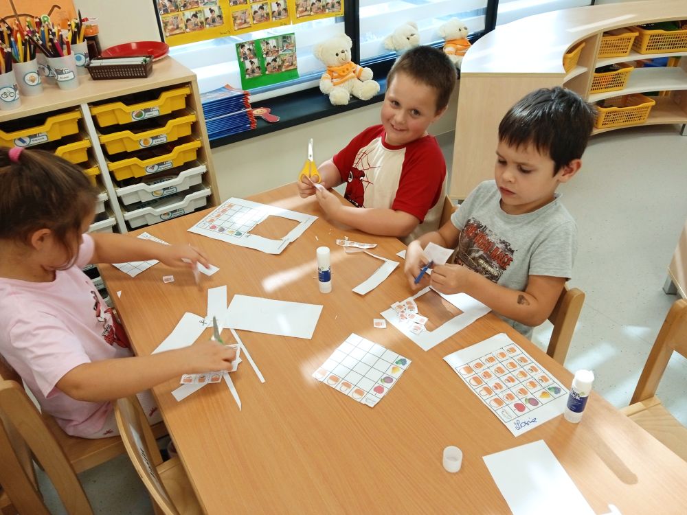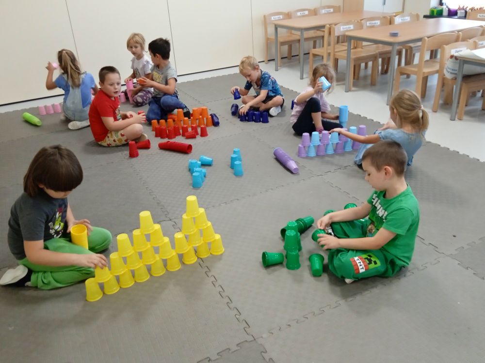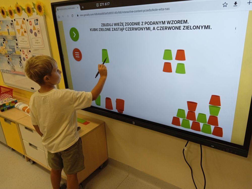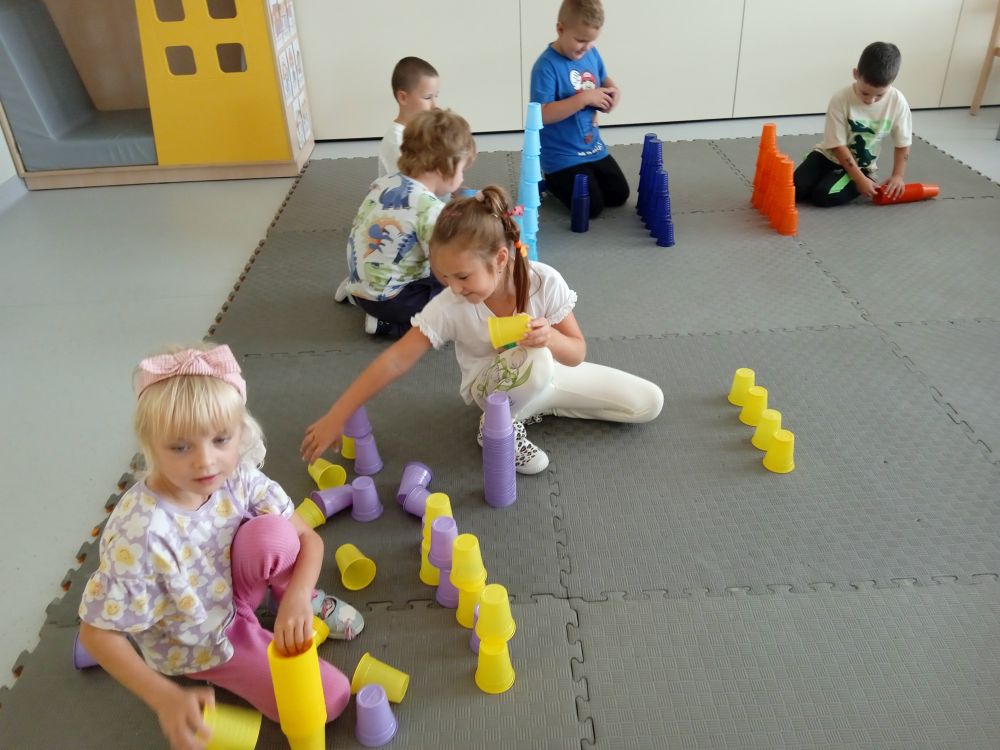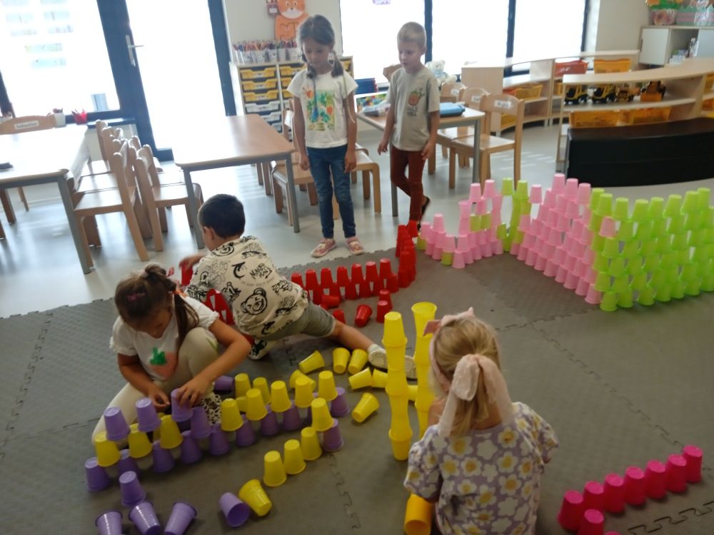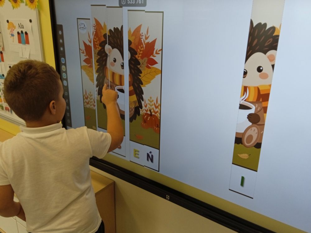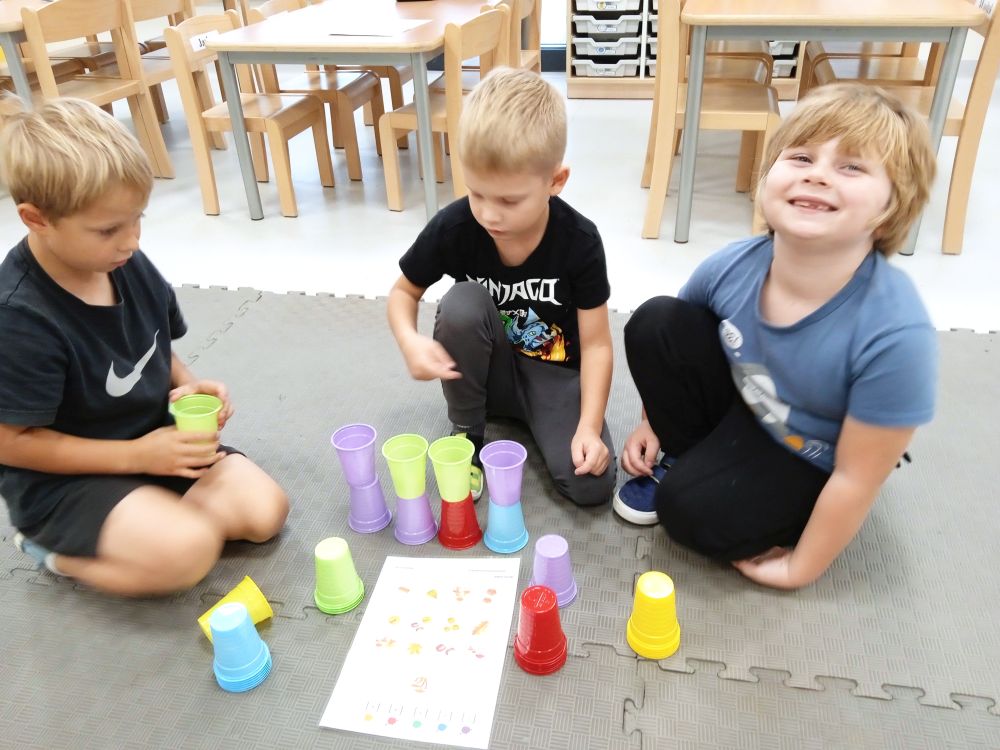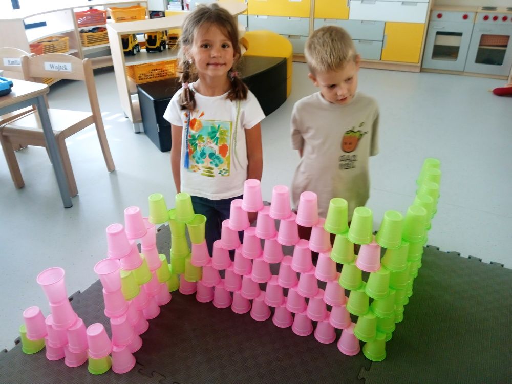 W miesiącu wrześniu dzieci z gr. Kotki realizowały trzy tematy -Witamy w przedszkolu, Ja, ty, my - tworzymy zakodowany grupowy kodeks, Dary jesieni. Poprzez zabawy offline i online zapoznały się z matą do kodowania- posługiwały się pojęciami: w prawo, w lewo, do góry, w dół , odszukiwały na macie pole określone za pomocą dwóch współrzędnych, miały możliwość tworzenia logicznych instrukcji dotyczących codziennych czynności, układały kody z wykorzystaniem symboli. Poznały robota Ozobot Bit oraz zasady jego sterowania - za pomocą kolorowych kodów programowały robota, tak aby poruszał się po wyznaczonej trasie.