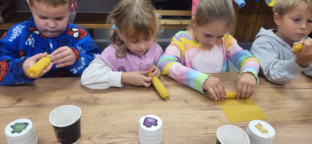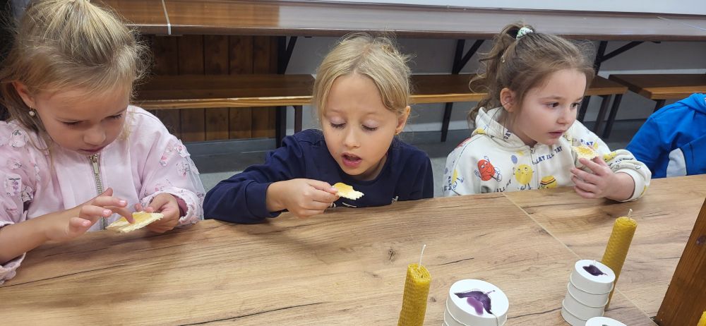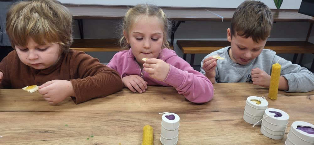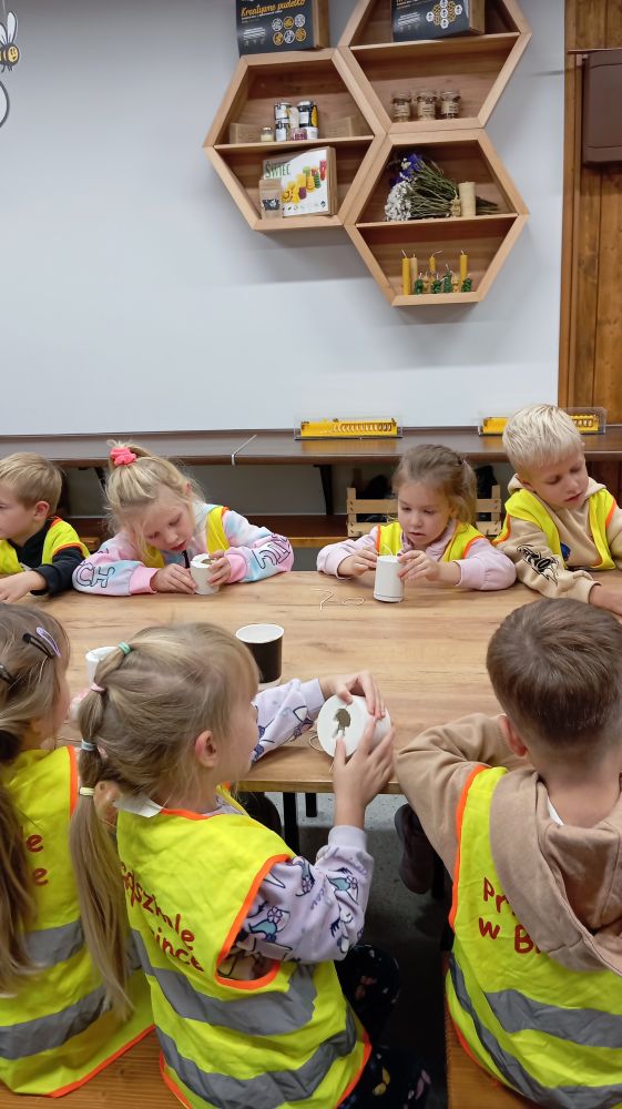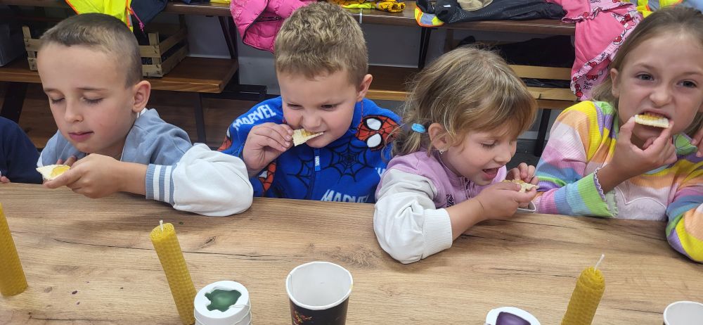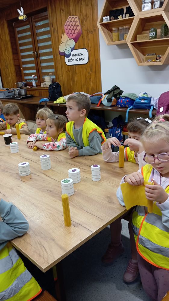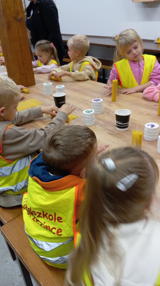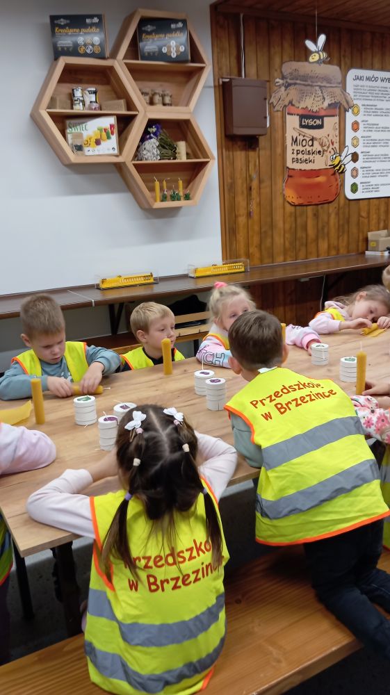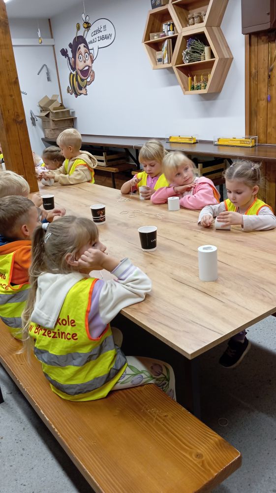 23 września w ramach projektu „Poznaję, eksperymentuję, tworzę – podnoszenie jakości edukacji przedszkolnej w Przedszkolu Samorządowym w Brzezince” Kotki i Jeżyki uczestniczyły w wycieczce do Apilandii. W tym miejscu przedszkolaki mogły przenieść się do świata pszczół. Dzieci brały udział w warsztatach, podczas których wykonały świeczki z pszczelego wosku, próbowały pyłek pszczeli, miód, a w pszczelim mieście dowiedziały się kto mieszka w ulu, jak zbudowana jest pszczoła, jakie są mododajne rośliny. Dzieci z ciekawością oglądały film o pracy pszczelarza.