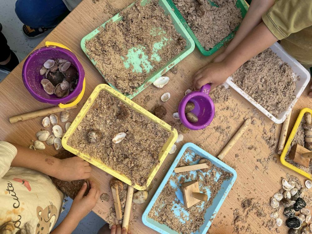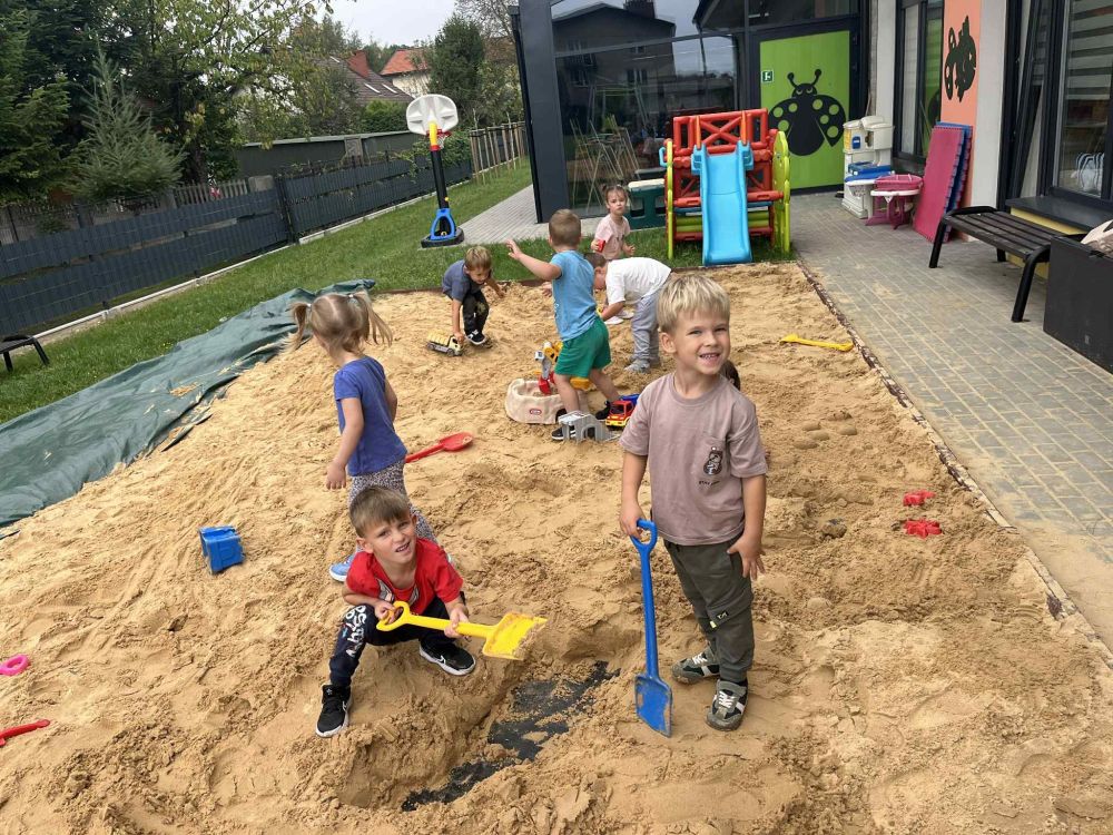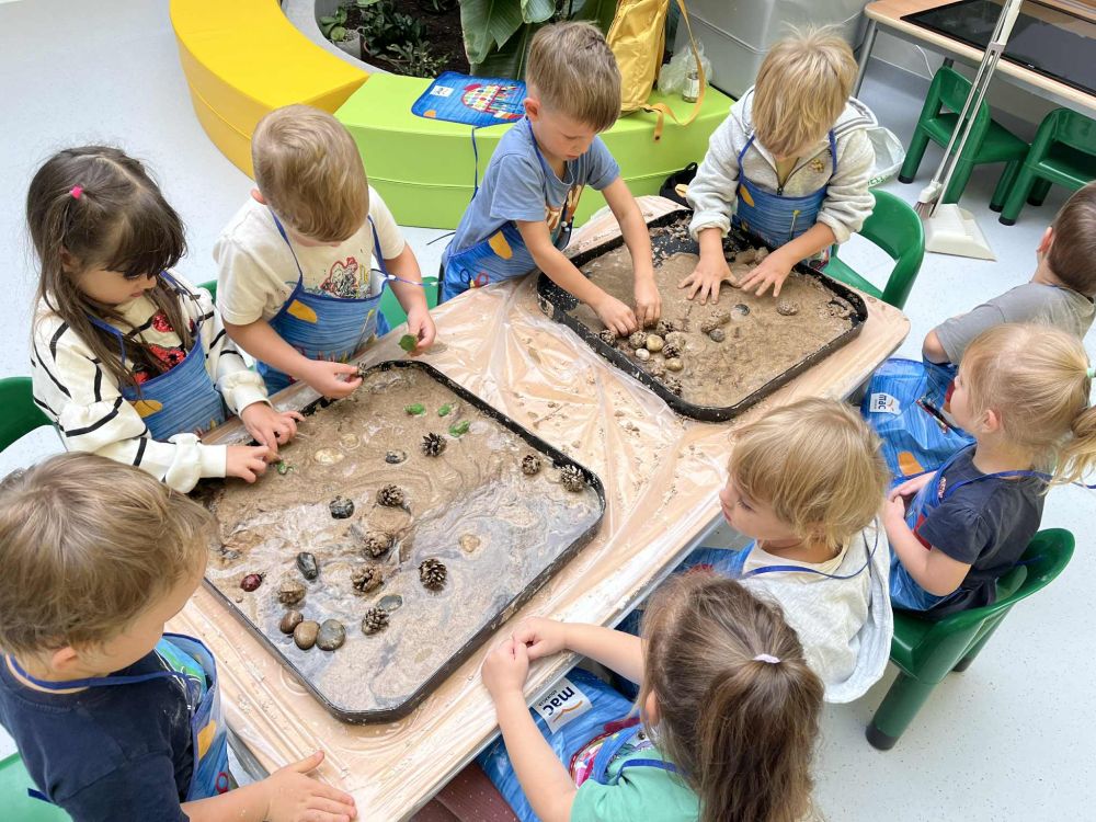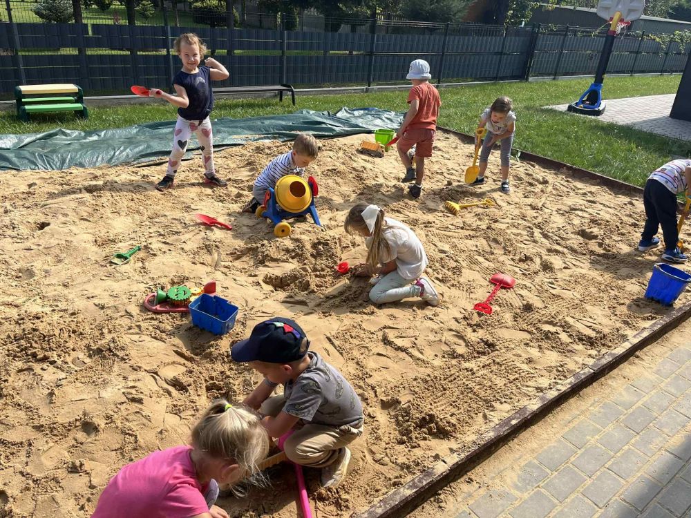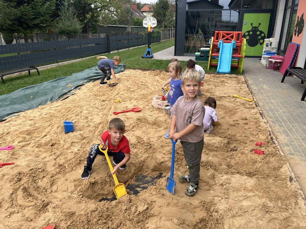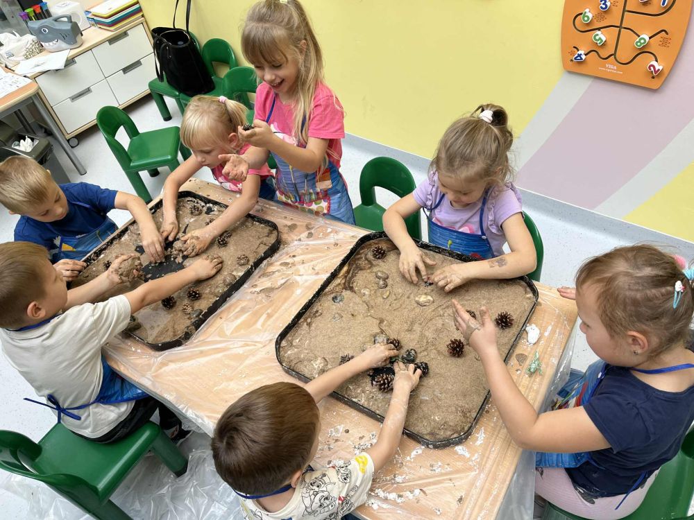 We wrześniu nasze grupy projektowe uczestniczące w zajęciach z zakresu sensoryki wyruszyły w wyjątkową podróż pełną wrażeń i odkryć. Celem spotkań było stymulowanie zmysłów, rozwijanie małej motoryki oraz budowanie kompetencji społecznych poprzez zabawę i twórcze eksperymenty. Dzieci miały okazję doświadczyć różnorodnych faktur mas sensorycznych – od delikatnego, suchego piasku, który przywoływał wspomnienia letnich dni, po mokry piasek, pozwalający na nowe, nieoczywiste odkrycia. Przedszkolaki z ogromnym zaangażowaniem poszukiwały skarbów ukrytych w piasku, co rozwijało ich ciekawość, spostrzegawczość oraz zdolności manualne.