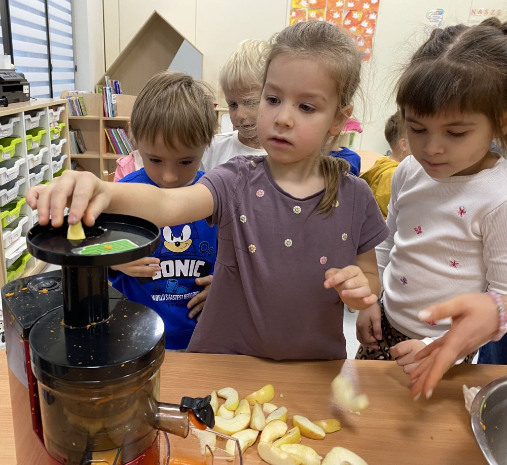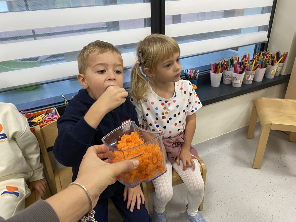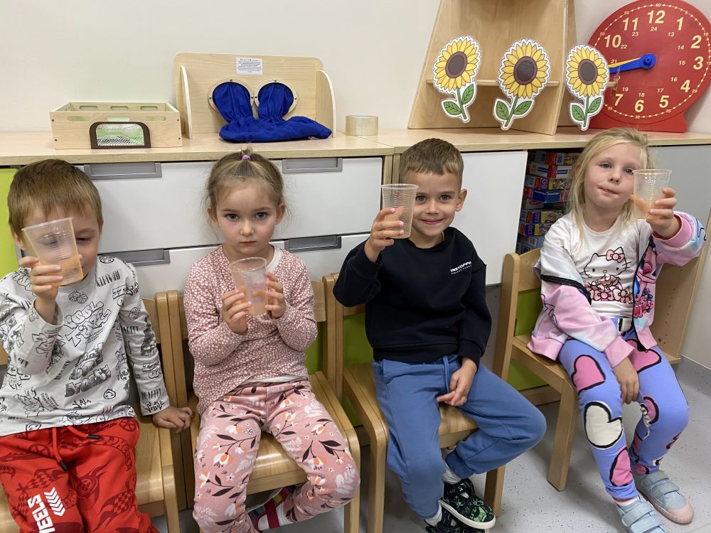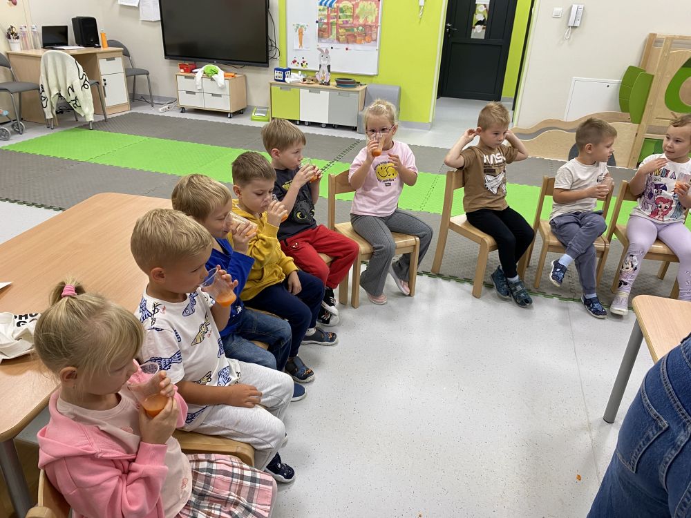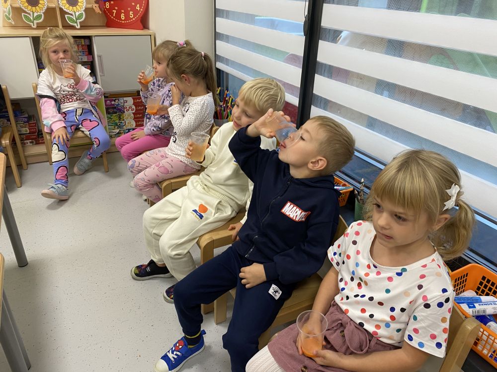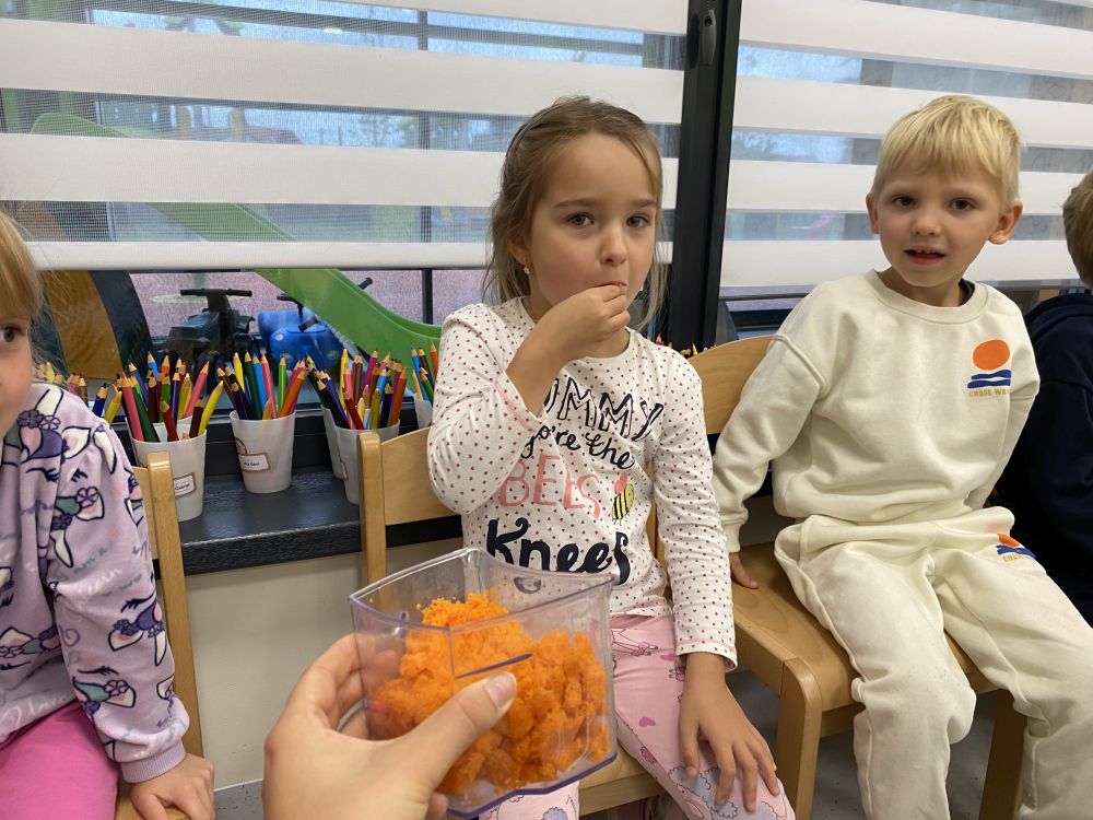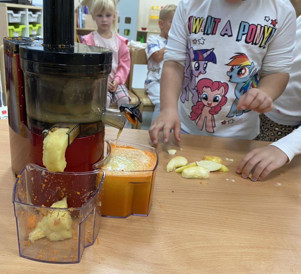 W ramach projektu „Witaminki” dzieci poznały kolejne warzywo – marchewkę. Dowiedziały się, jak wygląda, jak smakuje i gdzie rośnie poznane warzywo. Rozmawiały o tym, co można przygotować z marchewki, a na zakończenie zajęć samodzielnie wykonały pyszny, zdrowy sok marchwiowy.
