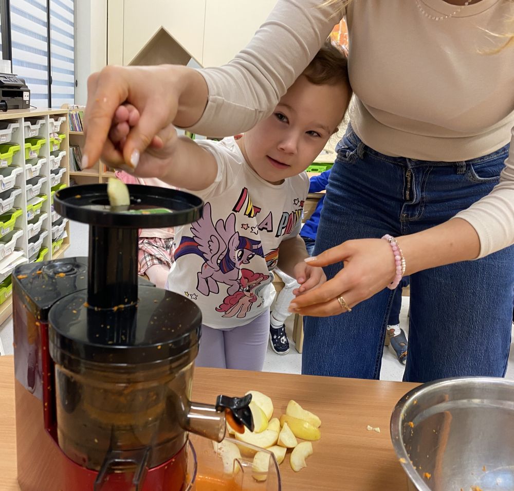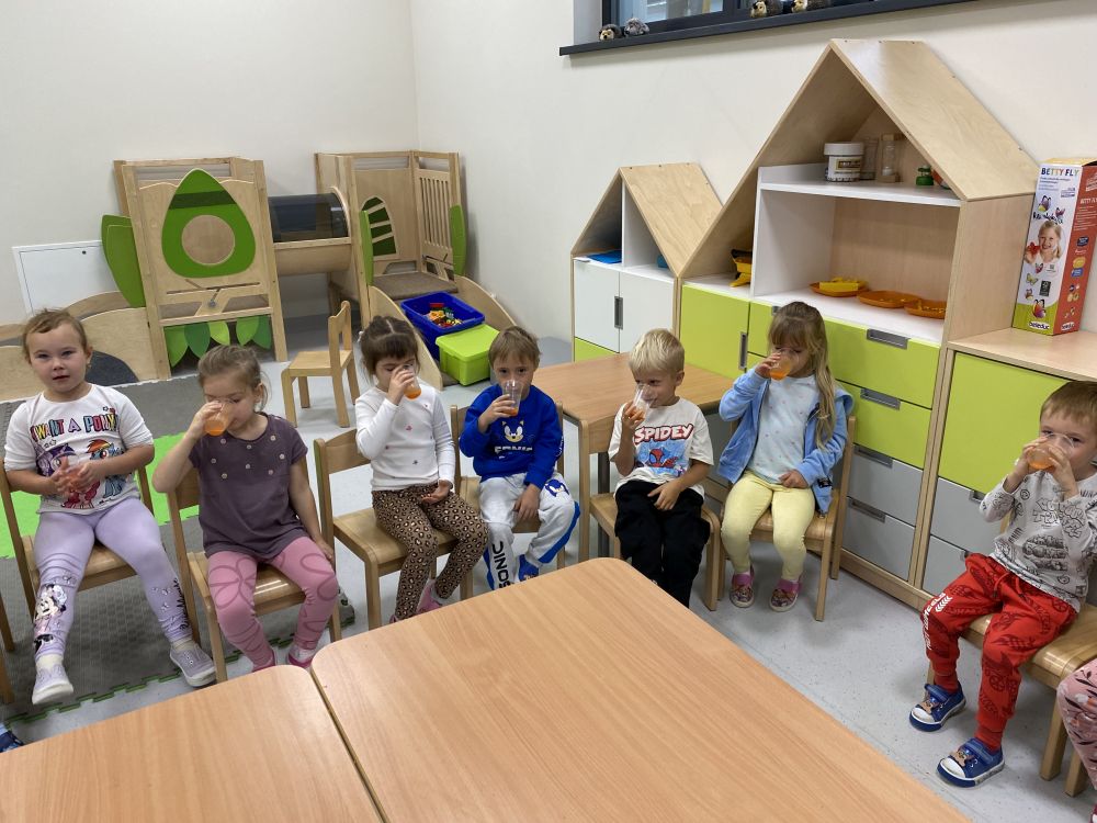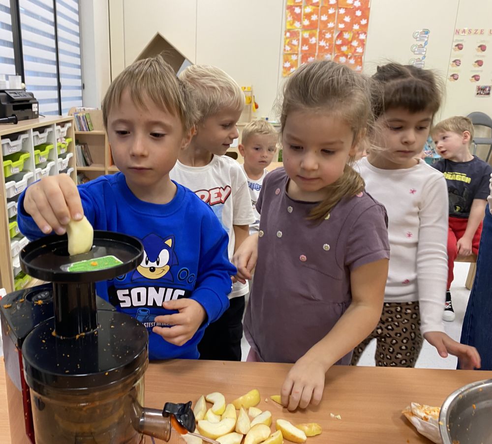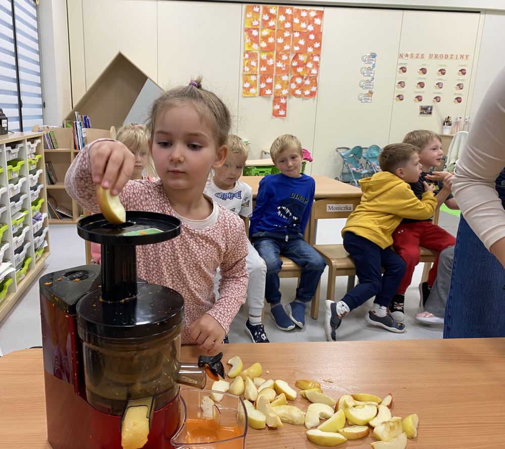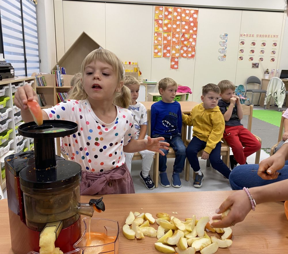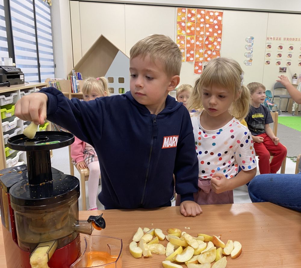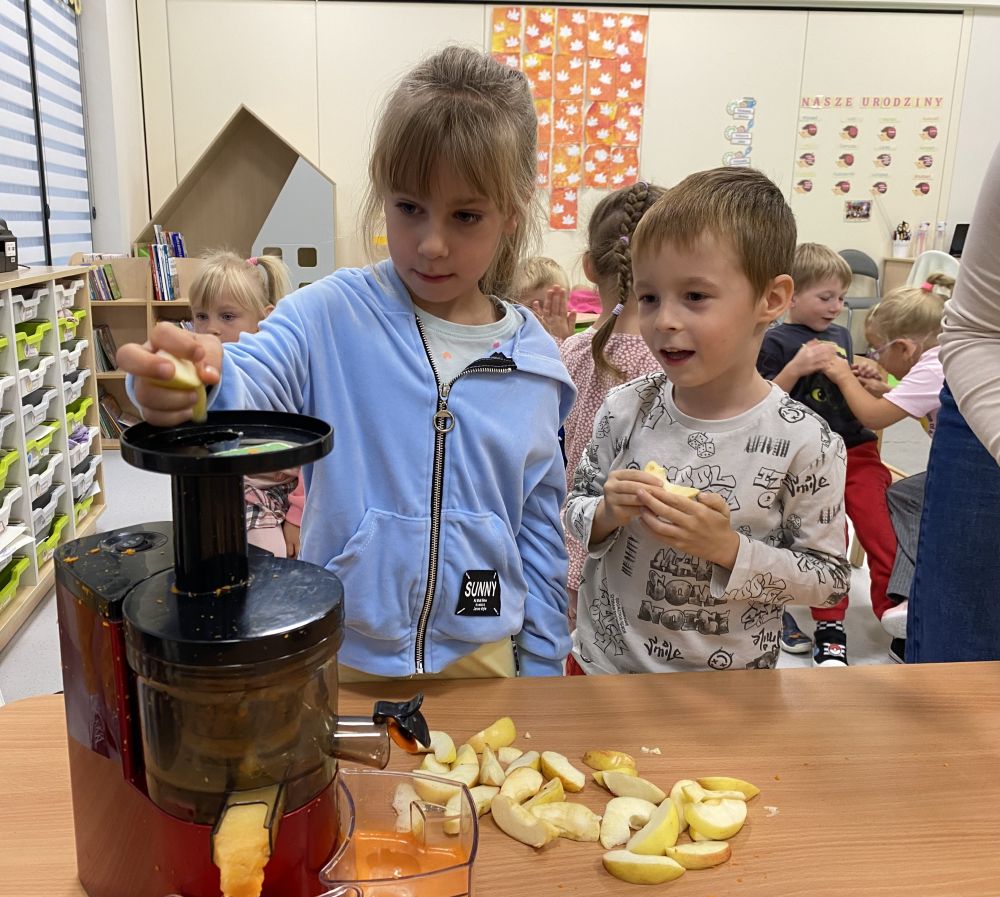 W ramach projektu „Witaminki” dzieci poznały kolejne warzywo – marchewkę. Dowiedziały się, jak wygląda, jak smakuje i gdzie rośnie poznane warzywo. Rozmawiały o tym, co można przygotować z marchewki, a na zakończenie zajęć samodzielnie wykonały pyszny, zdrowy sok marchwiowy.