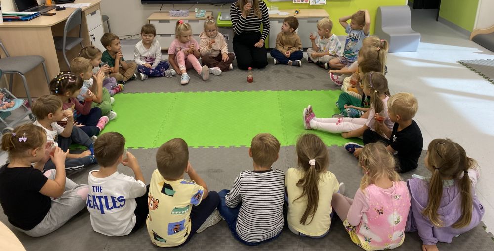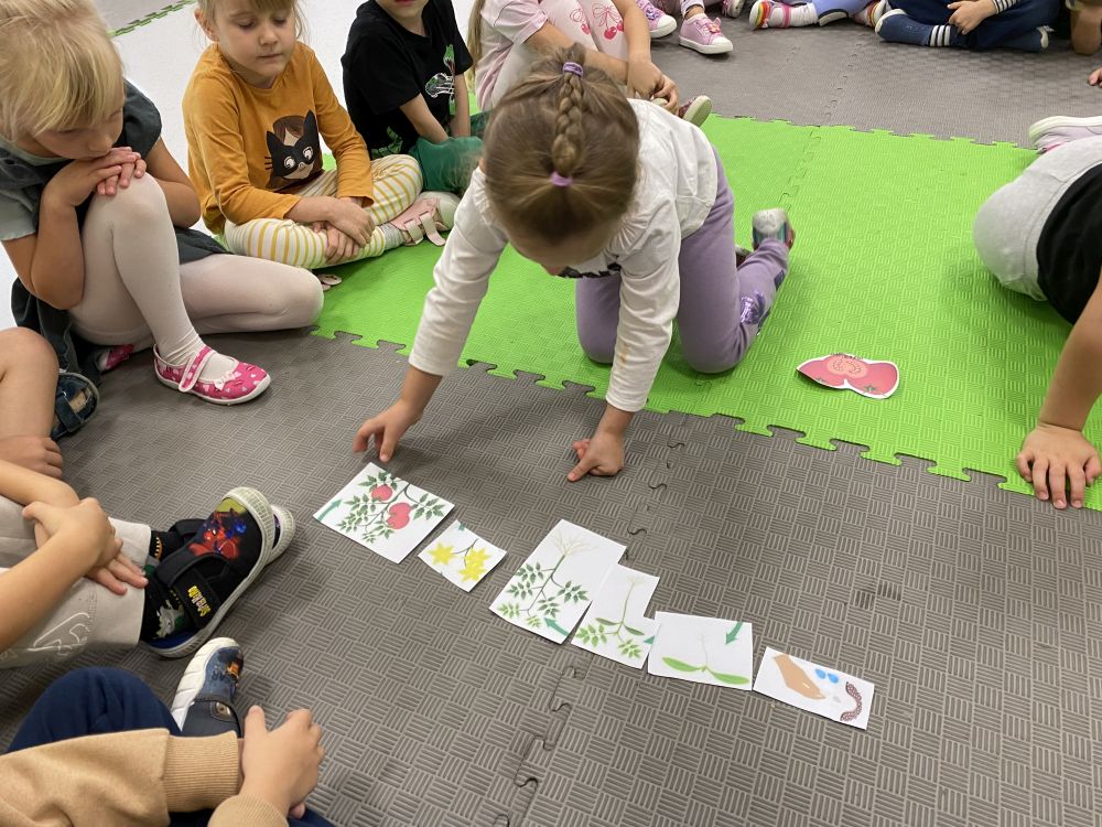 Podczas zajęć dzieci realizowały projekt „Witaminki” i poznały pierwsze warzywo – pomidora. Dowiedziały się, jak wygląda i smakuje pomidor, jakie ma odmiany, w jaki sposób się go sieje i pielęgnuje. Rozmawiały także o tym, jakie potrawy i przetwory można przygotować z pomidorów. Dzieci z radością uczestniczyły w grach edukacyjnych na tablicy multimedialnej oraz pokolorowali pierwszego poznanego bohatera.
