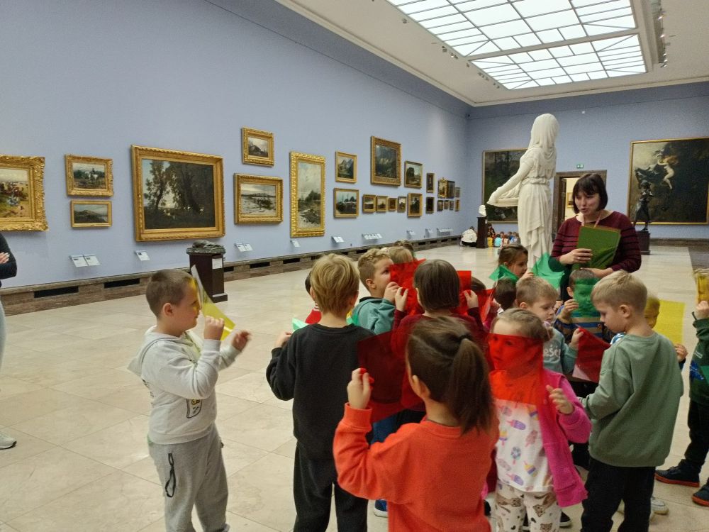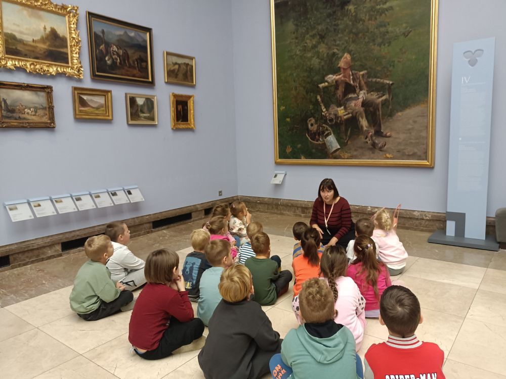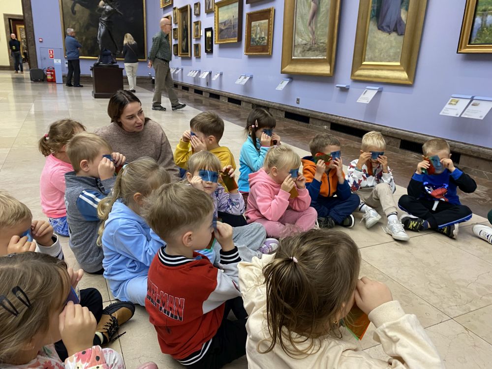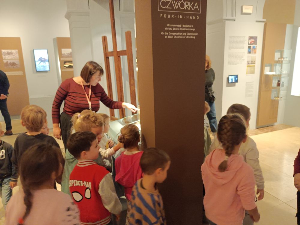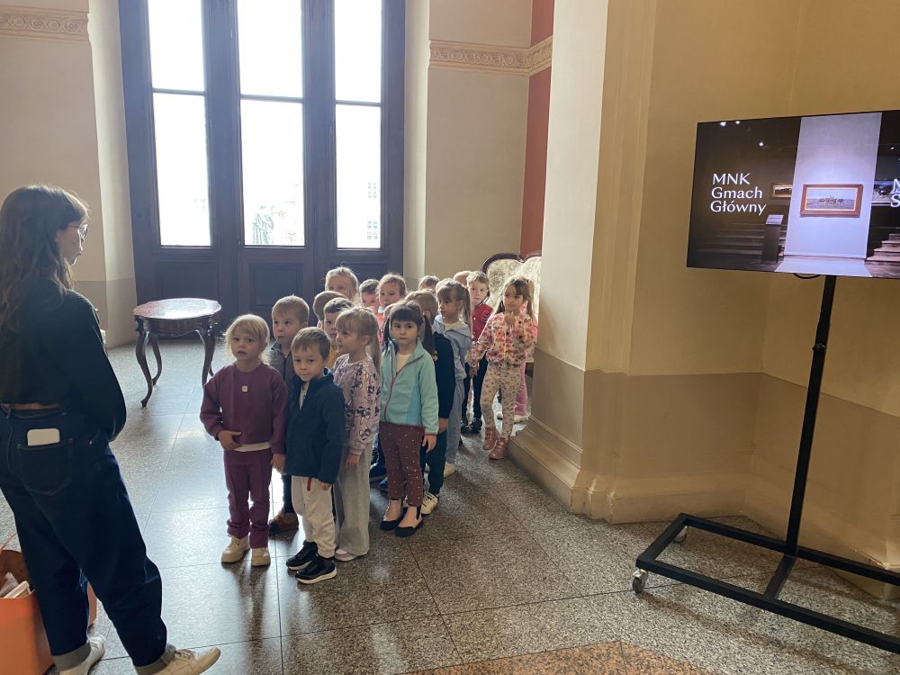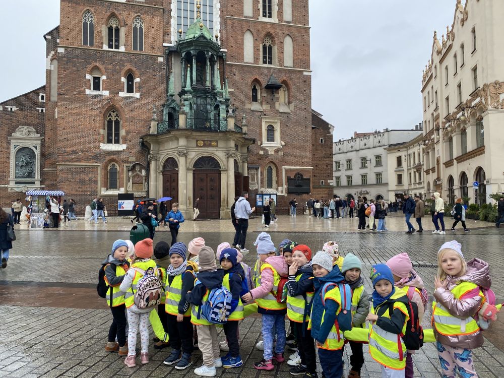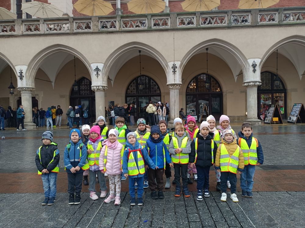 9 października przedszkolaki realizujący projekt unijny miały okazję wziąć udział w warsztatach w Galerii Sztuki Polskiej XIX wieku w Sukiennicach. Dzieci zostały zapoznane z malarstwem m.in. jednego z najwybitniejszych polskich artystów Jana Matejko. W trakcie warsztatów dowiedziały się jak powstaje obraz, jaka jest historia powstania farb olejnych, co jest potrzebne do tego żeby farba była trwała. Wykorzystując kolorowe transparentne nakładki przedszkolaki próbowały manipulować odbiorem obrazu. Na koniec dzieci wzięły udział w wykonaniu pracy plastycznej „Pory roku”. Podczas pobytu w Krakowie udało się zwiedzić rynek, Sukiennice, posłuchać hejnału z wieży Kościoła Mariackiego oraz przejść bramą Floriańską.