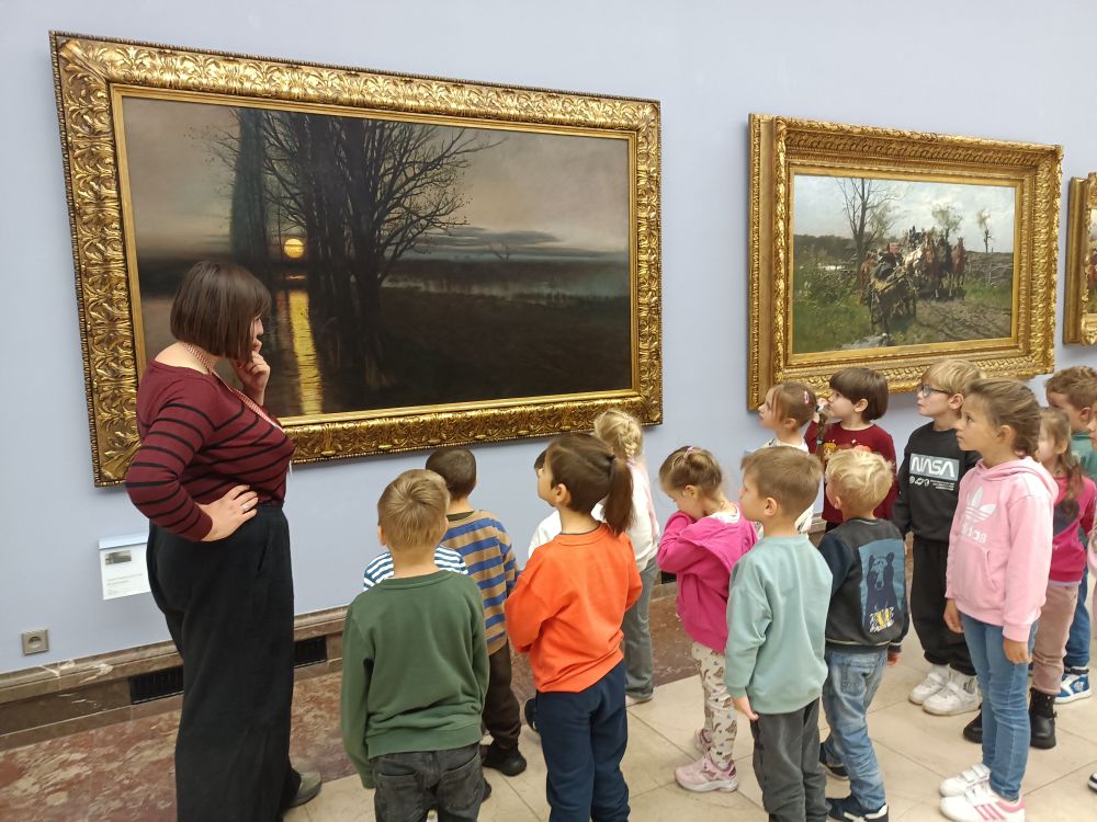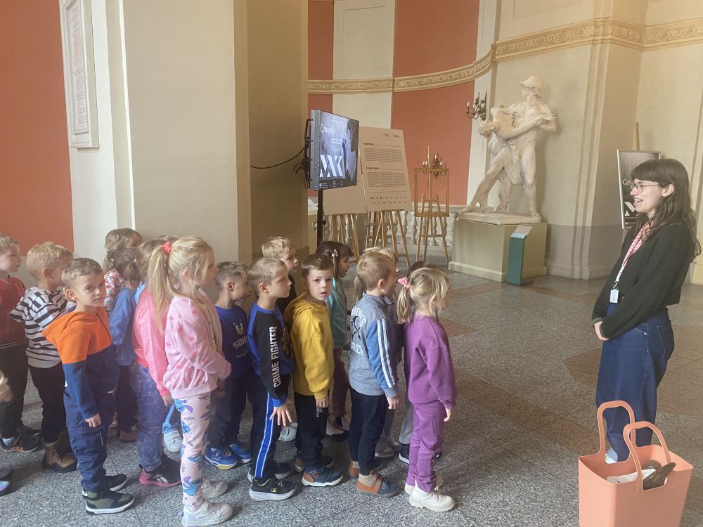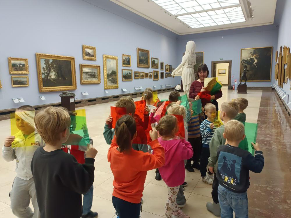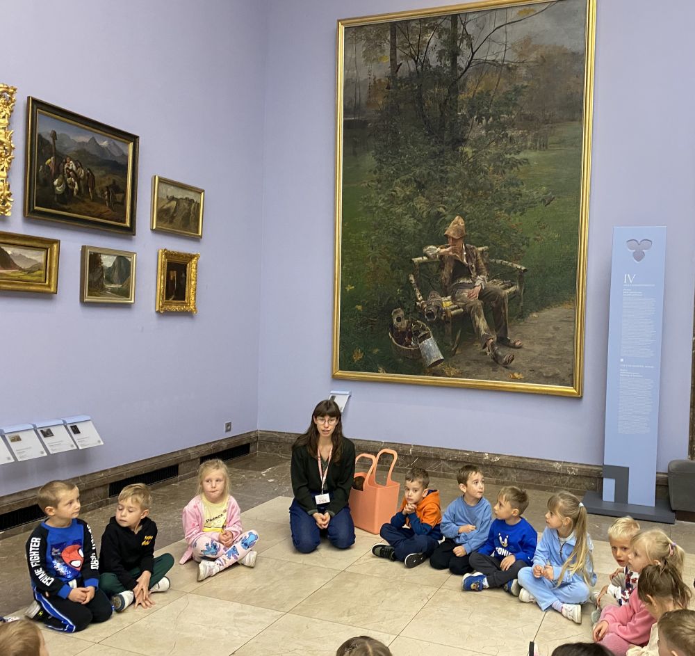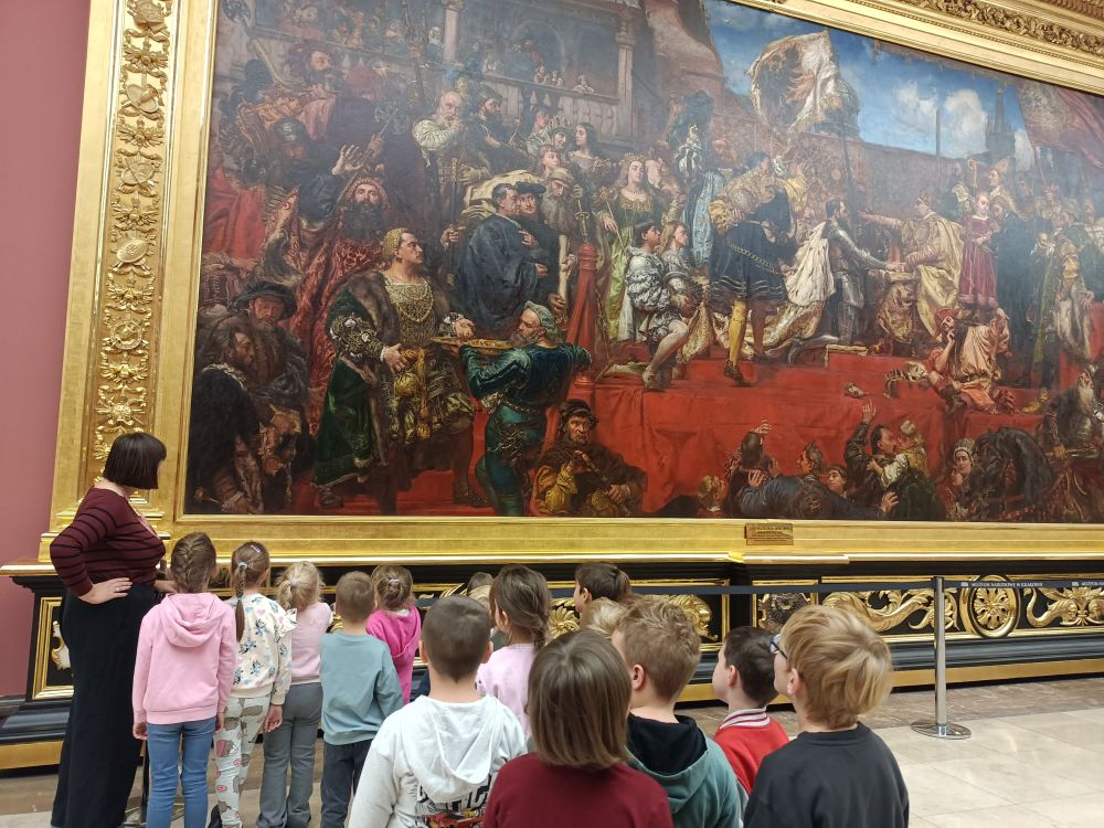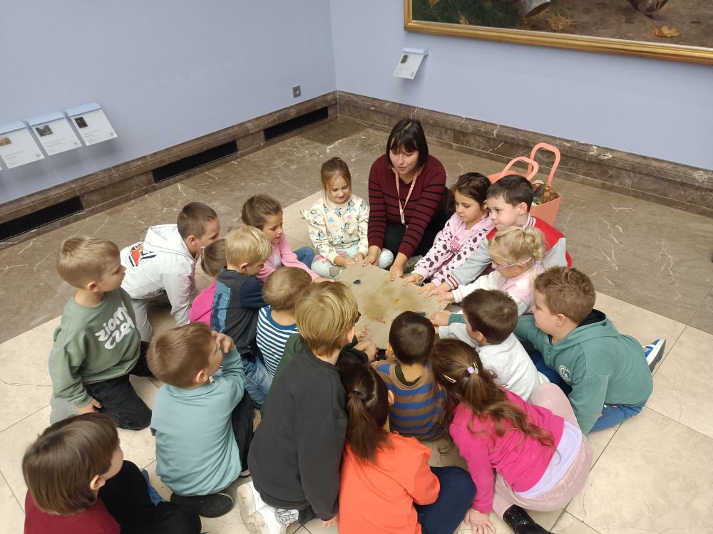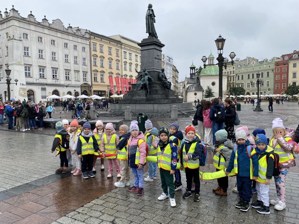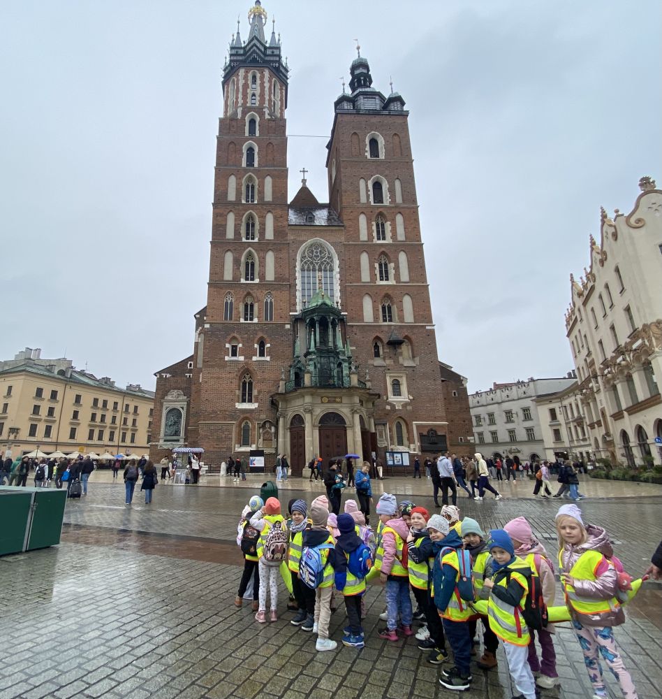9 października przedszkolaki realizujący projekt unijny miały okazję wziąć udział w warsztatach w Galerii Sztuki Polskiej XIX wieku w Sukiennicach. Dzieci zostały zapoznane z malarstwem m.in. jednego z najwybitniejszych polskich artystów Jana Matejko. W trakcie warsztatów dowiedziały się jak powstaje obraz, jaka jest historia powstania farb olejnych, co jest potrzebne do tego żeby farba była trwała. Wykorzystując kolorowe transparentne nakładki przedszkolaki próbowały manipulować odbiorem obrazu. Na koniec dzieci wzięły udział w wykonaniu pracy plastycznej „Pory roku”. Podczas pobytu w Krakowie udało się zwiedzić rynek, Sukiennice, posłuchać hejnału z wieży Kościoła Mariackiego oraz przejść bramą Floriańską.