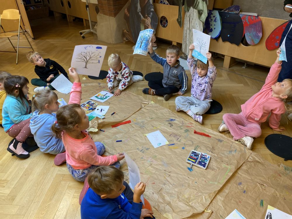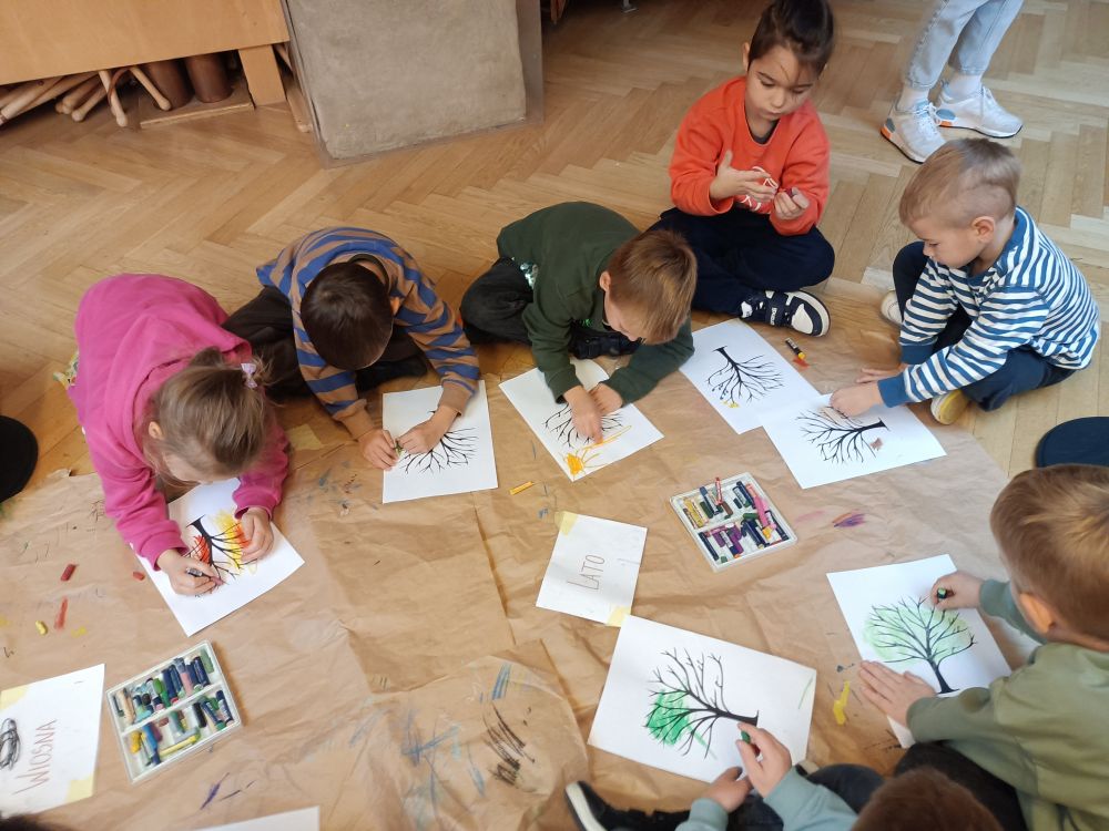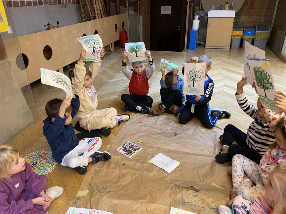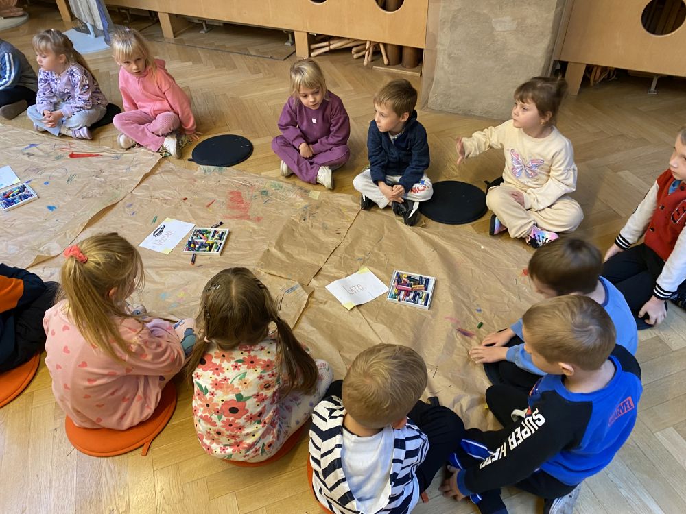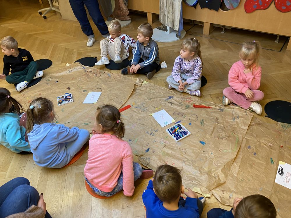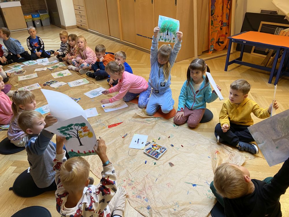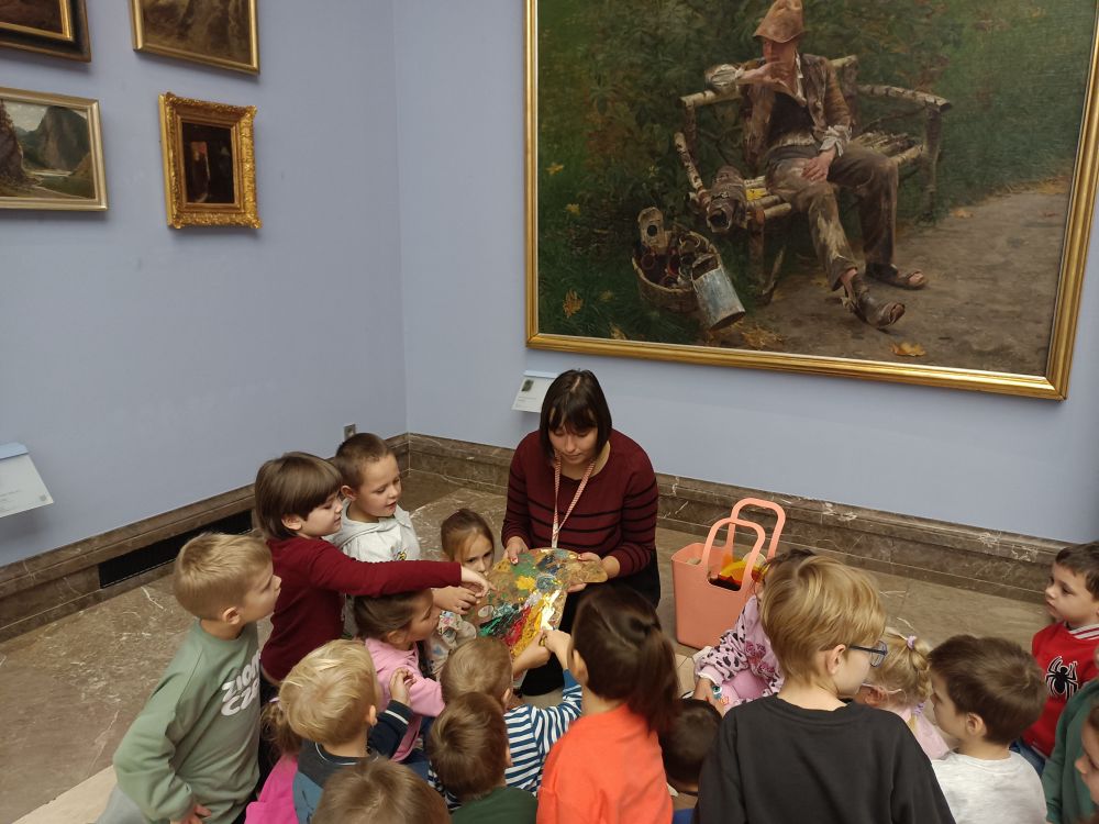 9 października przedszkolaki realizujący projekt unijny miały okazję wziąć udział w warsztatach w Galerii Sztuki Polskiej XIX wieku w Sukiennicach. Dzieci zostały zapoznane z malarstwem m.in. jednego z najwybitniejszych polskich artystów Jana Matejko. W trakcie warsztatów dowiedziały się jak powstaje obraz, jaka jest historia powstania farb olejnych, co jest potrzebne do tego żeby farba była trwała. Wykorzystując kolorowe transparentne nakładki przedszkolaki próbowały manipulować odbiorem obrazu. Na koniec dzieci wzięły udział w wykonaniu pracy plastycznej „Pory roku”. Podczas pobytu w Krakowie udało się zwiedzić rynek, Sukiennice, posłuchać hejnału z wieży Kościoła Mariackiego oraz przejść bramą Floriańską.
