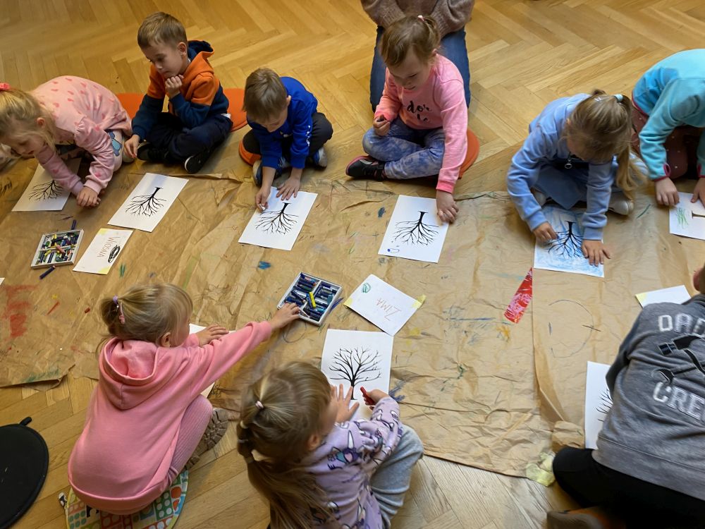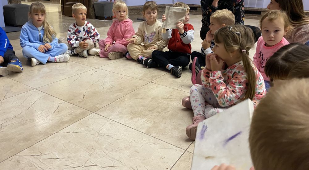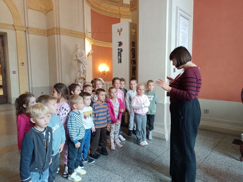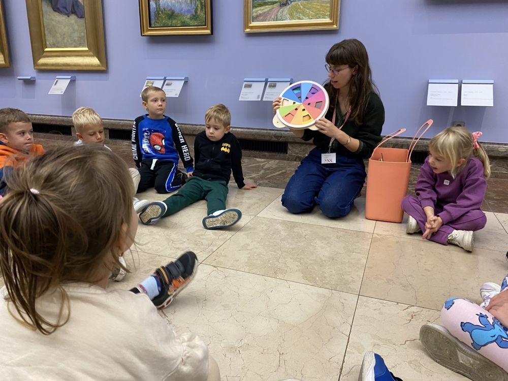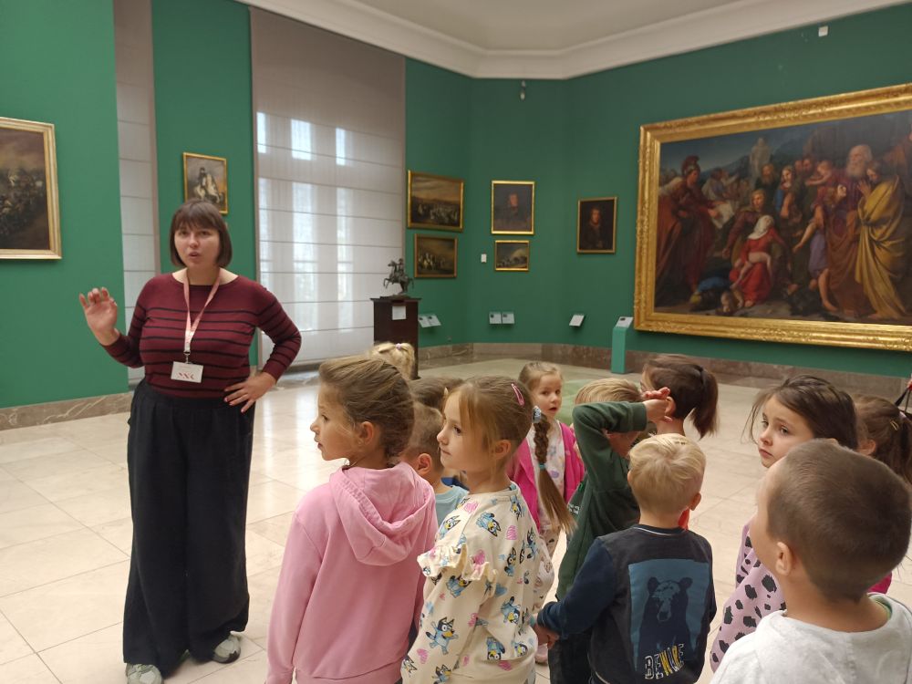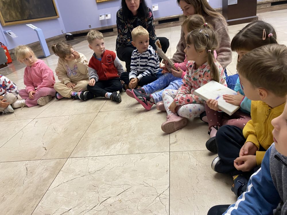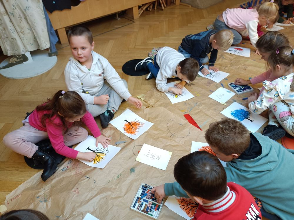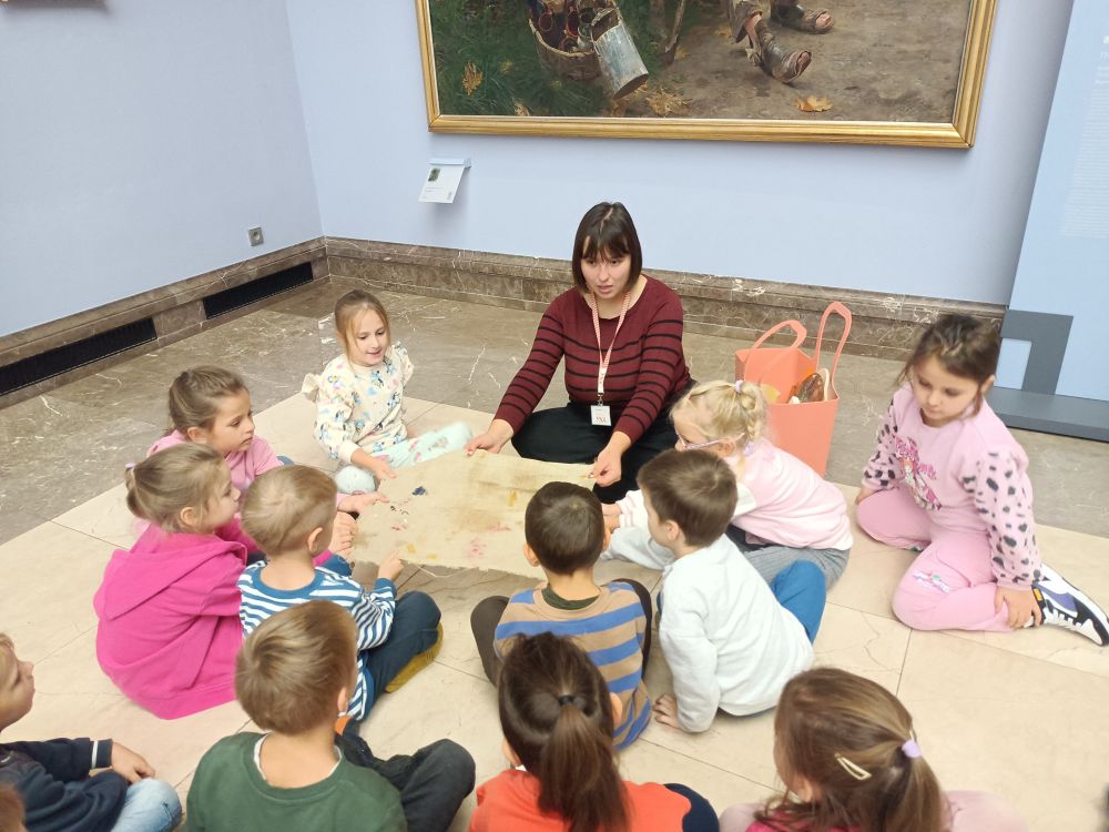 9 października przedszkolaki realizujący projekt unijny miały okazję wziąć udział w warsztatach w Galerii Sztuki Polskiej XIX wieku w Sukiennicach. Dzieci zostały zapoznane z malarstwem m.in. jednego z najwybitniejszych polskich artystów Jana Matejko. W trakcie warsztatów dowiedziały się jak powstaje obraz, jaka jest historia powstania farb olejnych, co jest potrzebne do tego żeby farba była trwała. Wykorzystując kolorowe transparentne nakładki przedszkolaki próbowały manipulować odbiorem obrazu. Na koniec dzieci wzięły udział w wykonaniu pracy plastycznej „Pory roku”. Podczas pobytu w Krakowie udało się zwiedzić rynek, Sukiennice, posłuchać hejnału z wieży Kościoła Mariackiego oraz przejść bramą Floriańską.