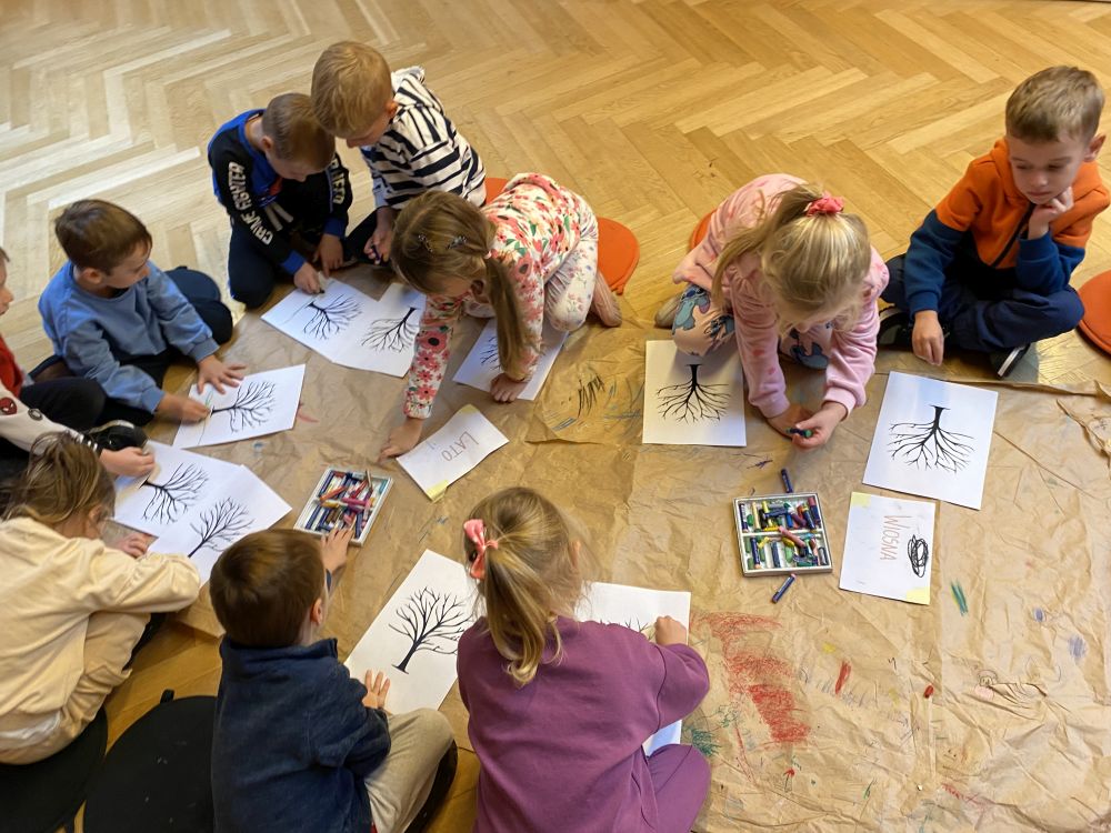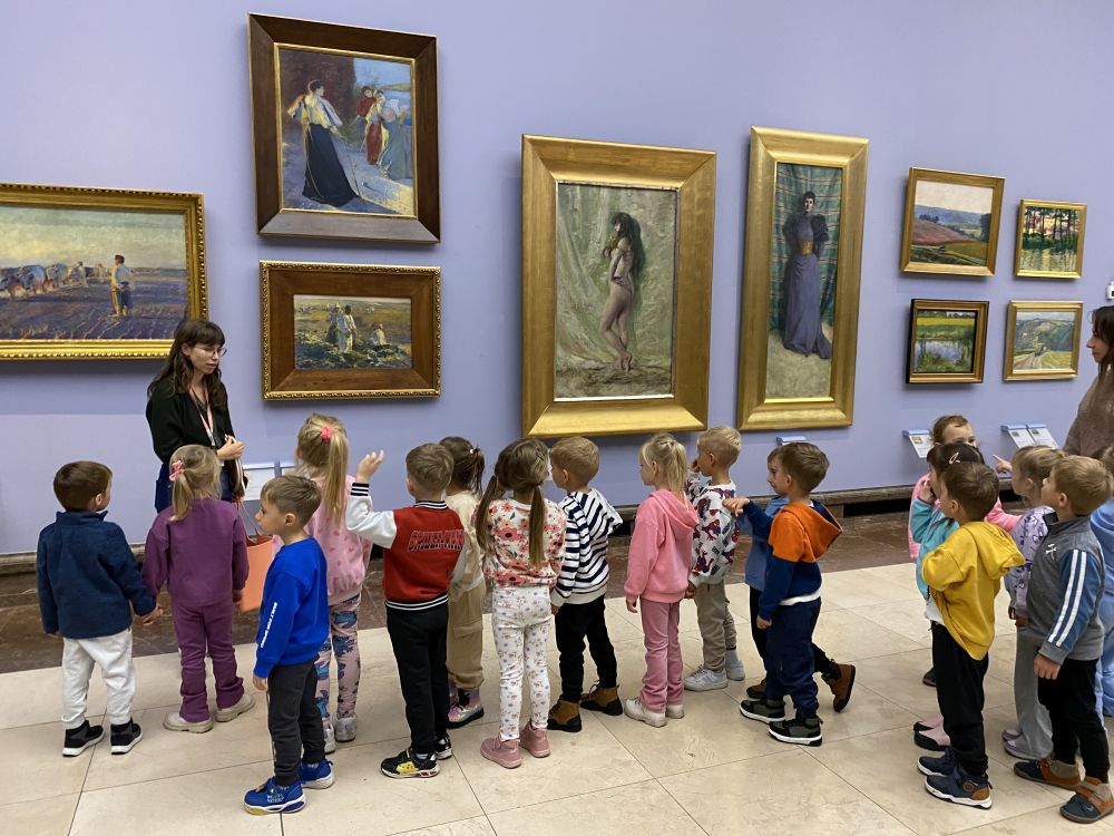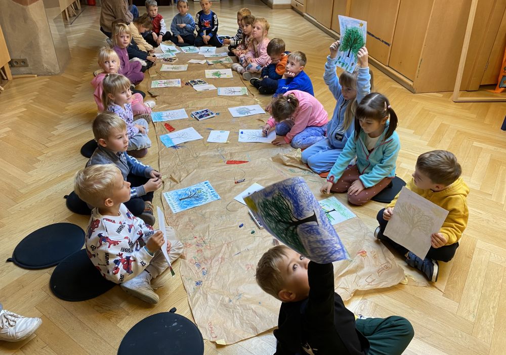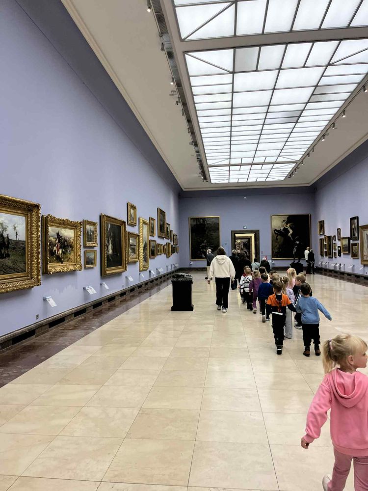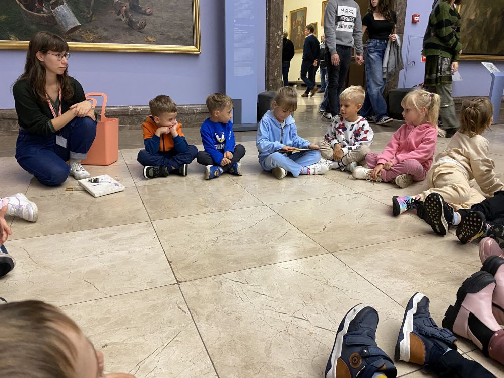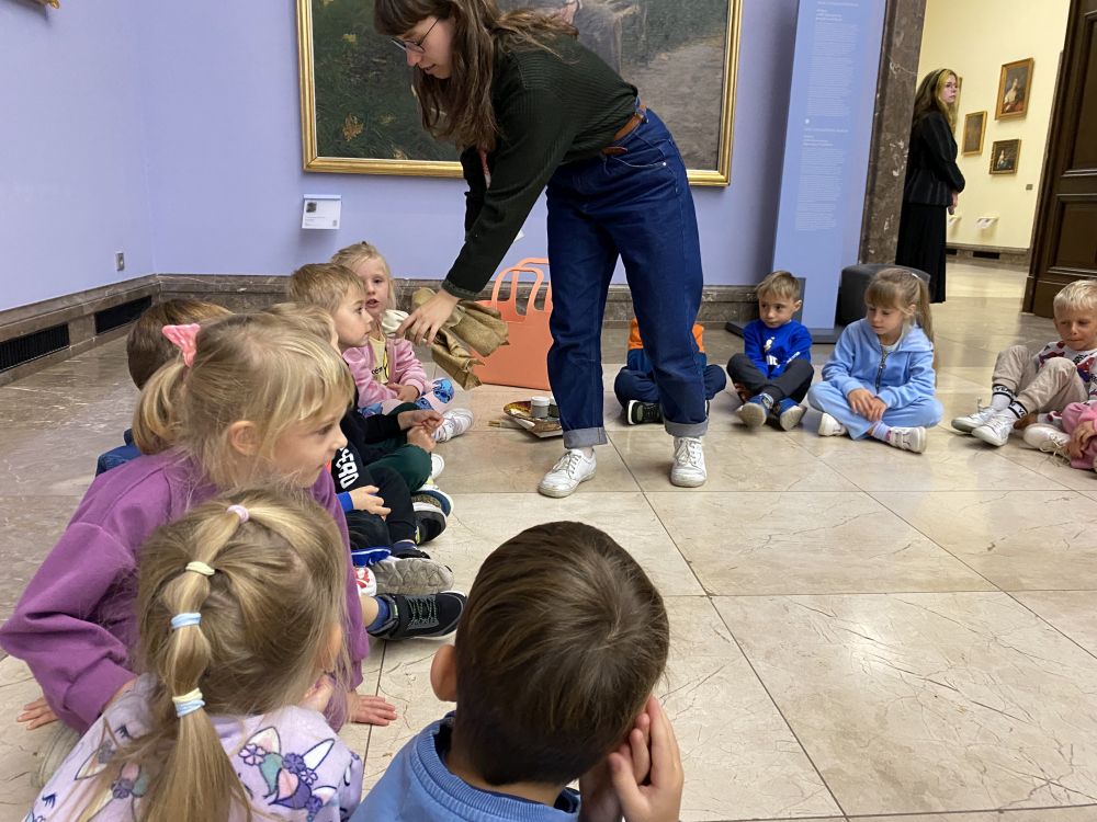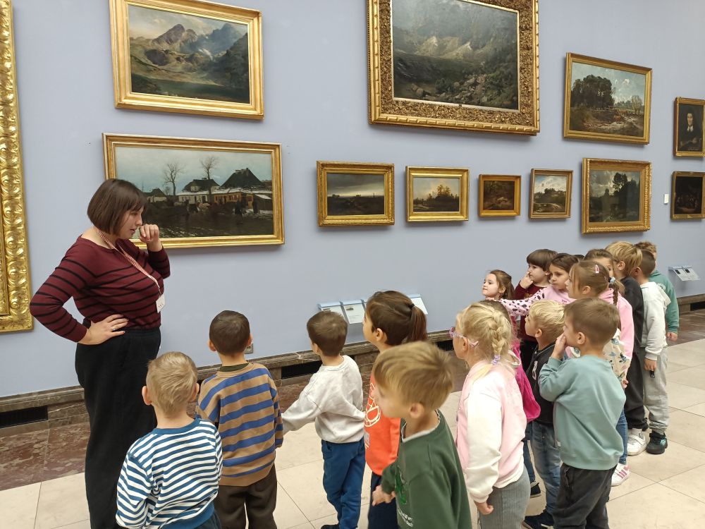 9 października przedszkolaki realizujący projekt unijny miały okazję wziąć udział w warsztatach w Galerii Sztuki Polskiej XIX wieku w Sukiennicach. Dzieci zostały zapoznane z malarstwem m.in. jednego z najwybitniejszych polskich artystów Jana Matejko. W trakcie warsztatów dowiedziały się jak powstaje obraz, jaka jest historia powstania farb olejnych, co jest potrzebne do tego żeby farba była trwała. Wykorzystując kolorowe transparentne nakładki przedszkolaki próbowały manipulować odbiorem obrazu. Na koniec dzieci wzięły udział w wykonaniu pracy plastycznej „Pory roku”. Podczas pobytu w Krakowie udało się zwiedzić rynek, Sukiennice, posłuchać hejnału z wieży Kościoła Mariackiego oraz przejść bramą Floriańską.