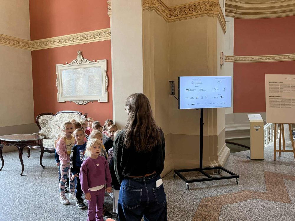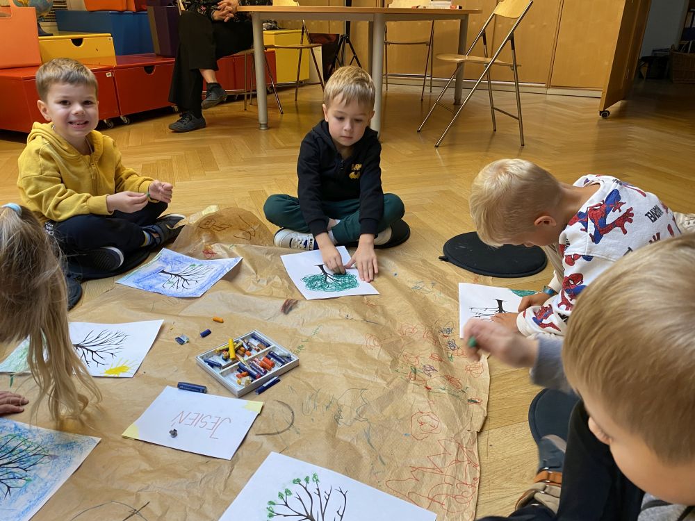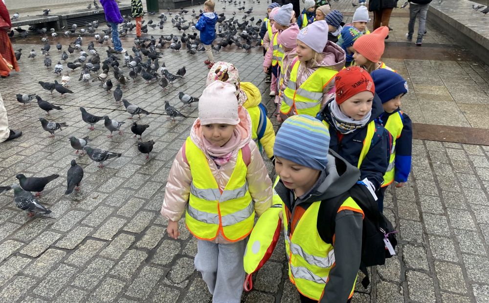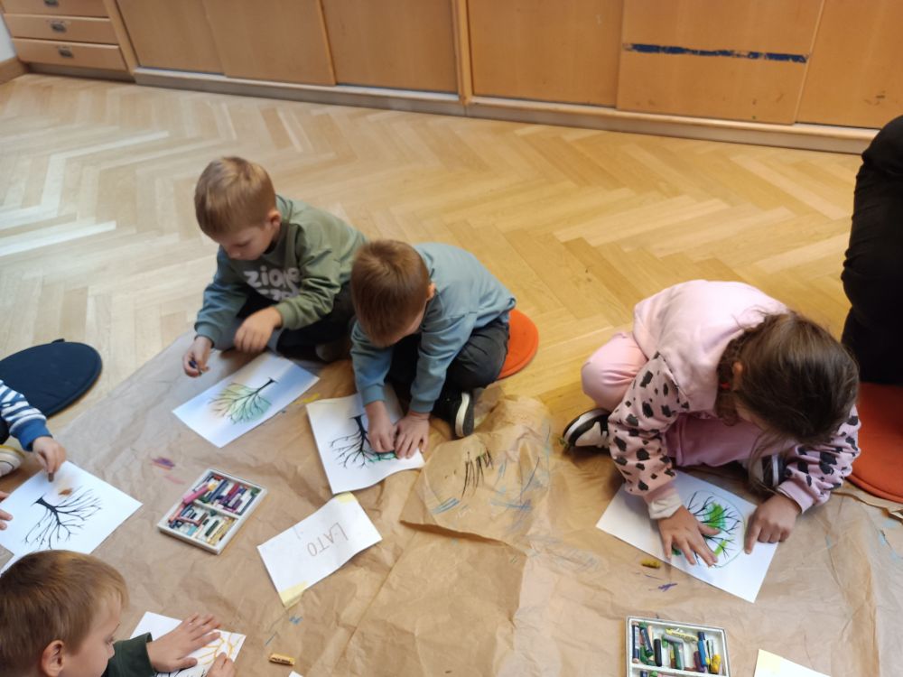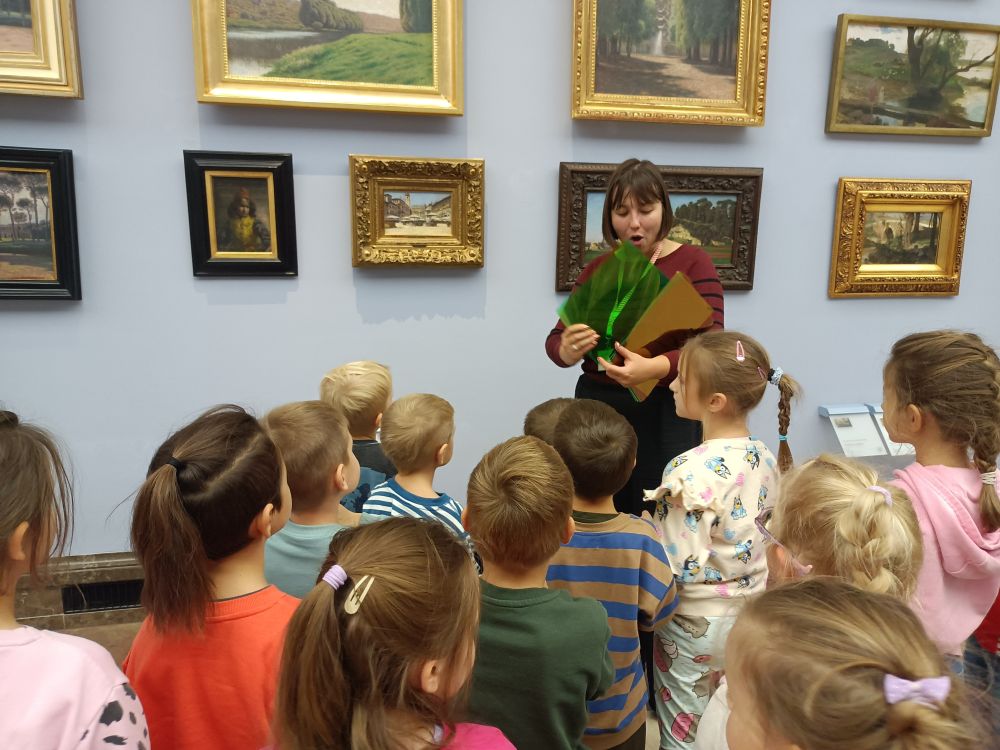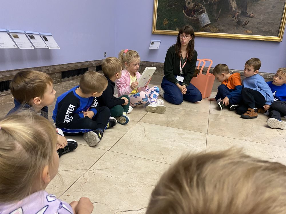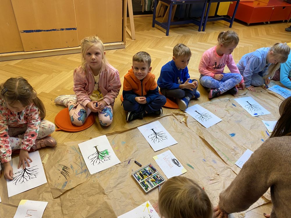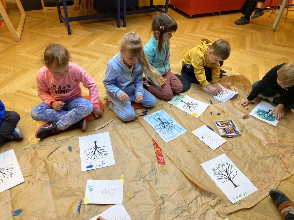 9 października przedszkolaki realizujący projekt unijny miały okazję wziąć udział w warsztatach w Galerii Sztuki Polskiej XIX wieku w Sukiennicach. Dzieci zostały zapoznane z malarstwem m.in. jednego z najwybitniejszych polskich artystów Jana Matejko. W trakcie warsztatów dowiedziały się jak powstaje obraz, jaka jest historia powstania farb olejnych, co jest potrzebne do tego żeby farba była trwała. Wykorzystując kolorowe transparentne nakładki przedszkolaki próbowały manipulować odbiorem obrazu. Na koniec dzieci wzięły udział w wykonaniu pracy plastycznej „Pory roku”. Podczas pobytu w Krakowie udało się zwiedzić rynek, Sukiennice, posłuchać hejnału z wieży Kościoła Mariackiego oraz przejść bramą Floriańską.