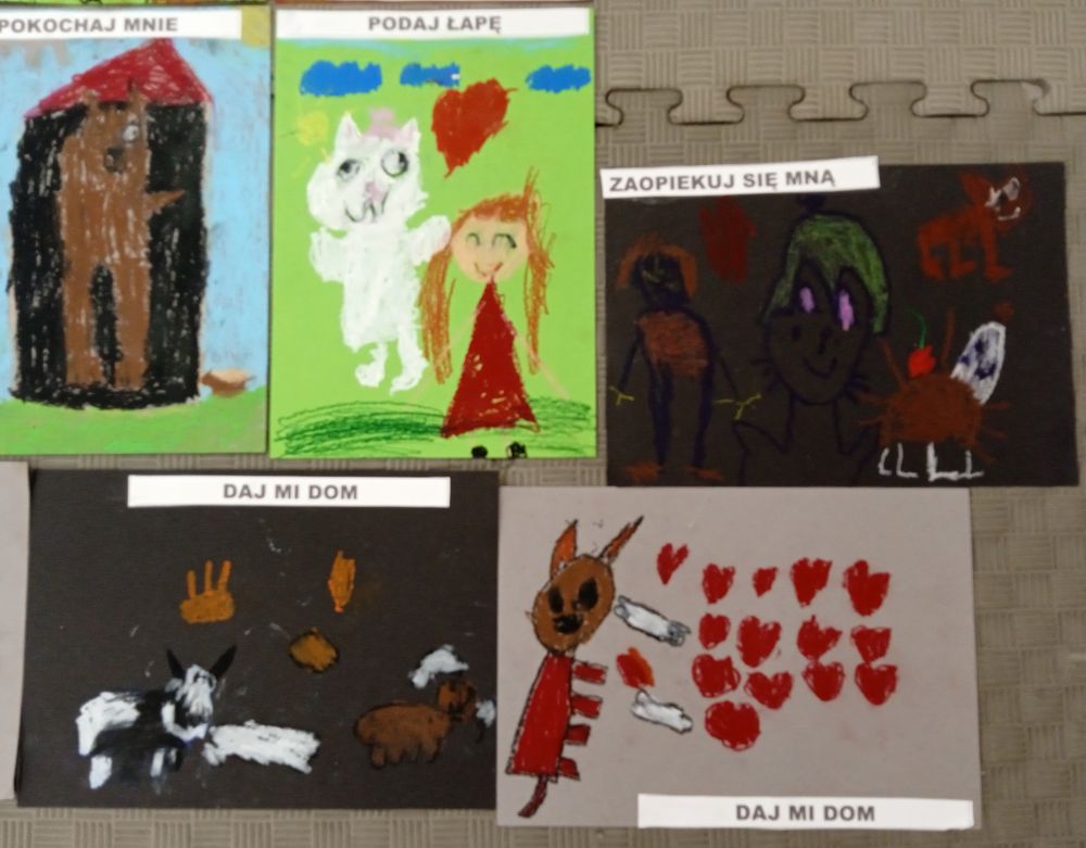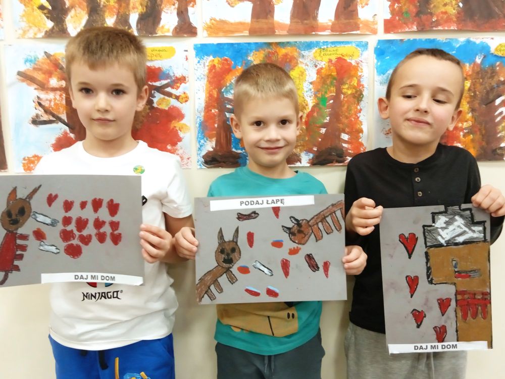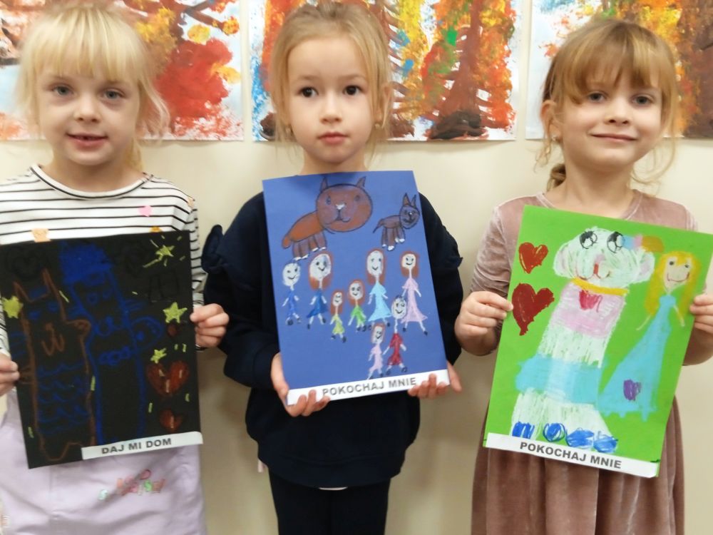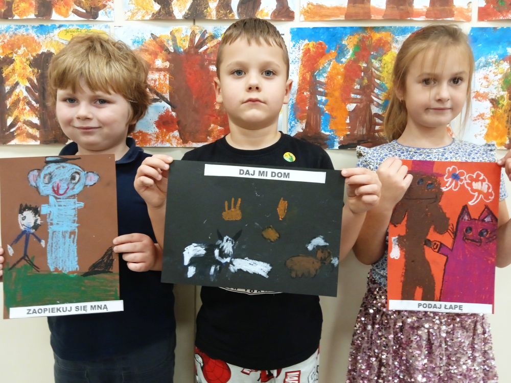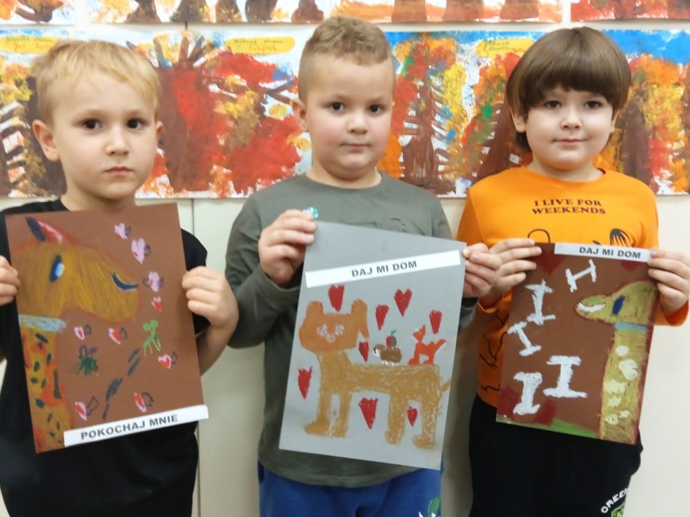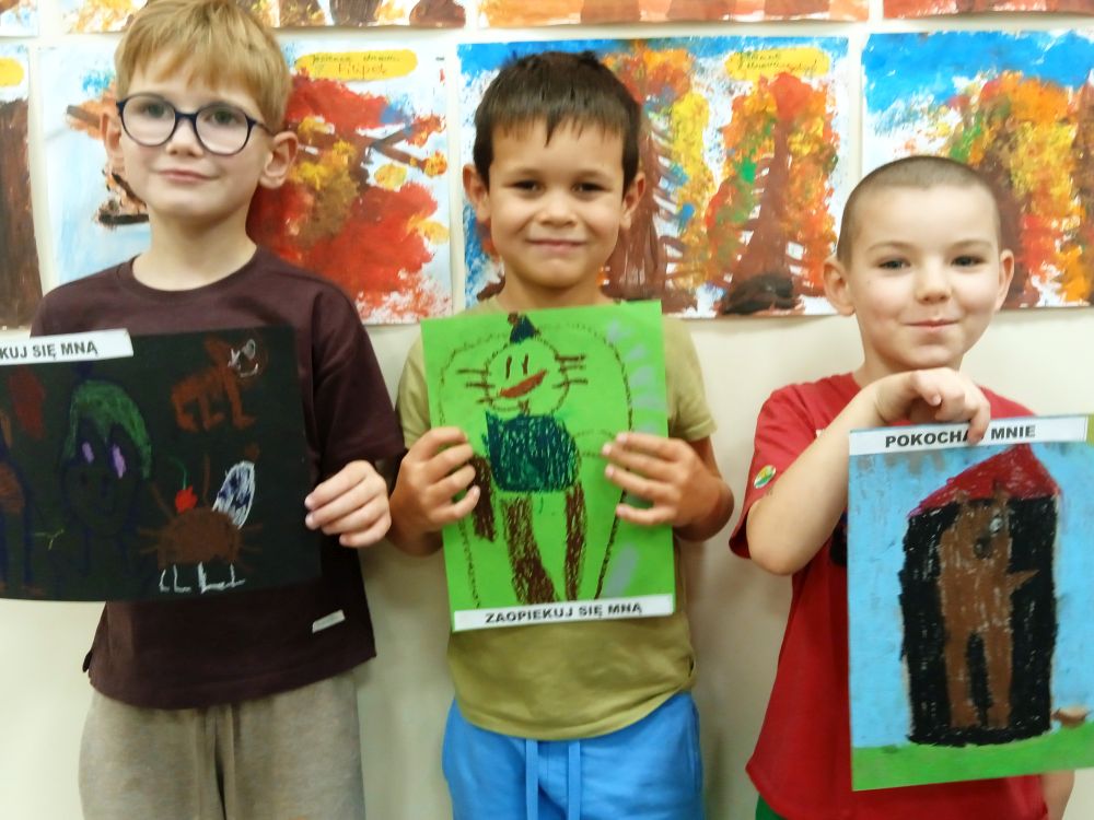Kotki w ramach Ogólnopolskiego Projektu Edukacyjnego ,, Zabawa sztuką'' wykonały październikowe zadanie ,, Plakat". Miesiąc październik to miesiąc dobroci dla zwierząt-zajęcia miały na celu uświadamiania dzieciom problemów zwierząt,w tym ich bezdomności i złym traktowaniu przez człowieka. Przeprowadziliśmy ,, burzę mózgów'' nt jak możemy pomagać zwierzętom/ adopcja, zbiórka karmy i darów dla schronisk/. Wprowadzeniem do tematu było wyjaśnienie pojęcia plakat, oraz poznanie barwnych plakatów ,, Polskiej Szkoły Plakatu''. Następnie dzieci z ogromnym zapałem pracowały nad swoim plakatem i z dumą zaprezentowały efekty swojej pracy! Każde dziecko wybrało dla niego tytuł.