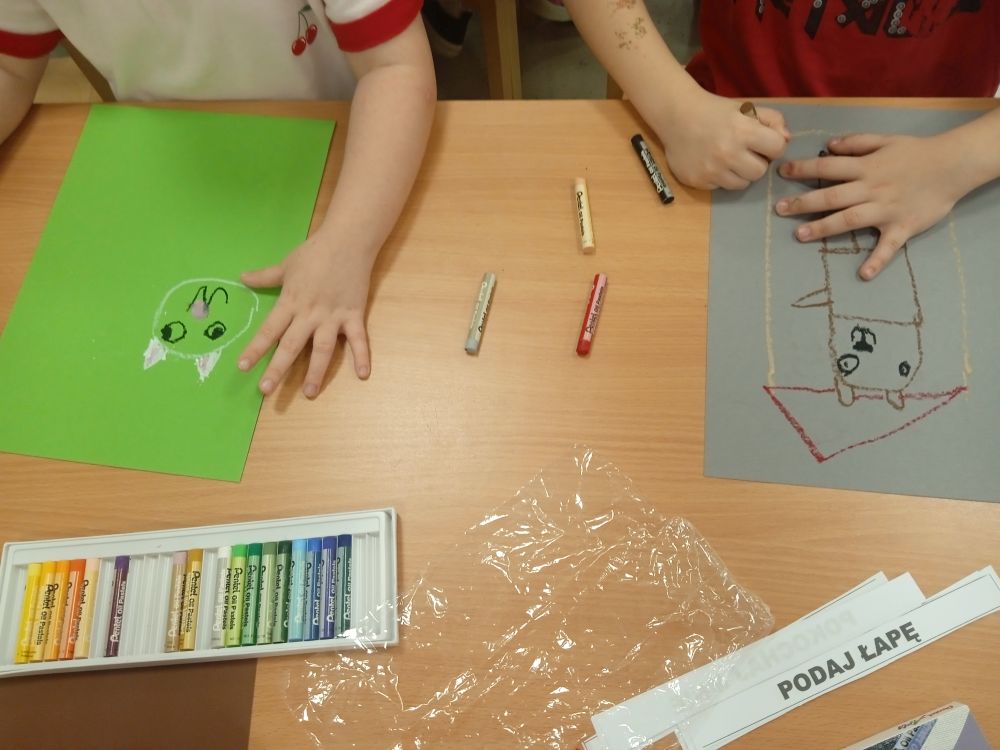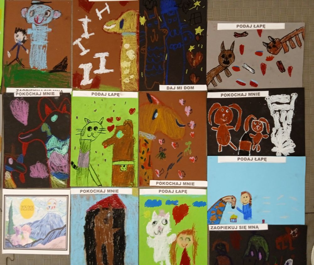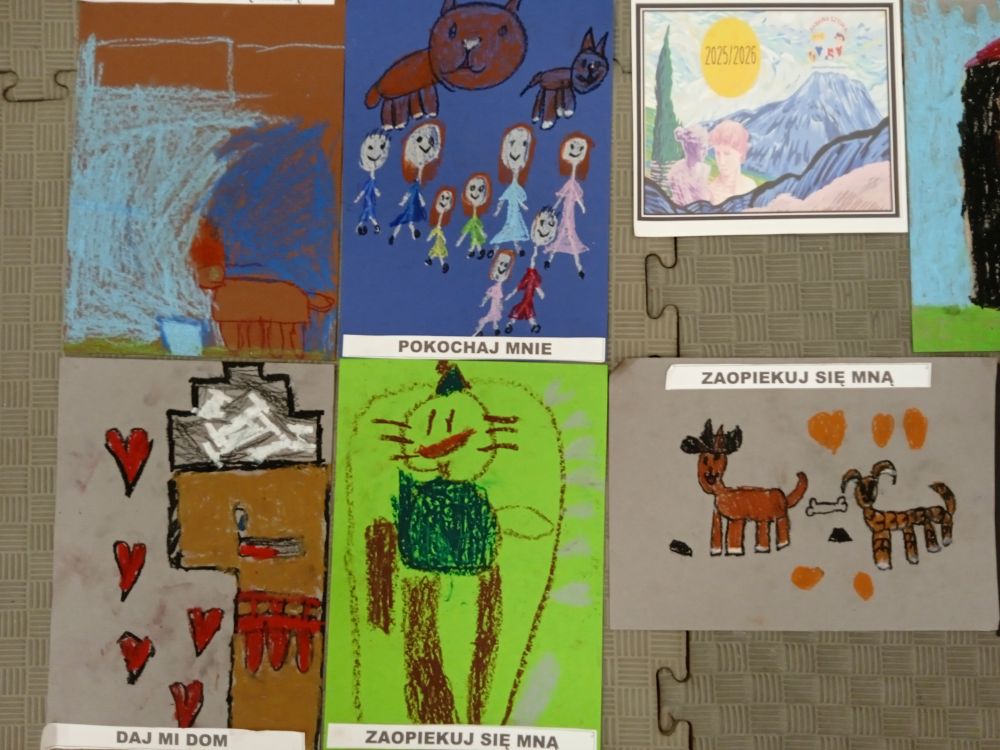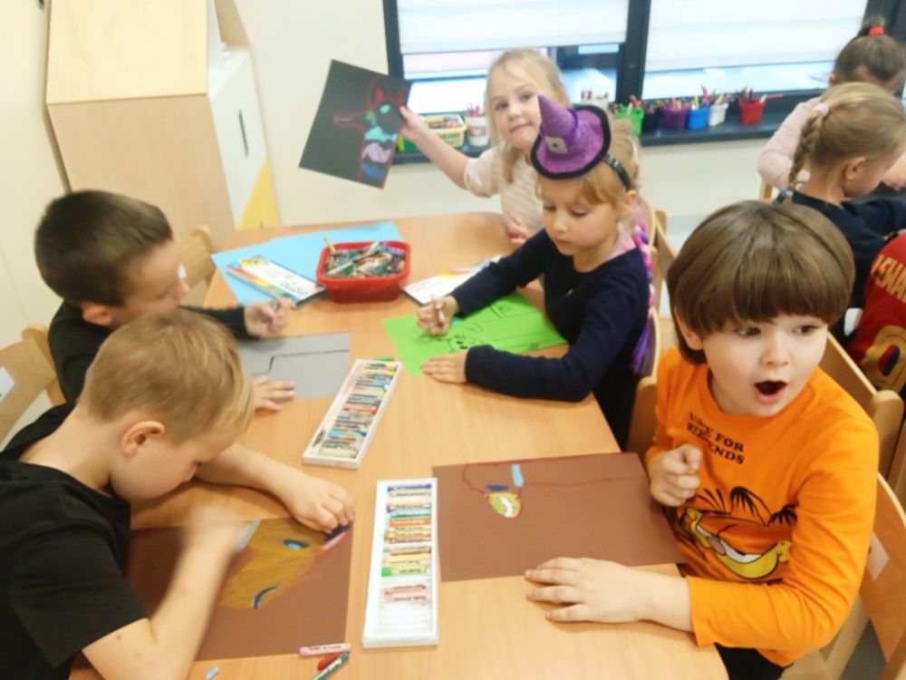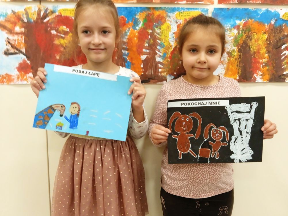 Kotki w ramach Ogólnopolskiego Projektu Edukacyjnego ,, Zabawa sztuką'' wykonały październikowe zadanie ,, Plakat". Miesiąc październik to miesiąc dobroci dla zwierząt-zajęcia miały na celu uświadamiania dzieciom problemów zwierząt,w tym ich bezdomności i złym traktowaniu przez człowieka. Przeprowadziliśmy ,, burzę mózgów'' nt jak możemy pomagać zwierzętom/ adopcja, zbiórka karmy i darów dla schronisk/. Wprowadzeniem do tematu było wyjaśnienie pojęcia plakat, oraz poznanie barwnych plakatów ,, Polskiej Szkoły Plakatu''. Następnie dzieci z ogromnym zapałem pracowały nad swoim plakatem i z dumą zaprezentowały efekty swojej pracy! Każde dziecko wybrało dla niego tytuł.