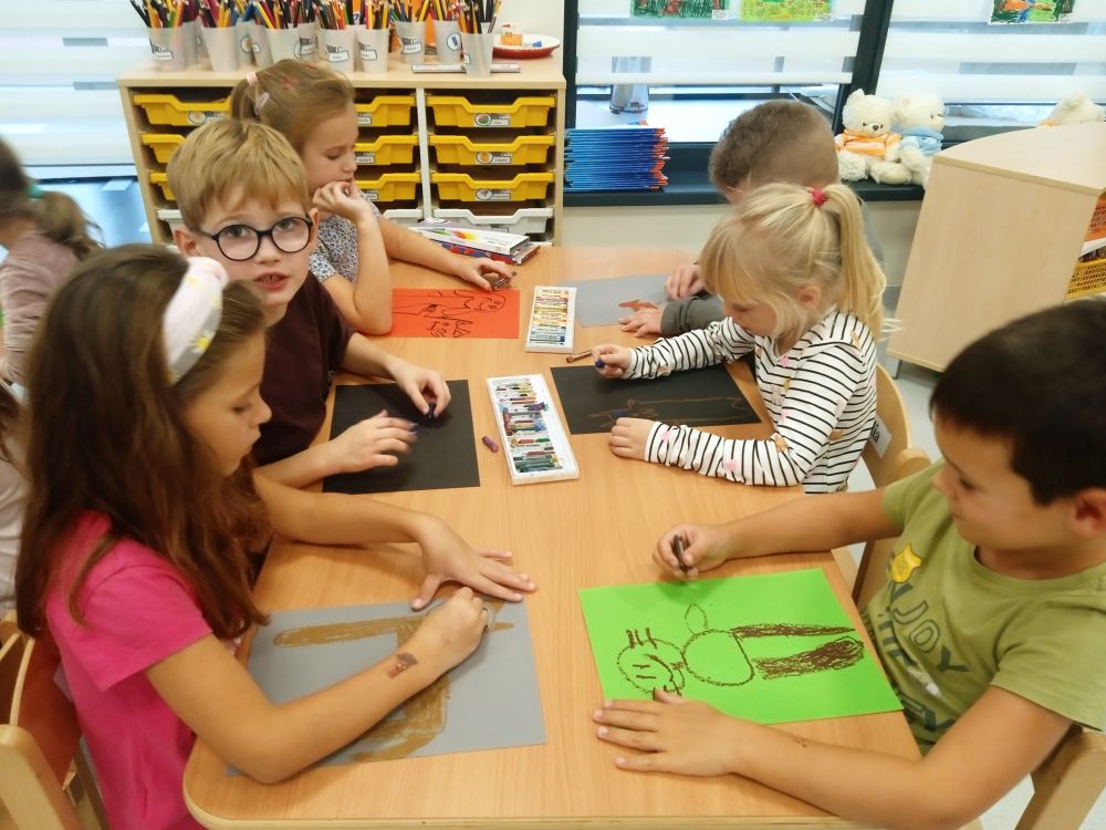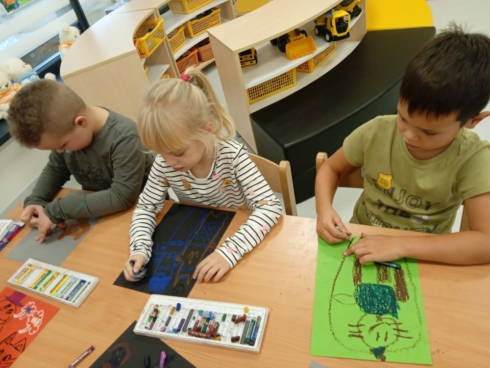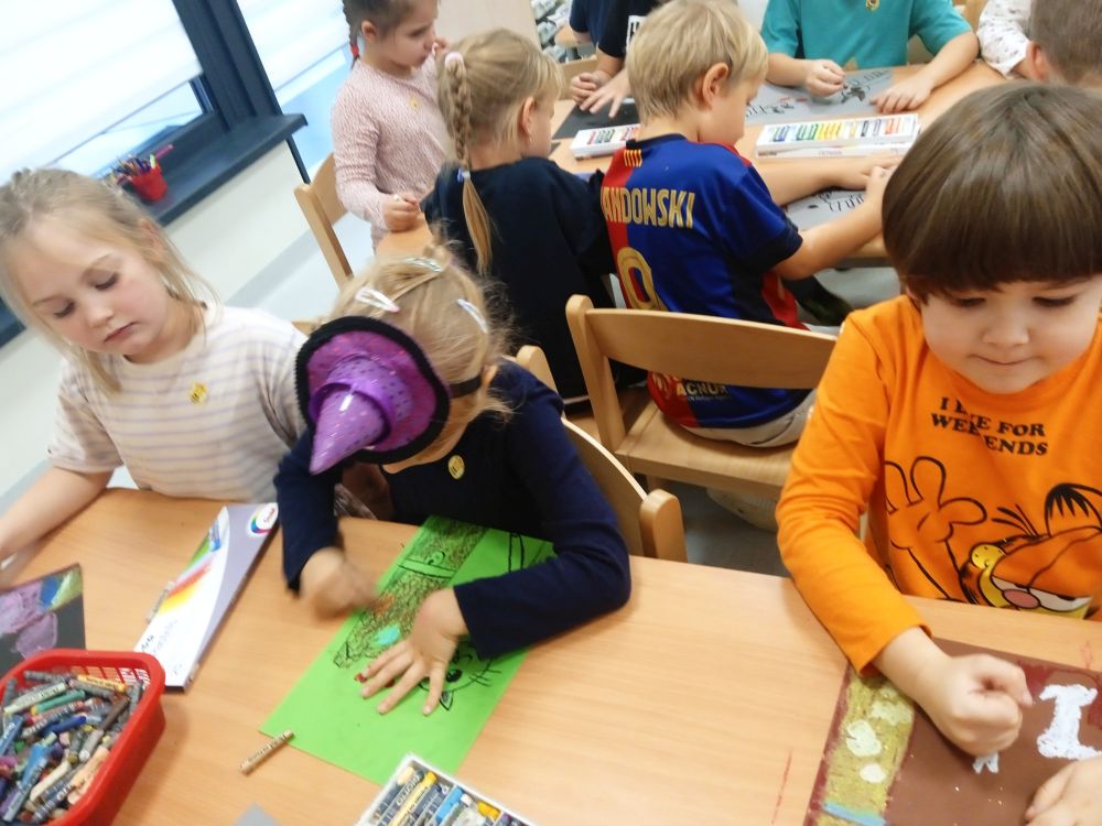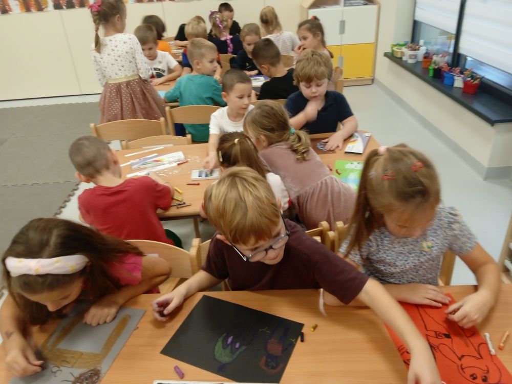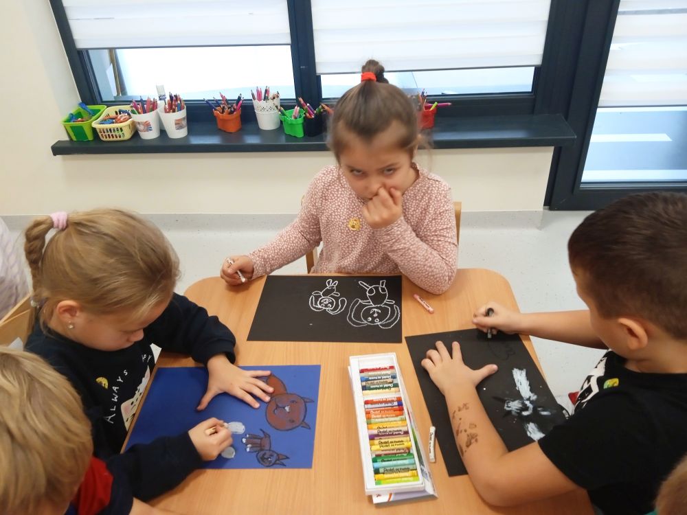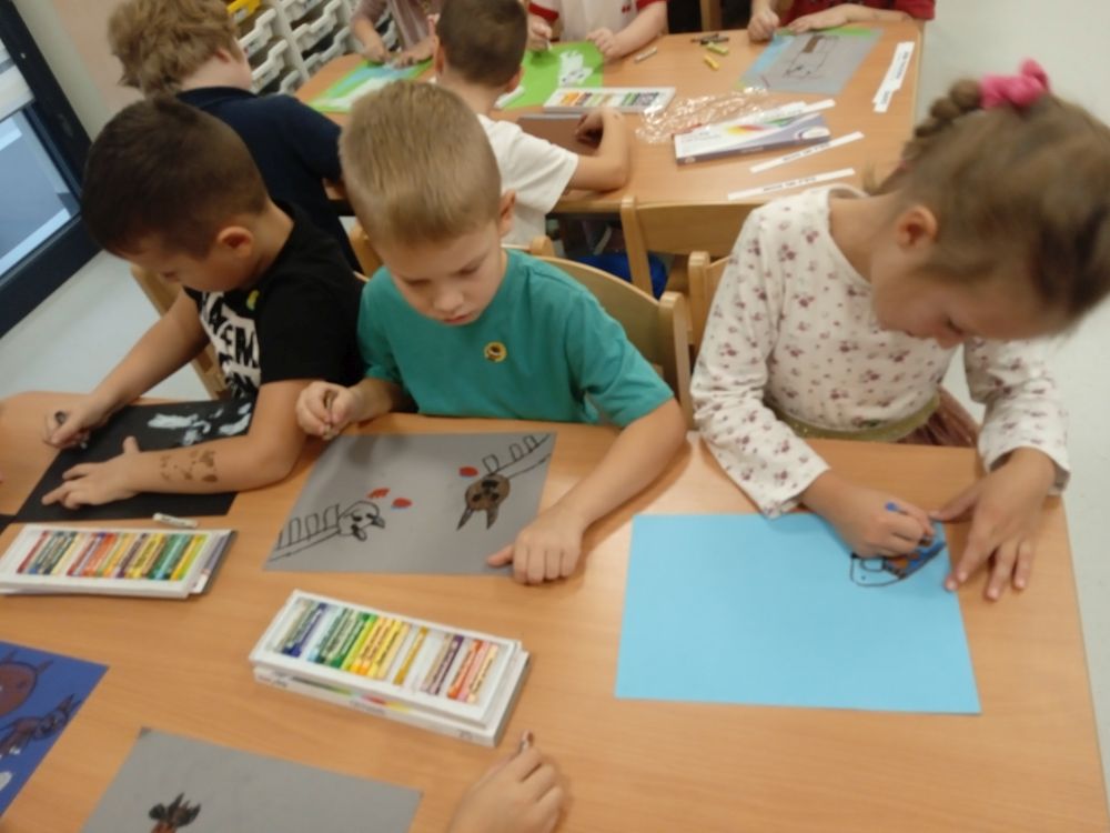 Kotki w ramach Ogólnopolskiego Projektu Edukacyjnego ,, Zabawa sztuką'' wykonały październikowe zadanie ,, Plakat". Miesiąc październik to miesiąc dobroci dla zwierząt-zajęcia miały na celu uświadamiania dzieciom problemów zwierząt,w tym ich bezdomności i złym traktowaniu przez człowieka. Przeprowadziliśmy ,, burzę mózgów'' nt jak możemy pomagać zwierzętom/ adopcja, zbiórka karmy i darów dla schronisk/. Wprowadzeniem do tematu było wyjaśnienie pojęcia plakat, oraz poznanie barwnych plakatów ,, Polskiej Szkoły Plakatu''. Następnie dzieci z ogromnym zapałem pracowały nad swoim plakatem i z dumą zaprezentowały efekty swojej pracy! Każde dziecko wybrało dla niego tytuł.