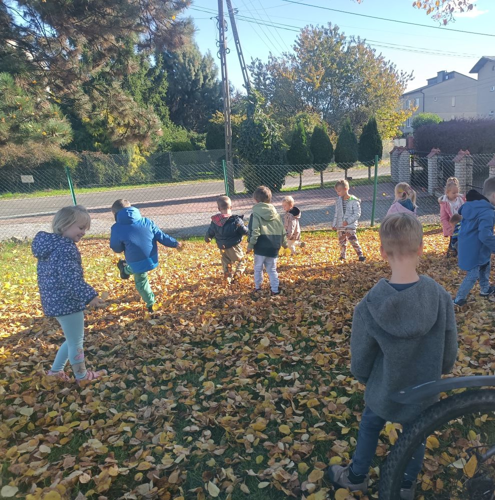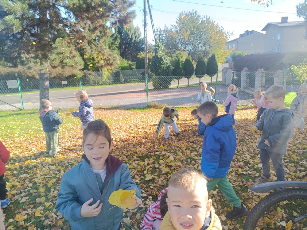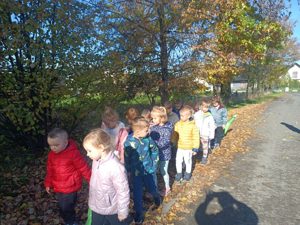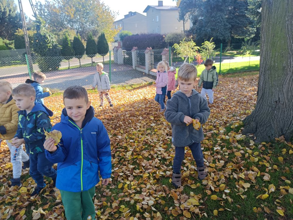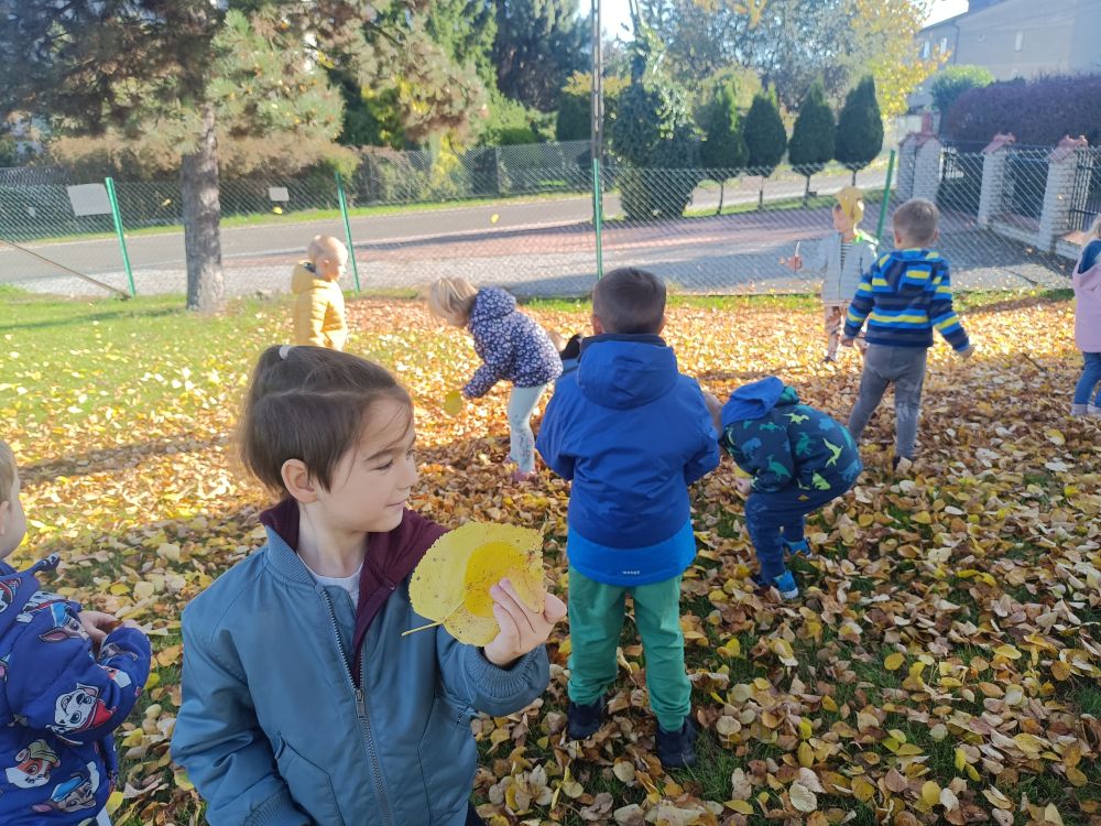 Dzieci z grupy Rybki podczas spaceru podziwiały kolory pięknej jesieni. W towarzystwie ciepłej pogody przedszkolaki spacerowały w okolicy naszego przedszkola. W trakcie pobytu na świeżym powietrzu opowiadały o charakterystycznych kolorach tej pory roku oraz zbierały kolorowe liście, które wzbogaciły kącik przyrody założony w sali przedszkolnej.