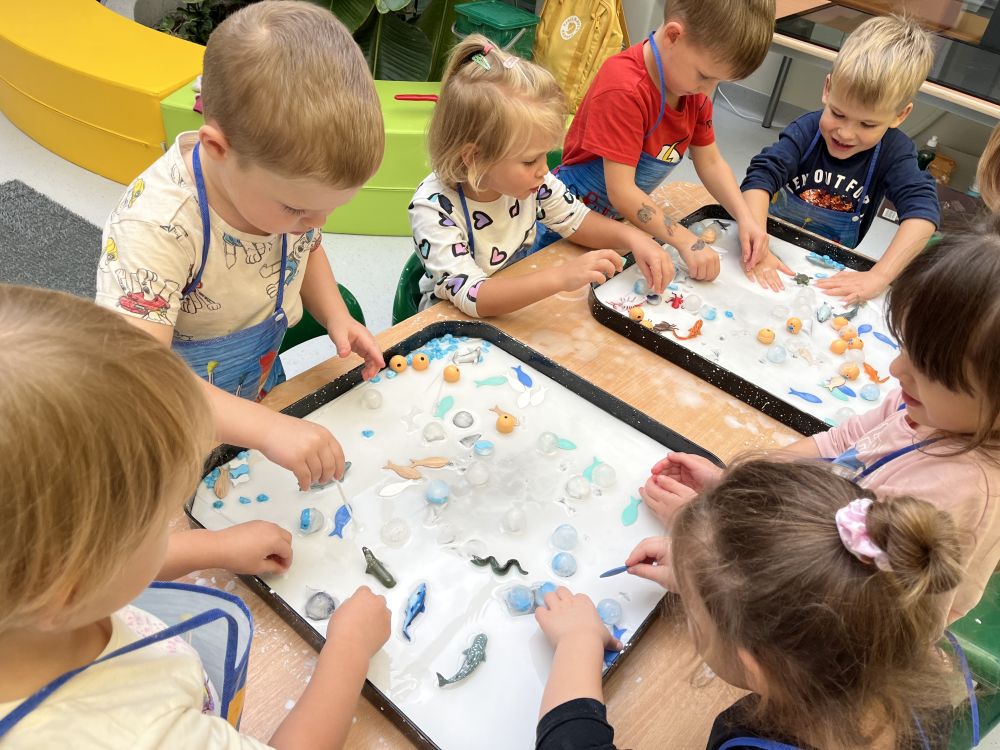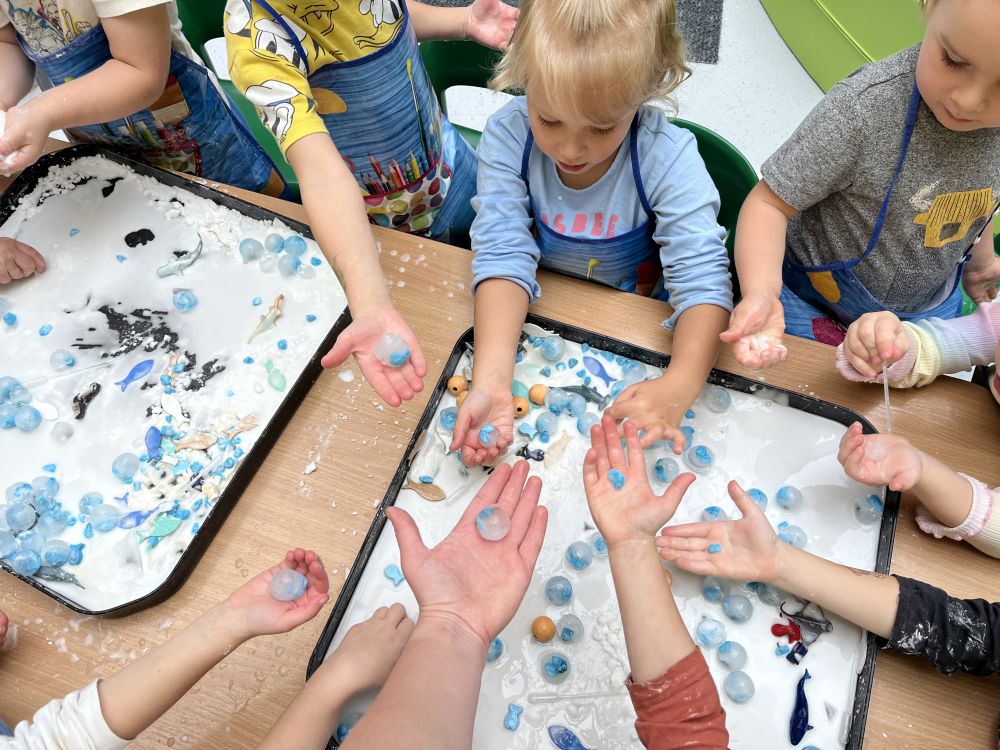 Na zakończenie czekała nas wyprawa do lazurowego świata, w którym dzieci odkrywały morskie zwierzęta ukryte w błękitnych masach.