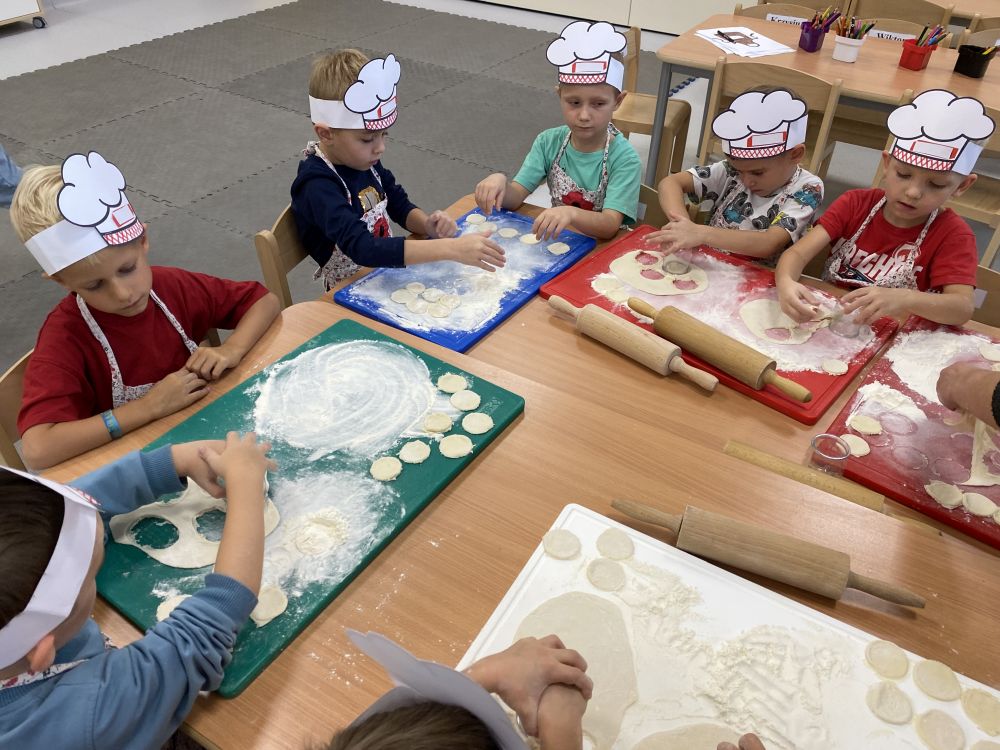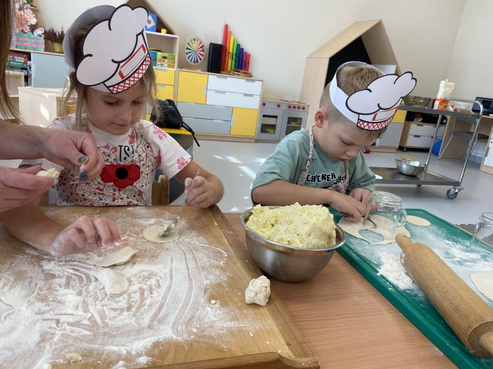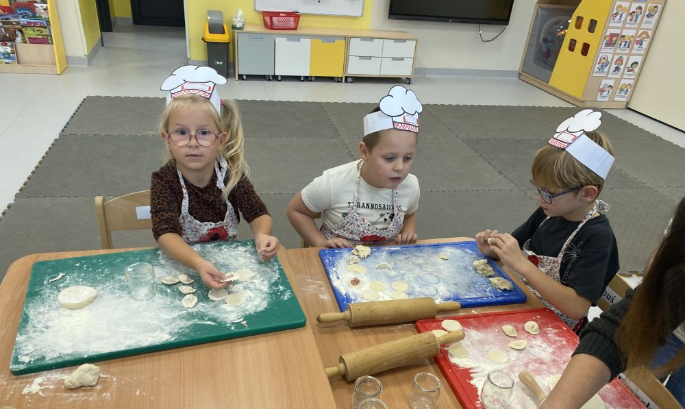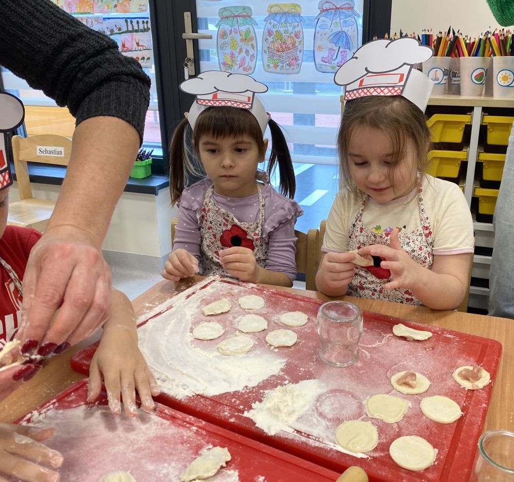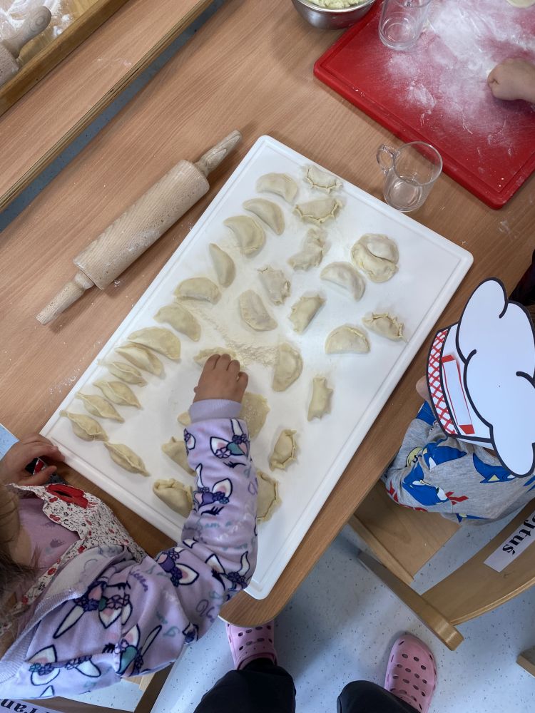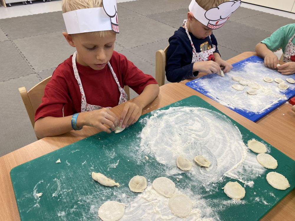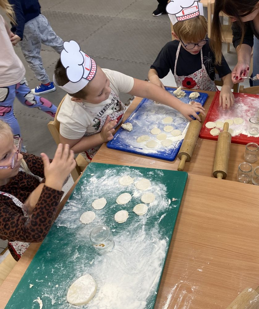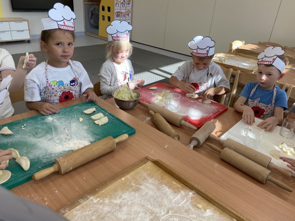 Dzieci w ramach projektu uczestniczyły w warsztatach z rodzicami dzieci z Ukrainy. Odwiedziła nas Pani, która wspólnie z dziećmi przygotowywała pierogi od podstaw. Było to ciekawe i integrujące doświadczenie, pozwalające poznać ukraińskie tradycje kulinarne, świetnie się przy tym bawiąc i ucząc.