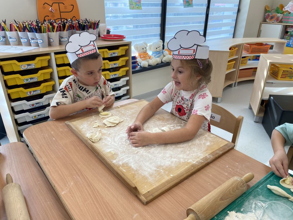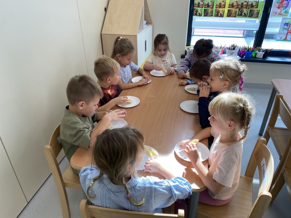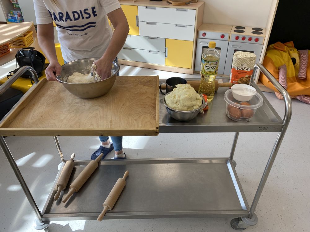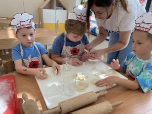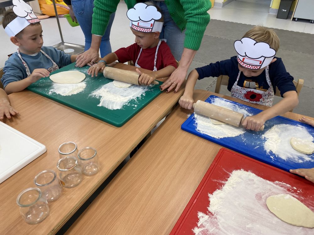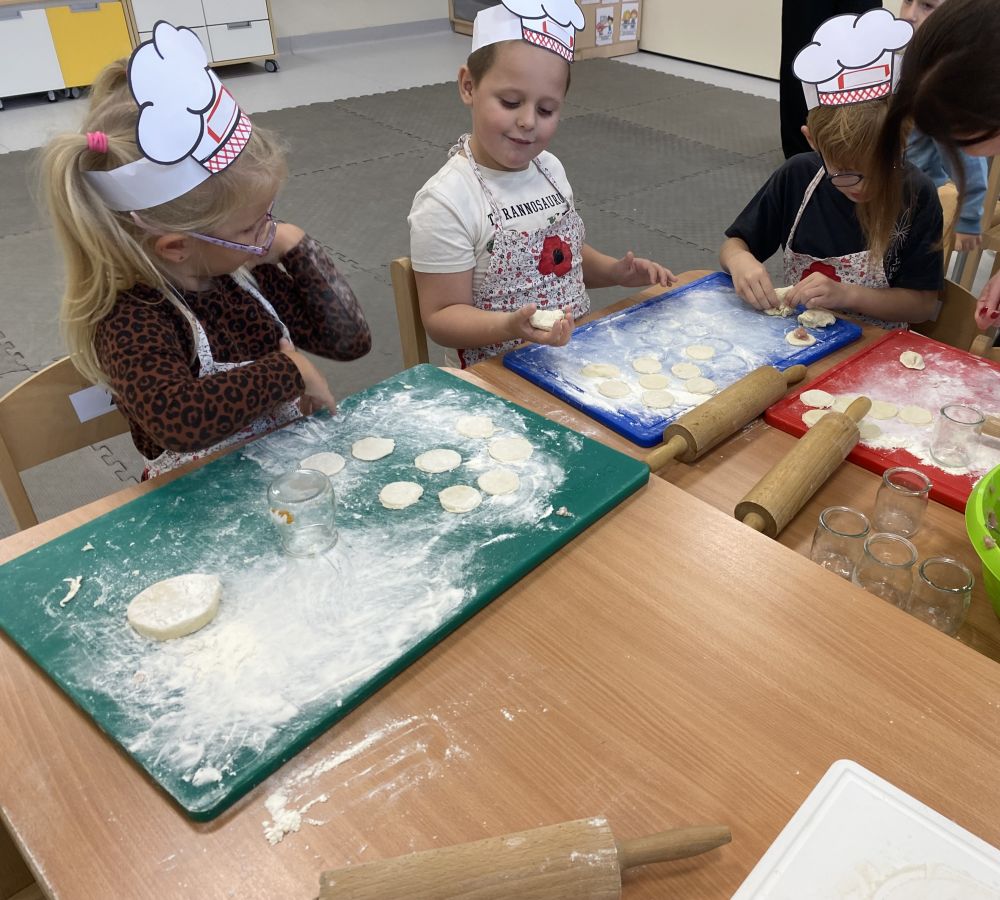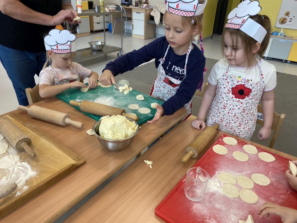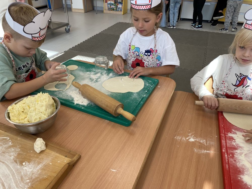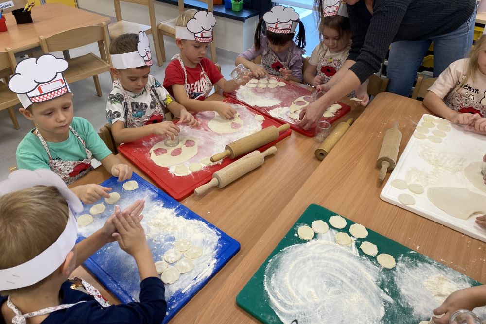 Dzieci w ramach projektu uczestniczyły w warsztatach z rodzicami dzieci z Ukrainy. Odwiedziła nas Pani, która wspólnie z dziećmi przygotowywała pierogi od podstaw. Było to ciekawe i integrujące doświadczenie, pozwalające poznać ukraińskie tradycje kulinarne, świetnie się przy tym bawiąc i ucząc.