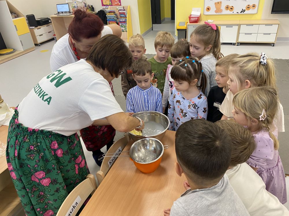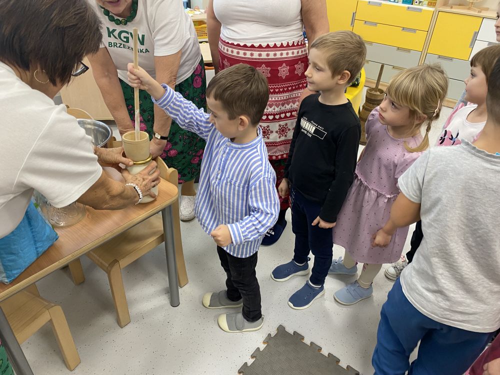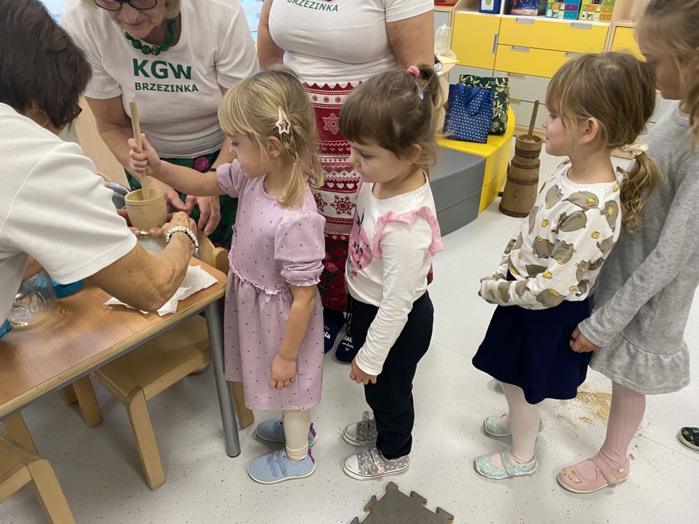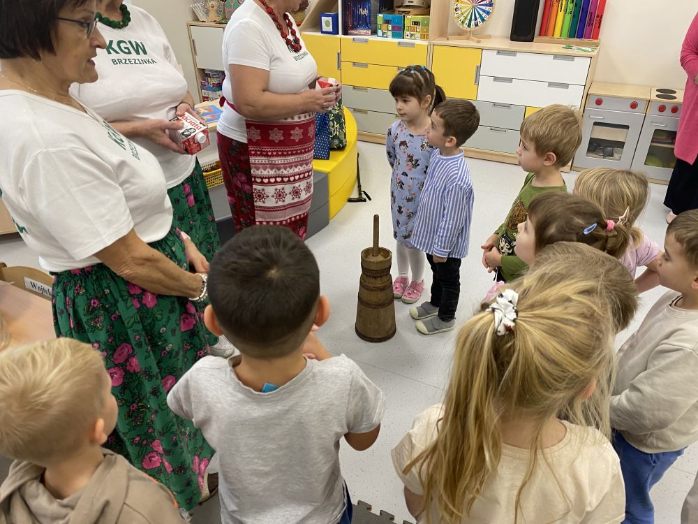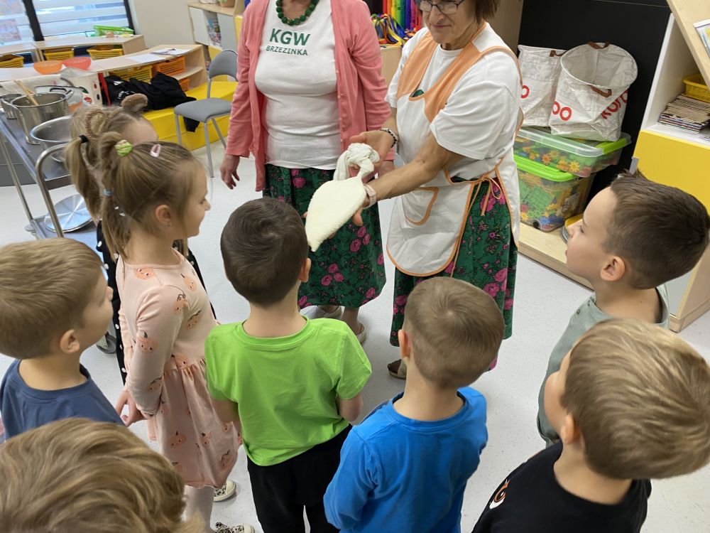Bardzo dziękujemy Panią z Koła Gospodyń Wiejskich z Brzezinki za udział w warsztatach, poświęcony czas i cenne przekazanie wiedzy przedszkolakom.