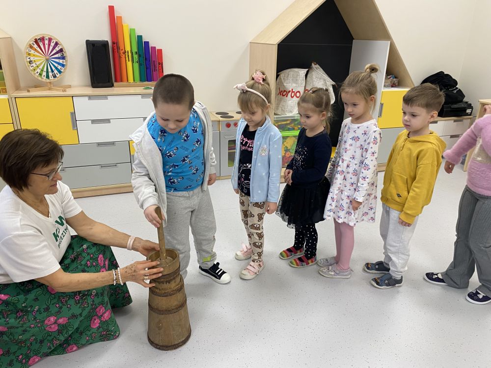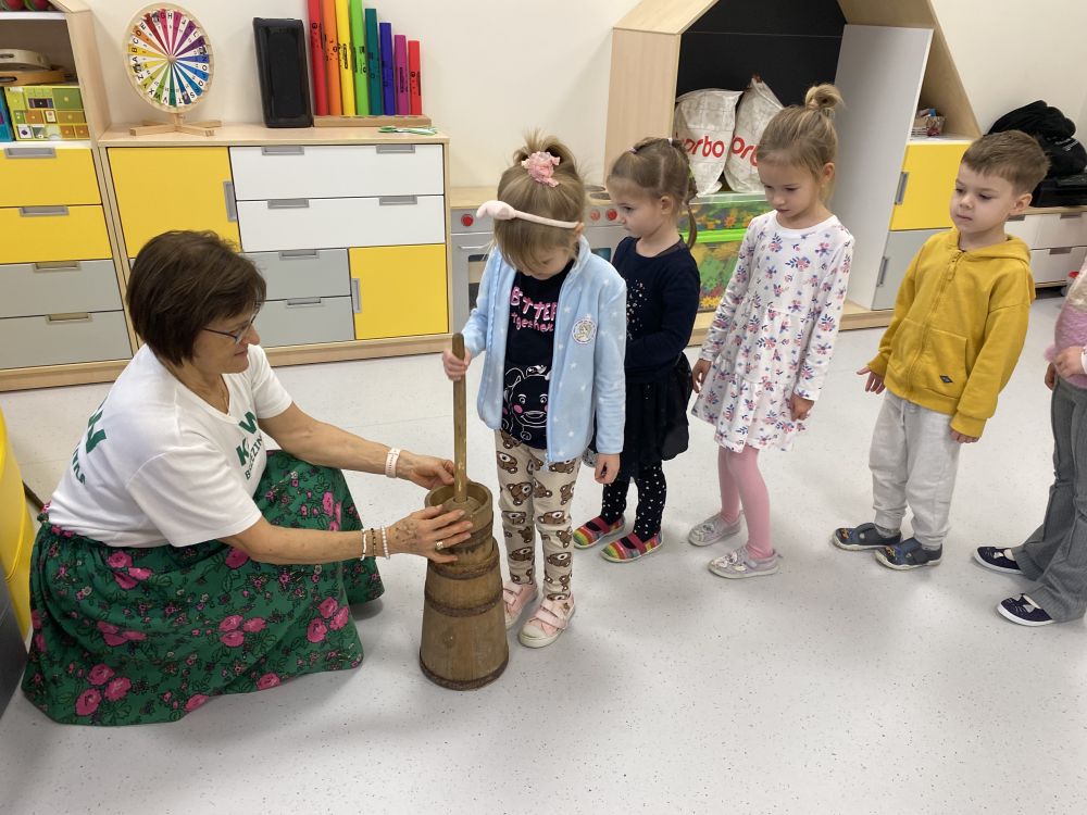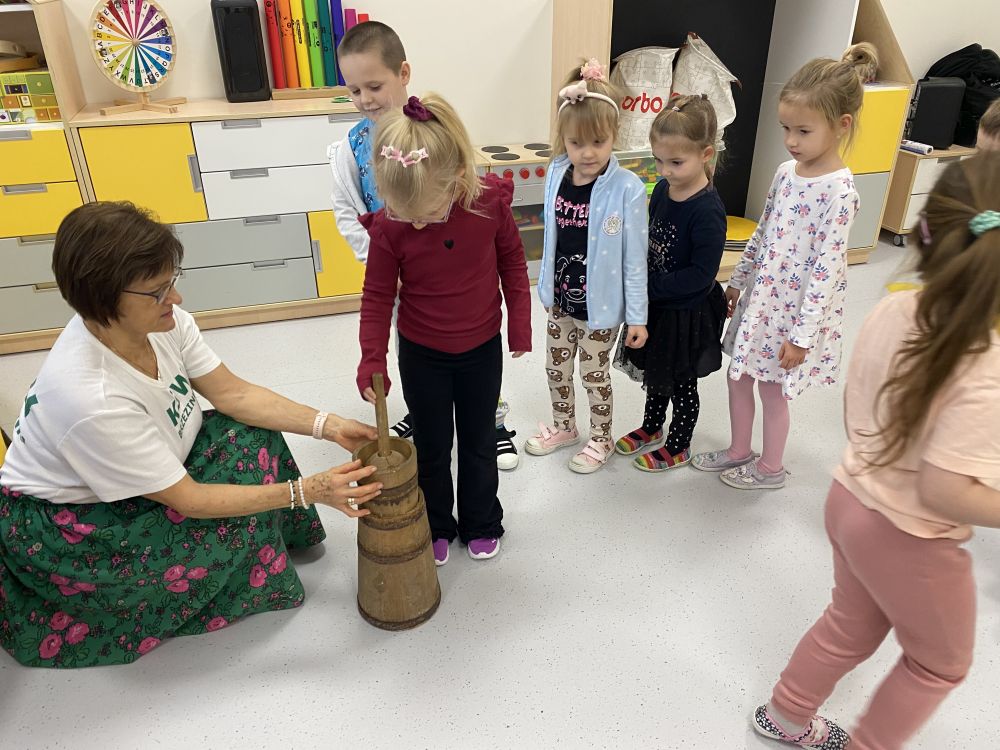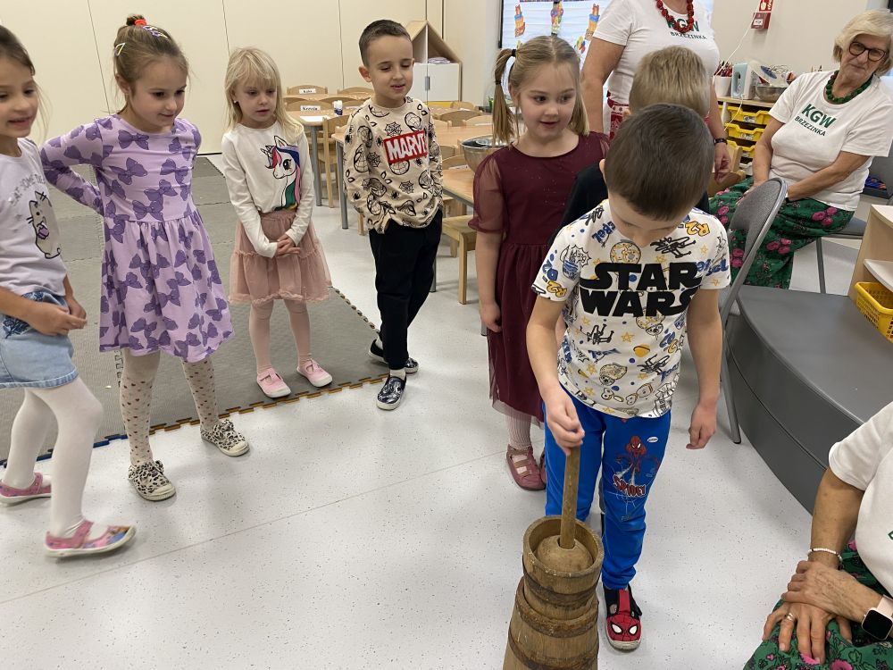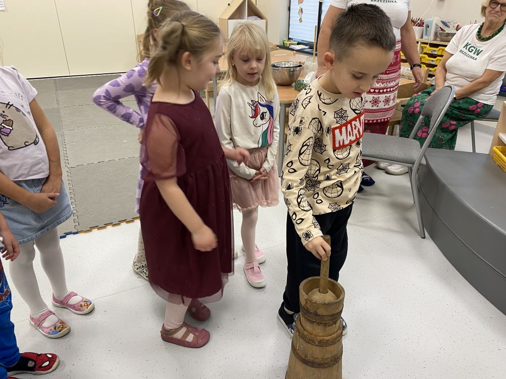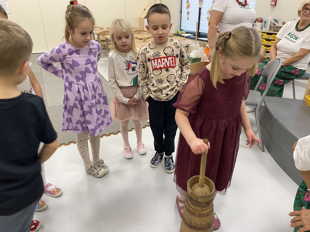 Bardzo dziękujemy Panią z Koła Gospodyń Wiejskich z Brzezinki za udział w warsztatach, poświęcony czas i cenne przekazanie wiedzy przedszkolakom.