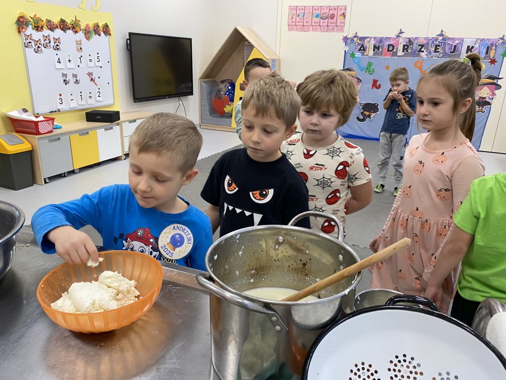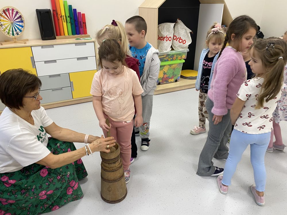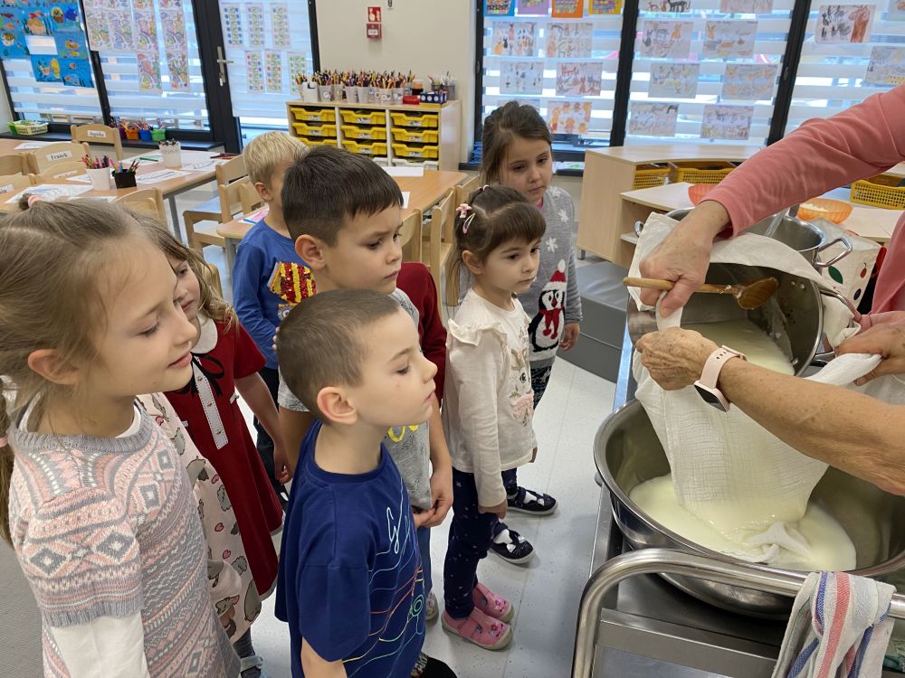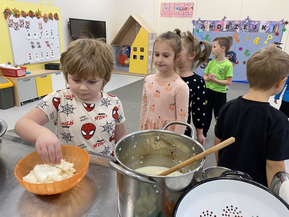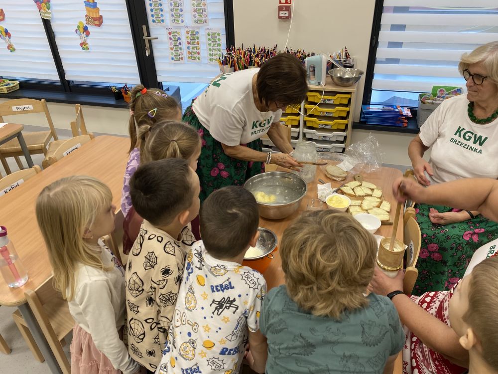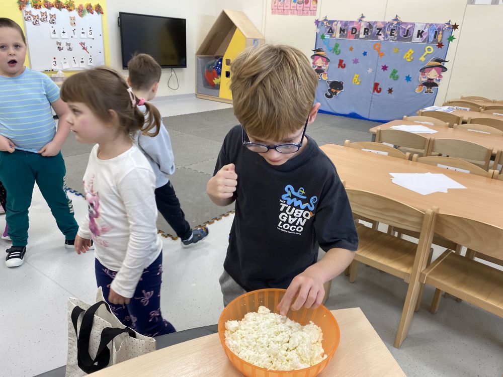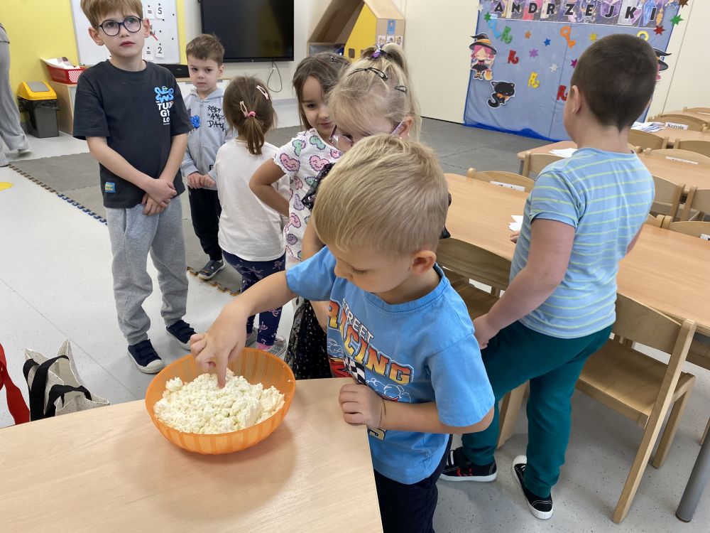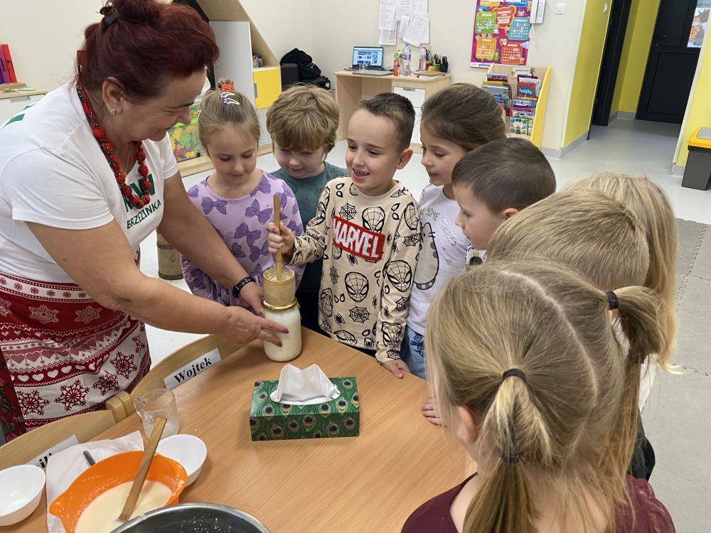 Dzieci w ramach projektu robiły masło i twaróg. Dzięki warsztatom dowiedziały się, jak powstają tradycyjne produkty spożywcze – od ubijania śmietany, aż po oddzielanie serwatki przy produkcji twarogu. Poznały różnice między produktami świeżymi a przetworzonymi, zobaczyły, jak ważna jest cierpliwość podczas pracy oraz jak wiele można zrobić samodzielnie z prostych składników. Na koniec każdy spróbował wykonanego przez siebie wyrobu, z dumą kosztując efektów własnej pracy.