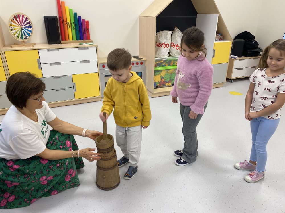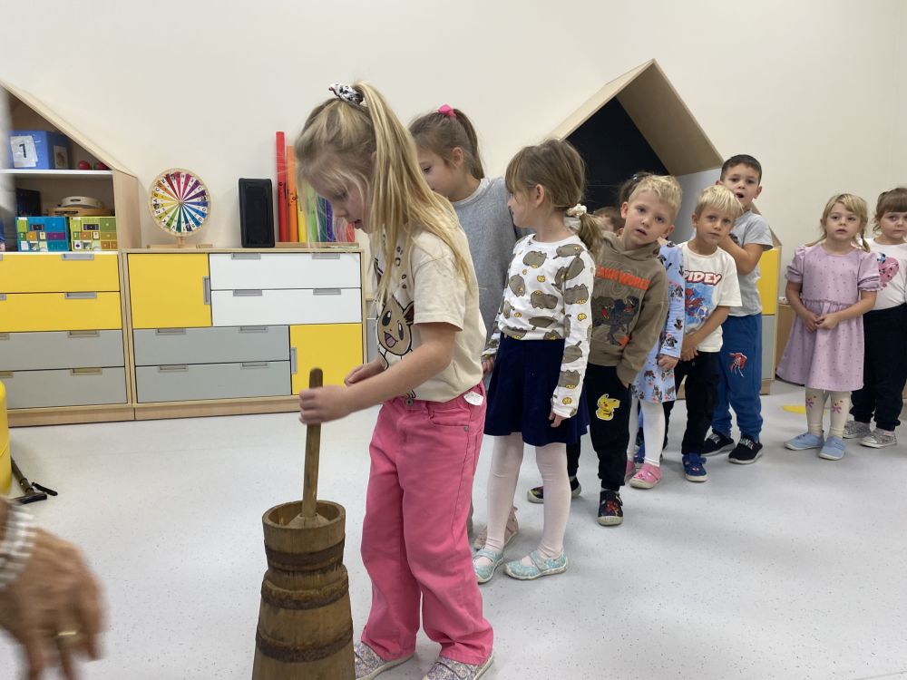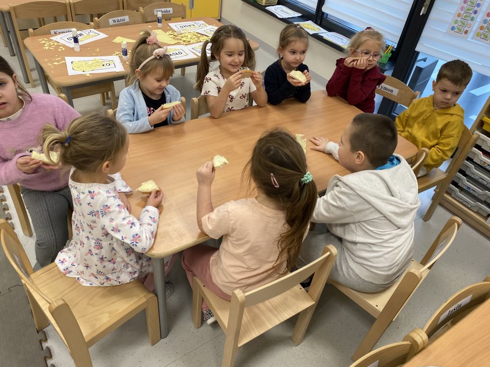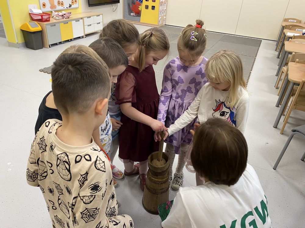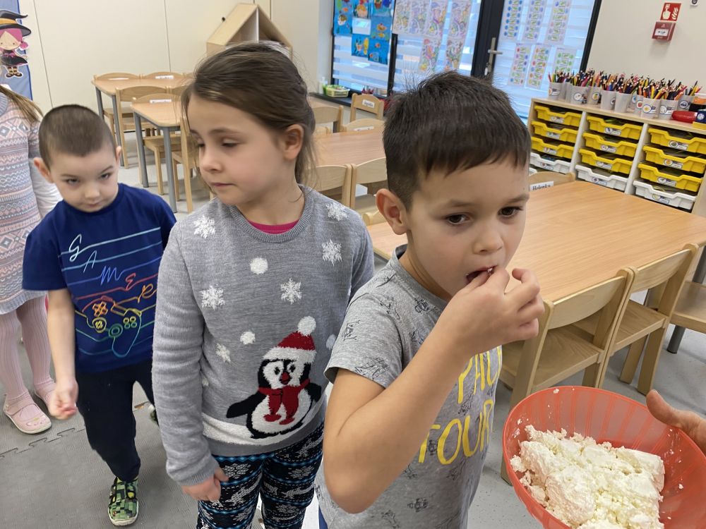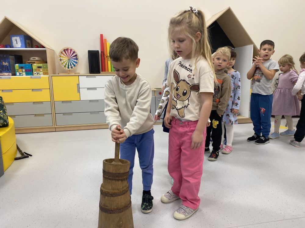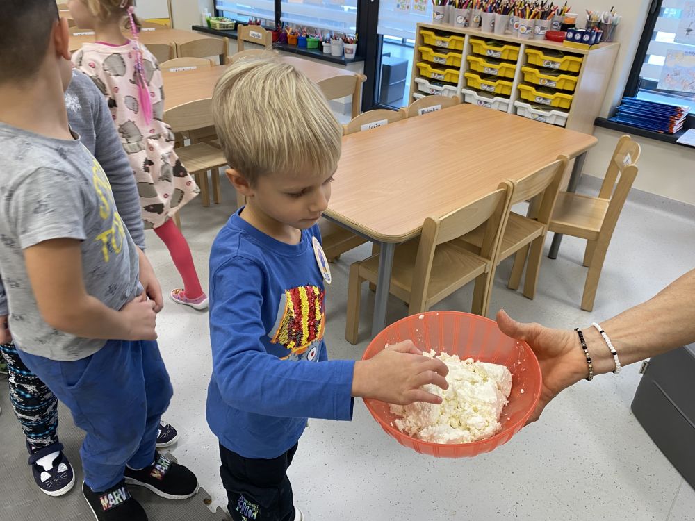 Dzieci w ramach projektu robiły masło i twaróg. Dzięki warsztatom dowiedziały się, jak powstają tradycyjne produkty spożywcze – od ubijania śmietany, aż po oddzielanie serwatki przy produkcji twarogu. Poznały różnice między produktami świeżymi a przetworzonymi, zobaczyły, jak ważna jest cierpliwość podczas pracy oraz jak wiele można zrobić samodzielnie z prostych składników. Na koniec każdy spróbował wykonanego przez siebie wyrobu, z dumą kosztując efektów własnej pracy.