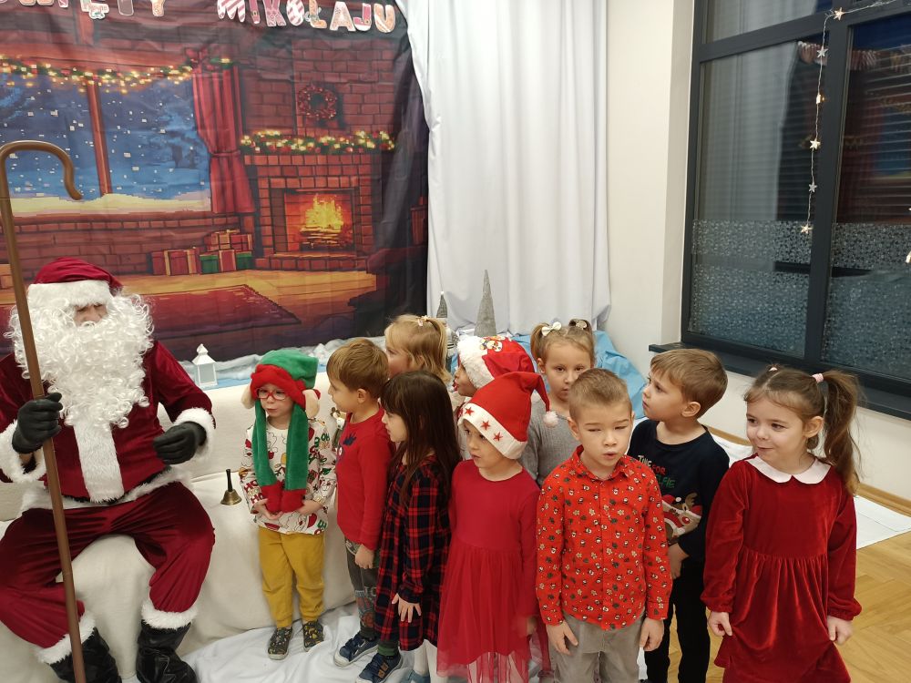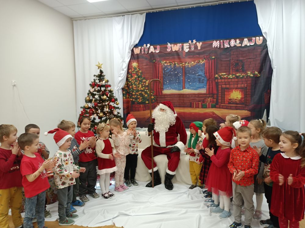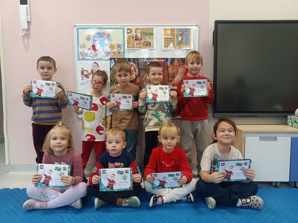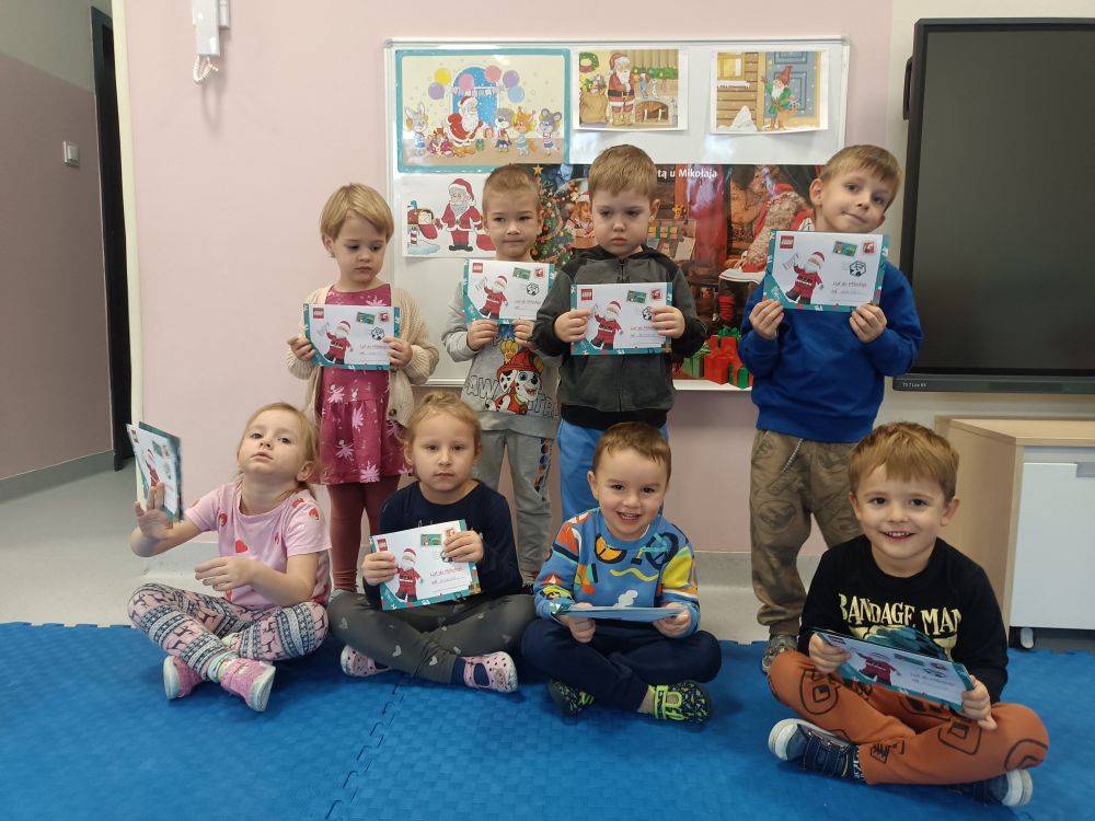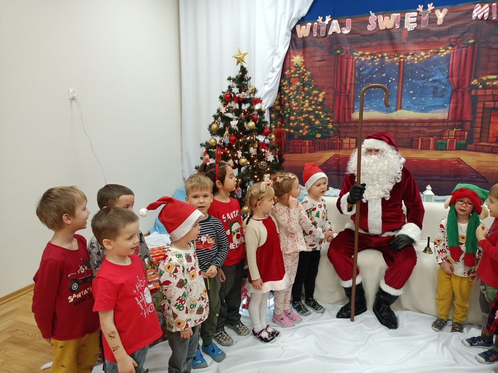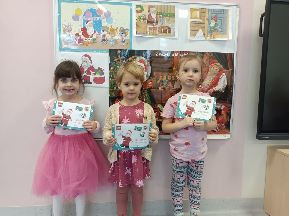 W oczekiwaniu na spotkanie z Mikołajem przedszkolaki z grupy Rybki napisały do niego listy. Życzeń nie było końca… najczęściej dzieci prosiły o nowe zabawki. Listy podpisane i zapakowane wysłaliśmy pocztą expres do Laponii. Expres rzeczywiście zadziałał bo już 4 grudnia mogliśmy gościć Mikołaja w naszym przedszkolu. Rybki przygotowały dla naszego gościa muzyczny upominek oraz recytowały wierszyk. W dużym worku z prezentami nie zabrakło prezentów dla grzecznych Rybek.