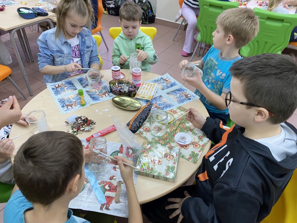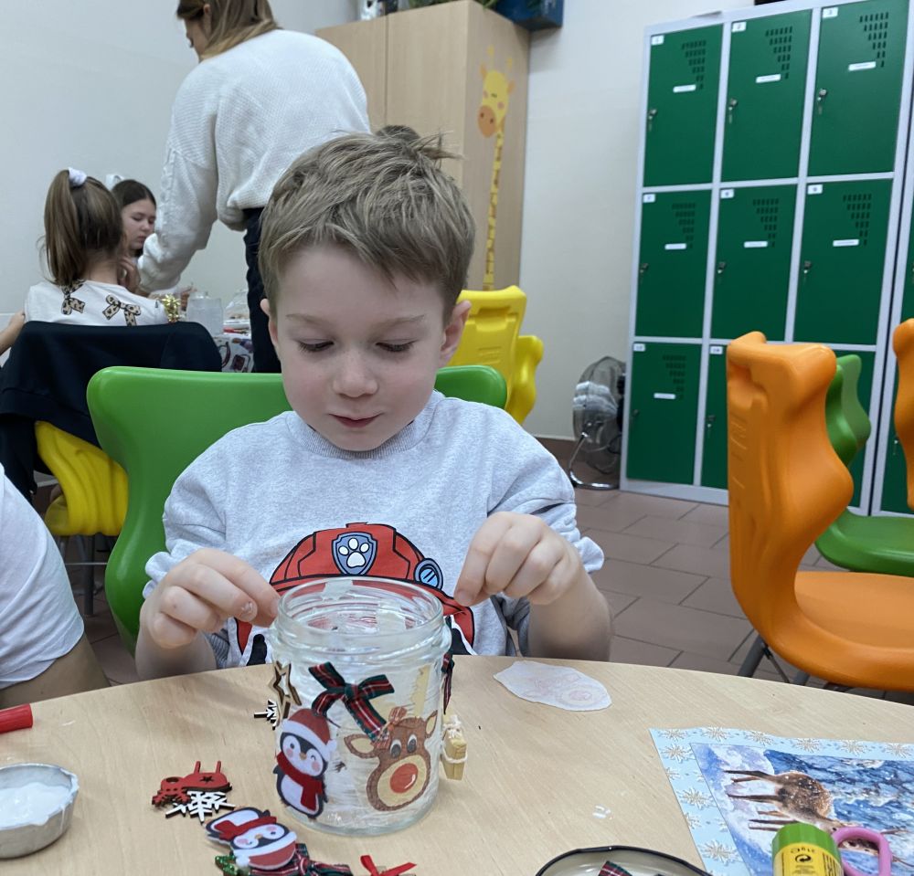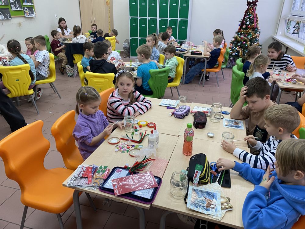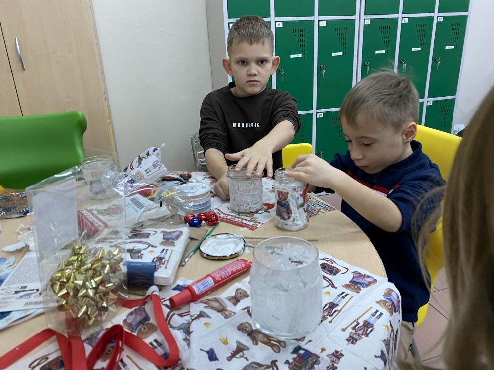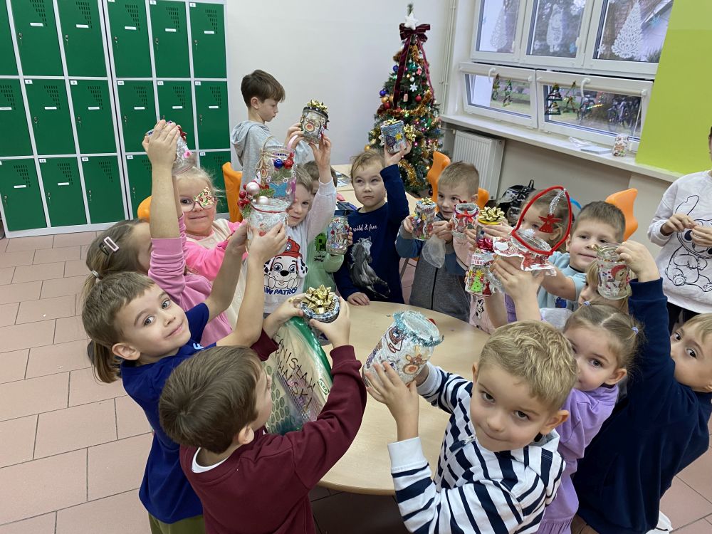 Grupa „Jeżyki” udała się na warsztaty do swoich starszych kolegów ze Szkoły Podstawowej w Brzezince. Wspólnie z ich pomocą dzieci wykonały lampiony z serwetek oraz różnych materiałów przyniesionych z domu. Każdy lampion był wyjątkowy i niepowtarzalny. Podczas spotkania dzieci zintegrowały się z kolegami i koleżankami, a także miały okazję zobaczyć szkołę i poznać jej wnętrze.