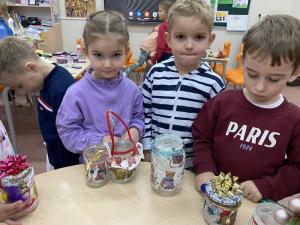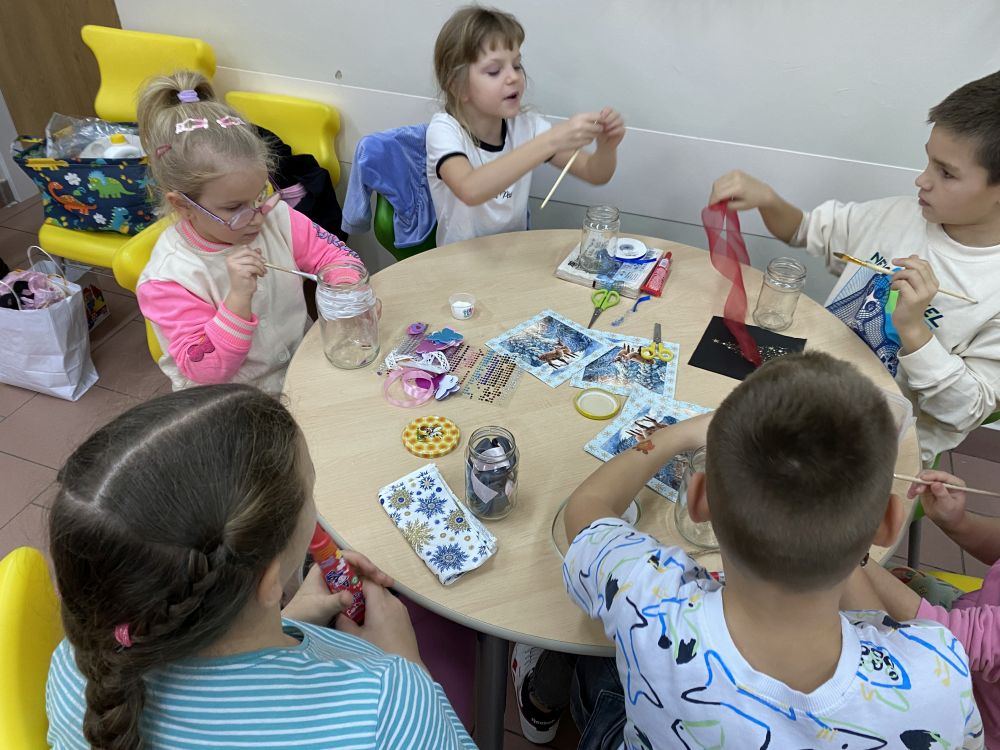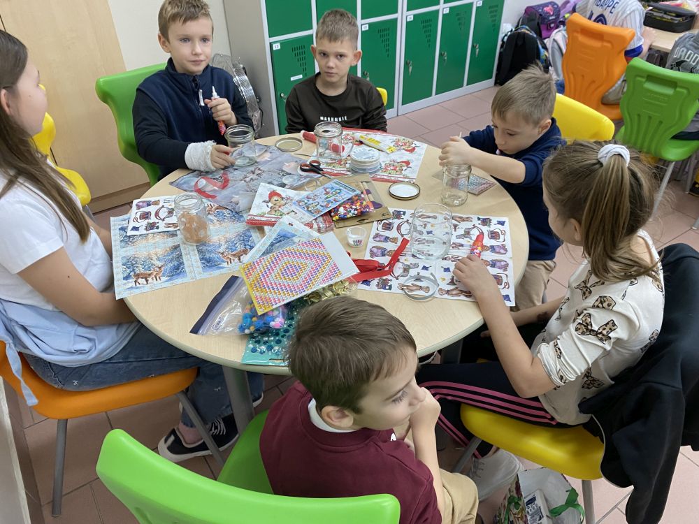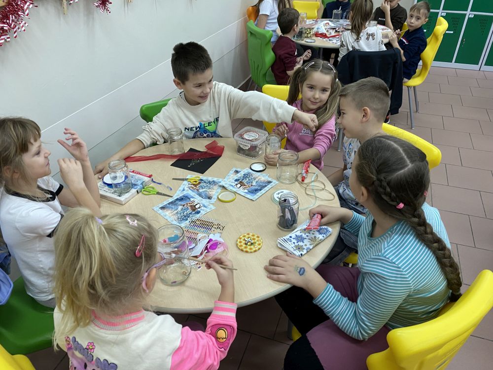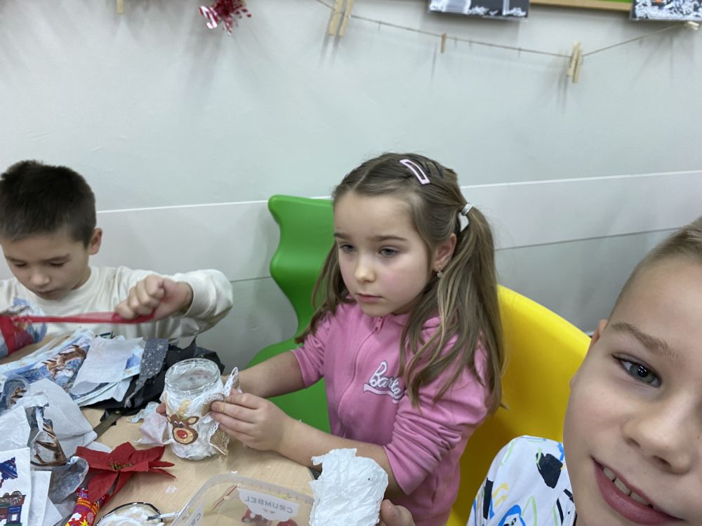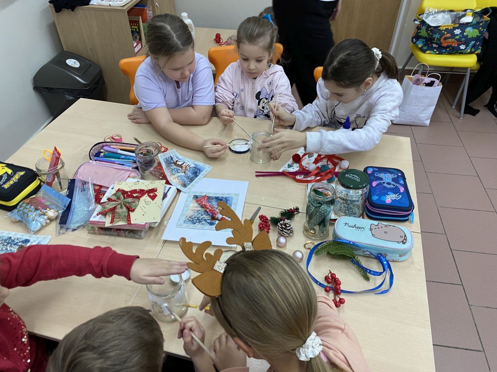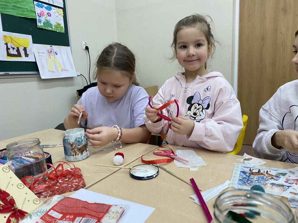 Grupa „Jeżyki” udała się na warsztaty do swoich starszych kolegów ze Szkoły Podstawowej w Brzezince. Wspólnie z ich pomocą dzieci wykonały lampiony z serwetek oraz różnych materiałów przyniesionych z domu. Każdy lampion był wyjątkowy i niepowtarzalny. Podczas spotkania dzieci zintegrowały się z kolegami i koleżankami, a także miały okazję zobaczyć szkołę i poznać jej wnętrze.
