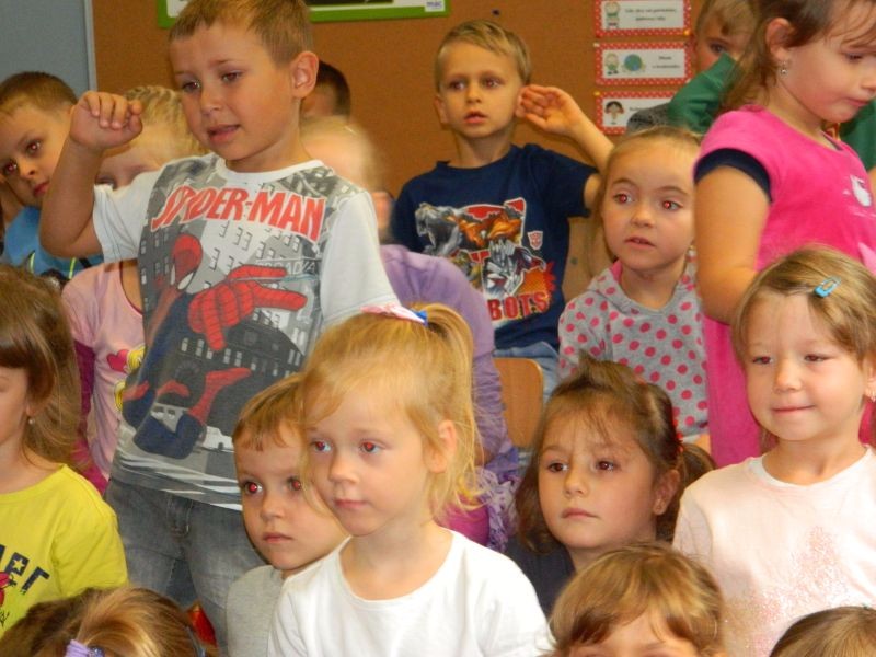 W trakcie przedstawienia przedszkolaki wcielały się w różne postacie bajkowe.