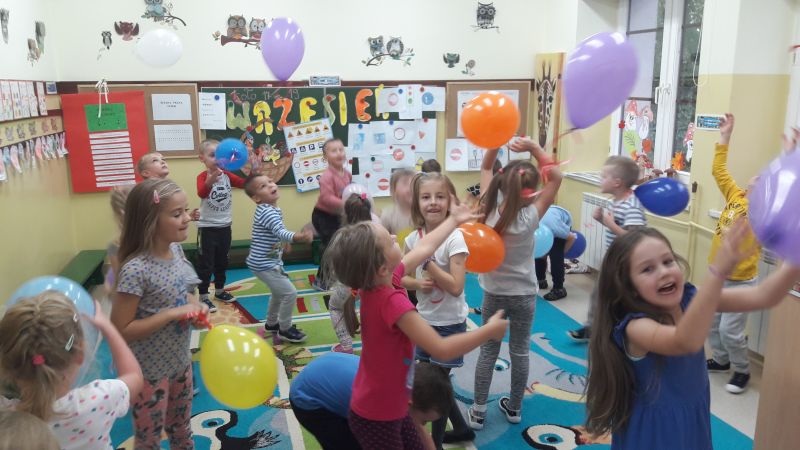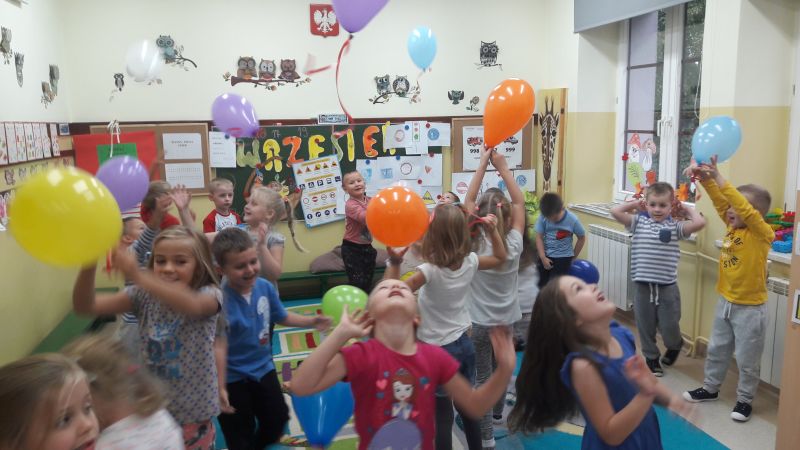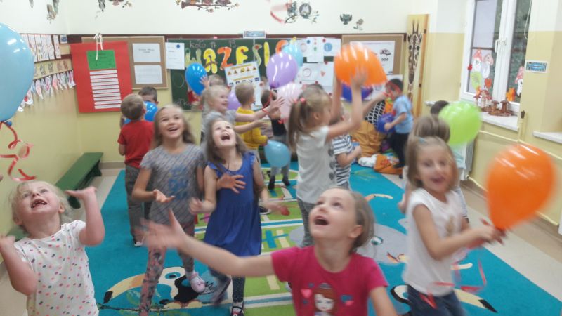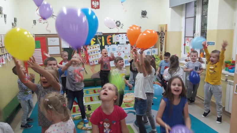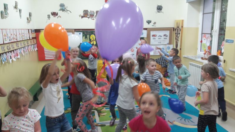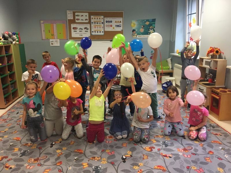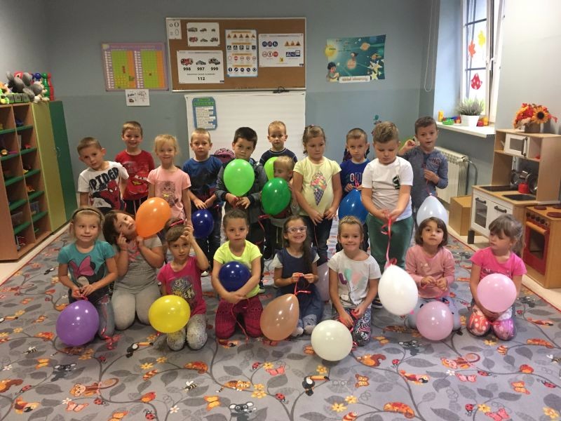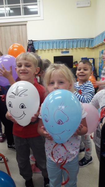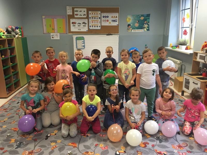 ,,Każdy przedszkolak dobrze wie, że kiedy 20 wrzesień zbliża się, od najmłodszego, aż po starszaka, wszyscy świętują Dzień Przedszkolaka". 20 września to dzień ważny dla wszystkich przedszkolaków w całej Polsce. Nasze przedszkolaczki świętowanie rozpoczęły od nadmuchiwania kolorowych baloników, które przyczyniył się później do wesołej zabawy. Ten dzień był wyjątkowy dla dzieci, uczestniczyły w zabawach z wykorzystaniem chusty animacyjnej, w grach zespołowych, brały udział w konkursach. Radość była ogromna, a głośny doping uczestników świadczył o wyśmienitej zabawie. Niech żyją nam wszystkie przedszkolaki!