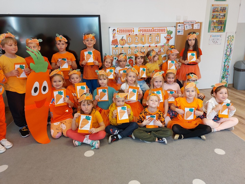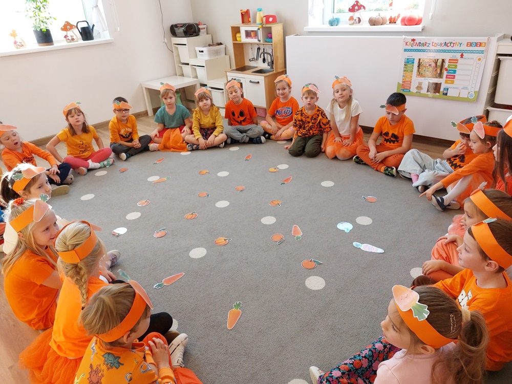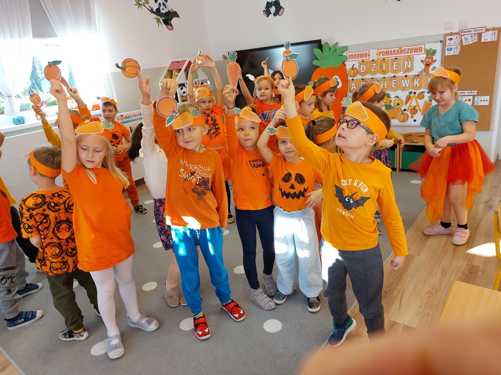 W tym dniu w naszym przedszkolu królował kolor pomarańczowy. Nastroje wszystkich uczestników Pomarańczowego Dnia były bardzo radosne.. W strojach przedszkolaków dominował kolor pomarańczowy,