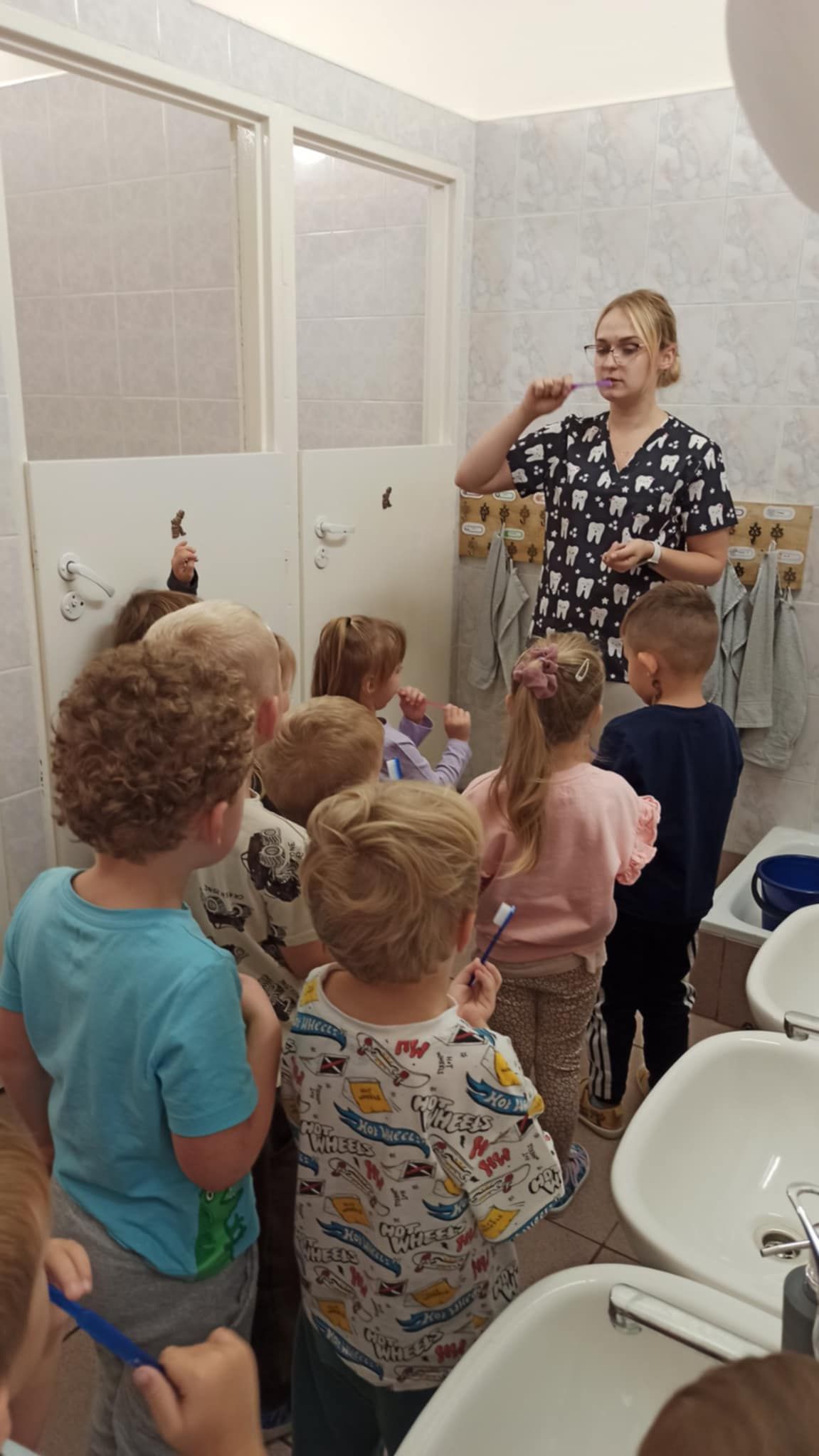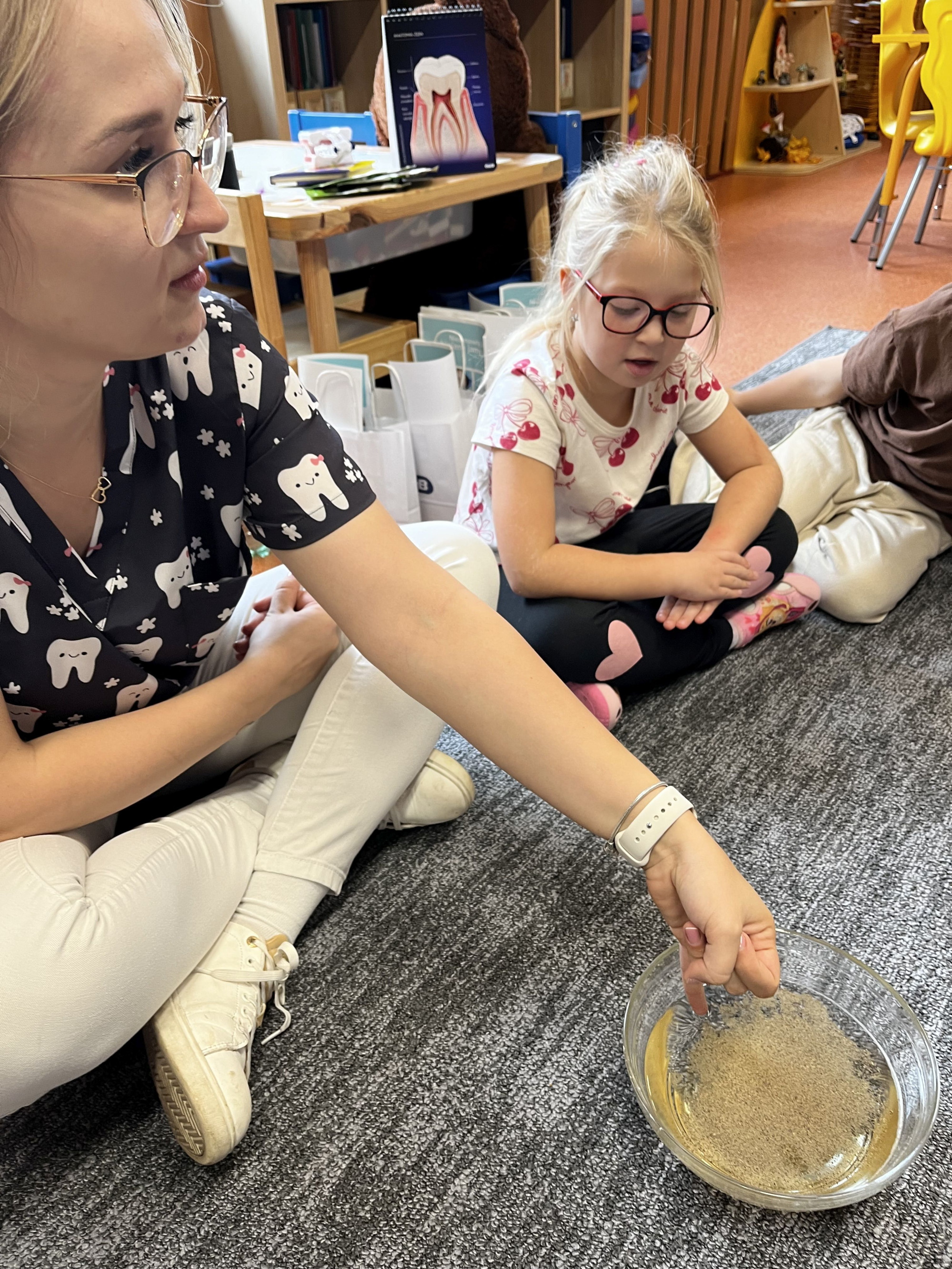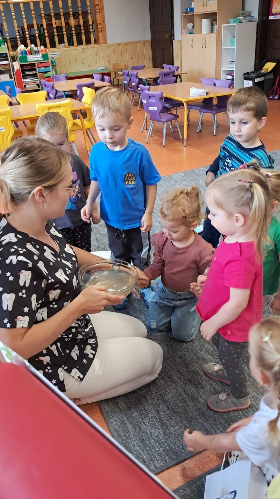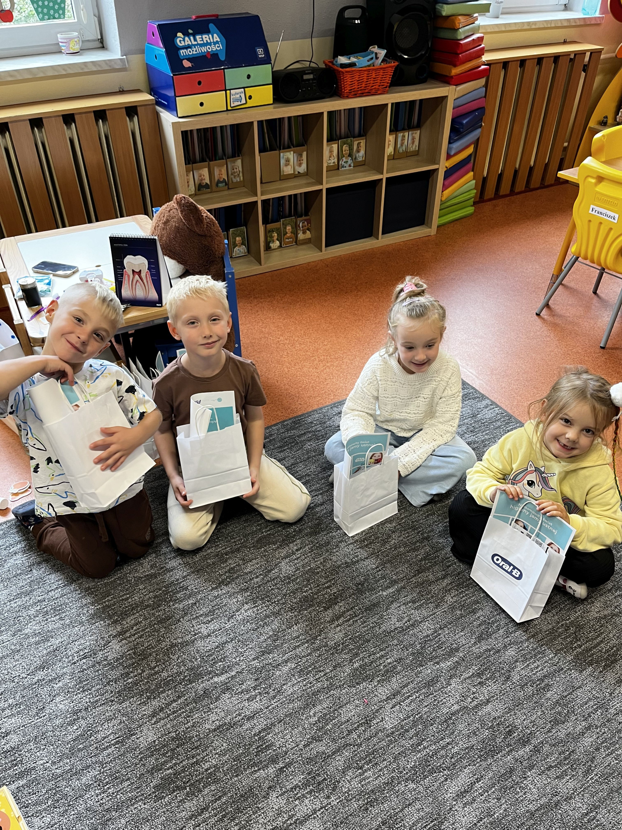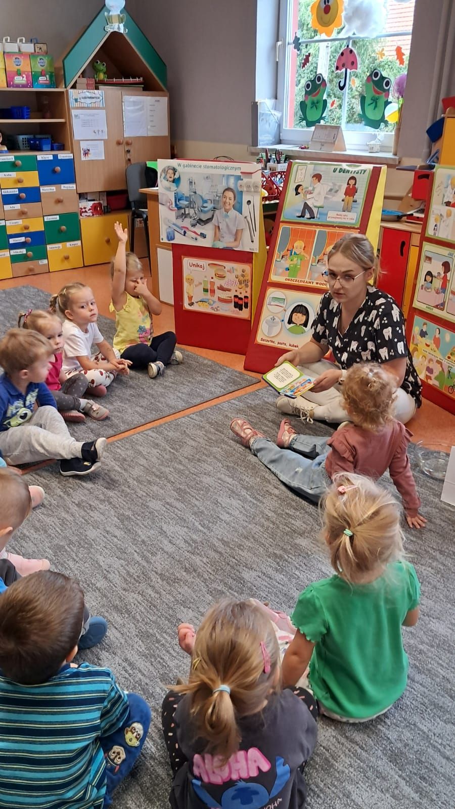 W dniu 6 października do naszego przedszkola zawitała Pani Ewa Góralczyk , która jest asystentką stomatologiczną. Pani Ewa opowiedziałóa dzieciom o swojej pracy oraz o tym jak należy dbać o swoje zęby. Serdecznie dziękujemy za wspaniałe warsztaty.