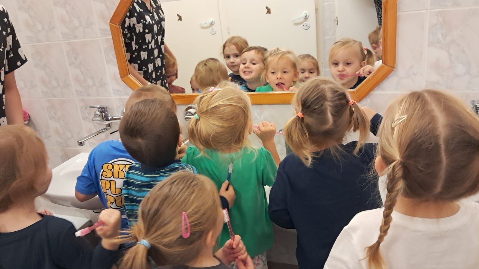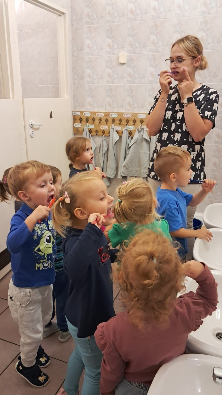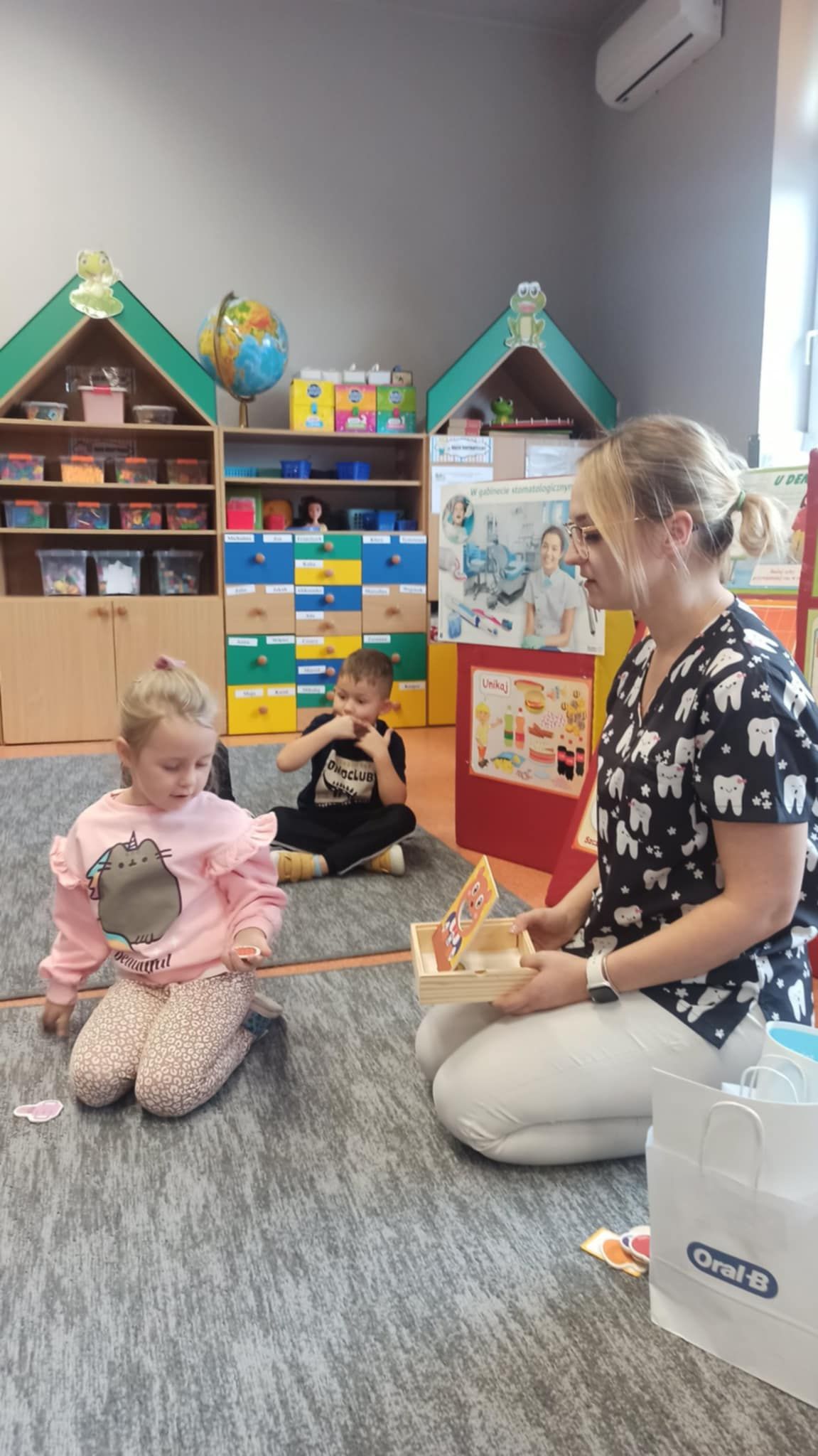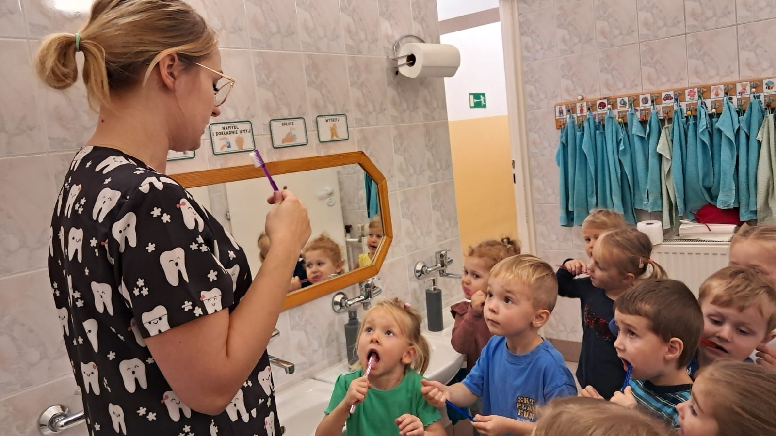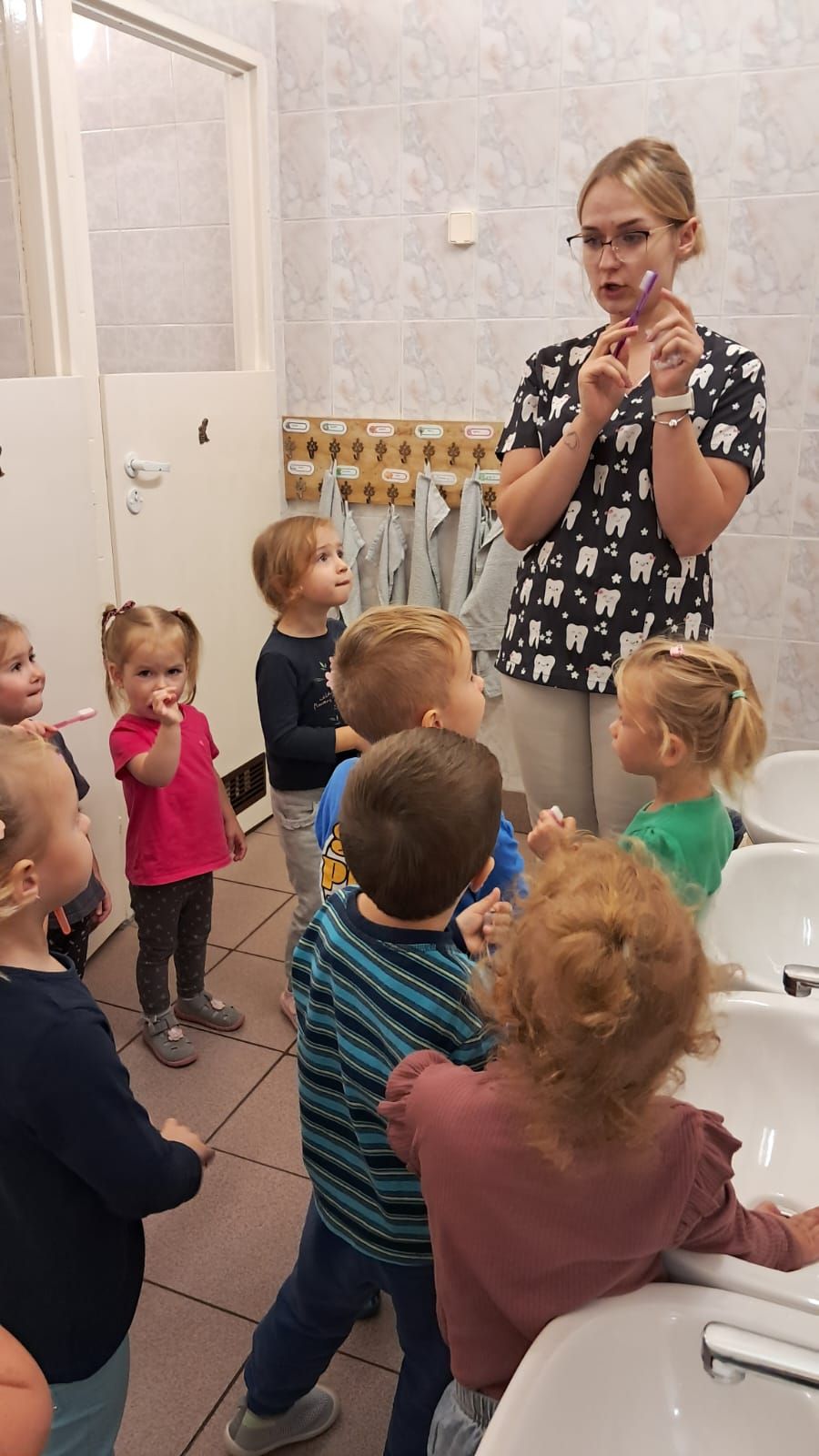 W dniu 6 października do naszego przedszkola zawitała Pani Ewa Góralczyk , która jest asystentką stomatologiczną. Pani Ewa opowiedziałóa dzieciom o swojej pracy oraz o tym jak należy dbać o swoje zęby. Serdecznie dziękujemy za wspaniałe warsztaty.