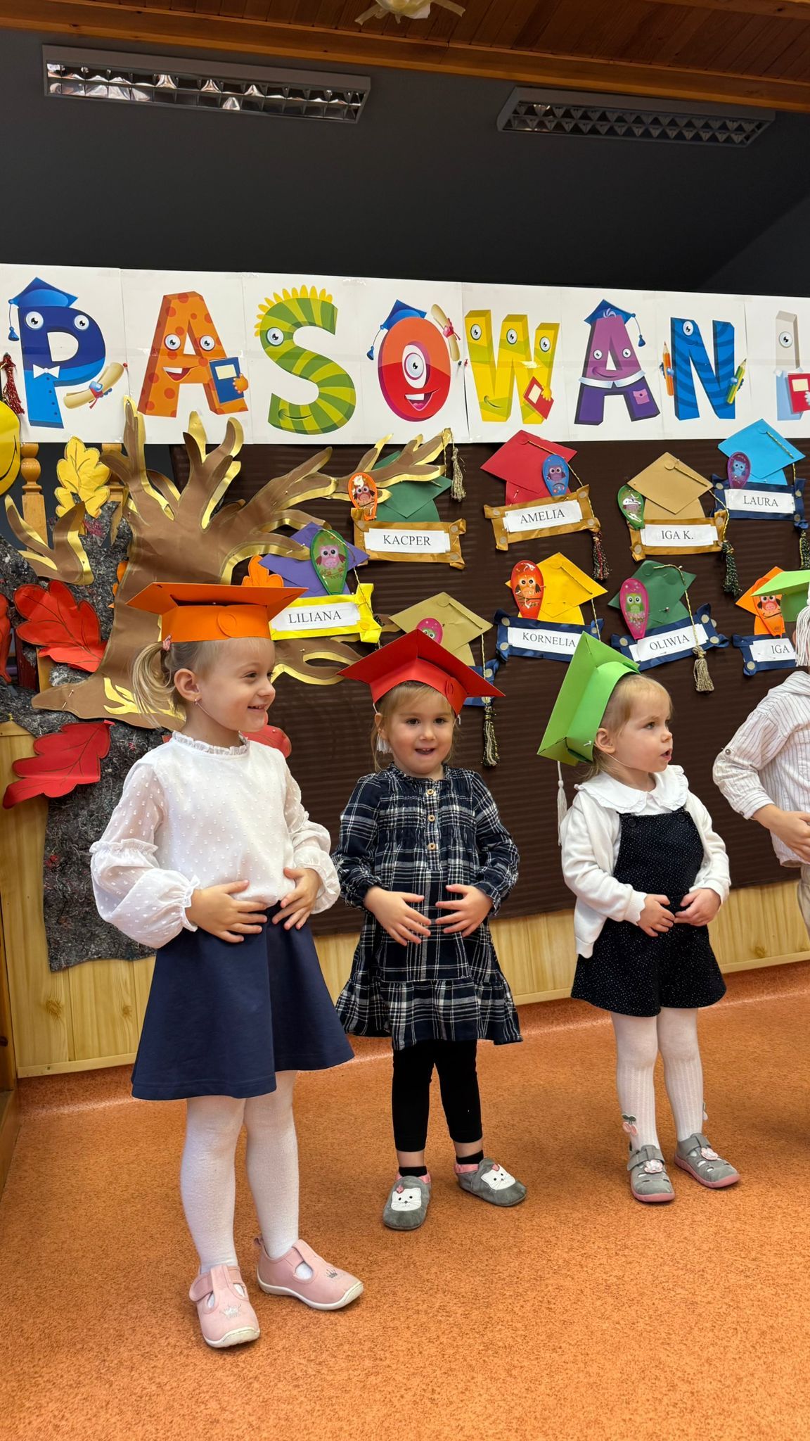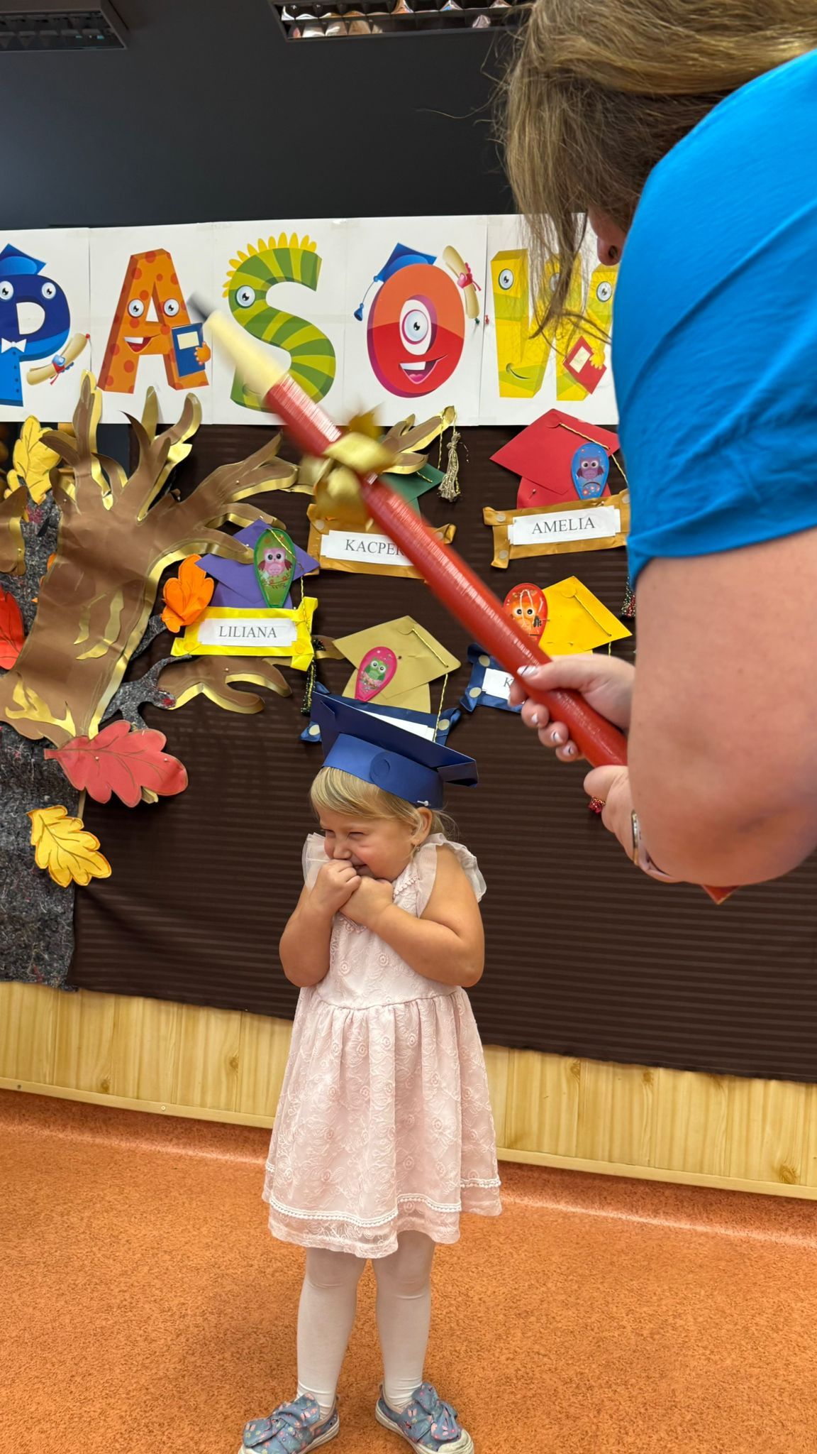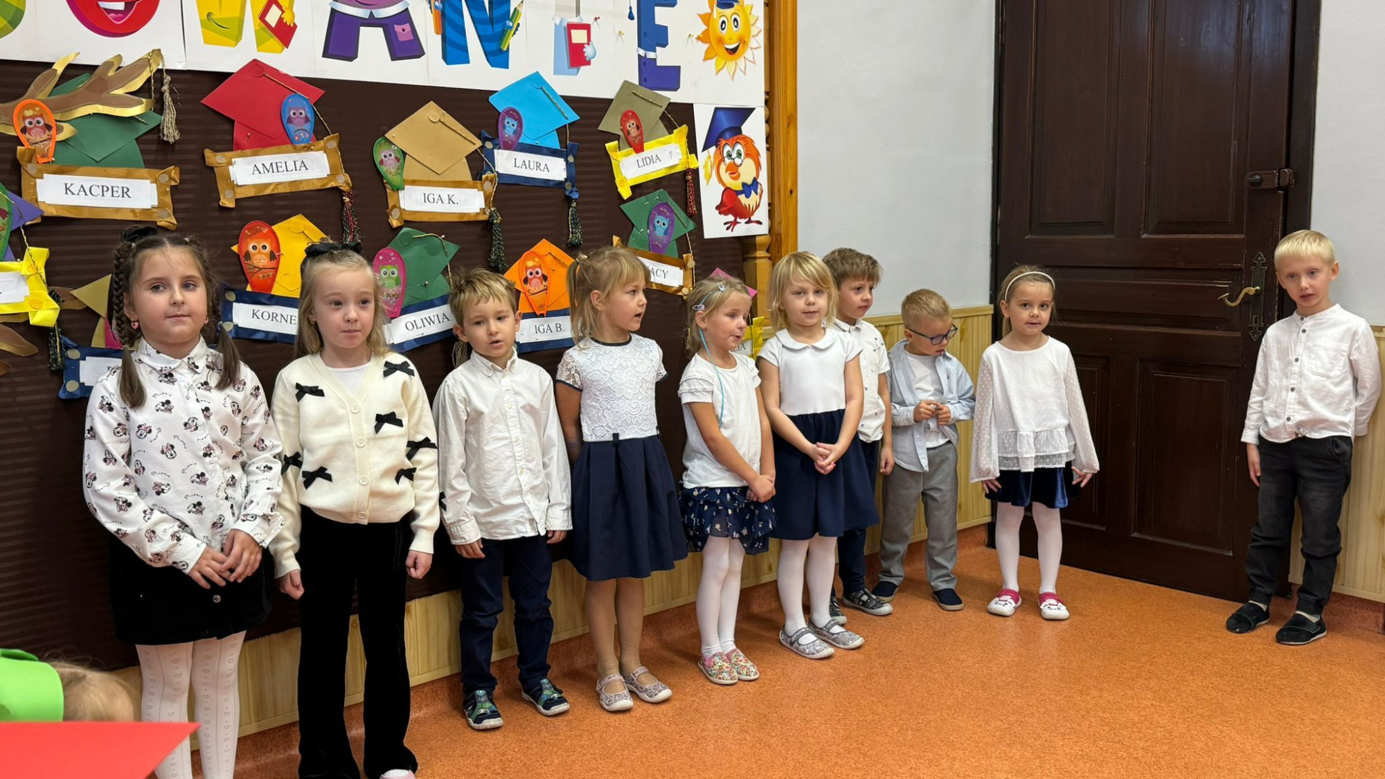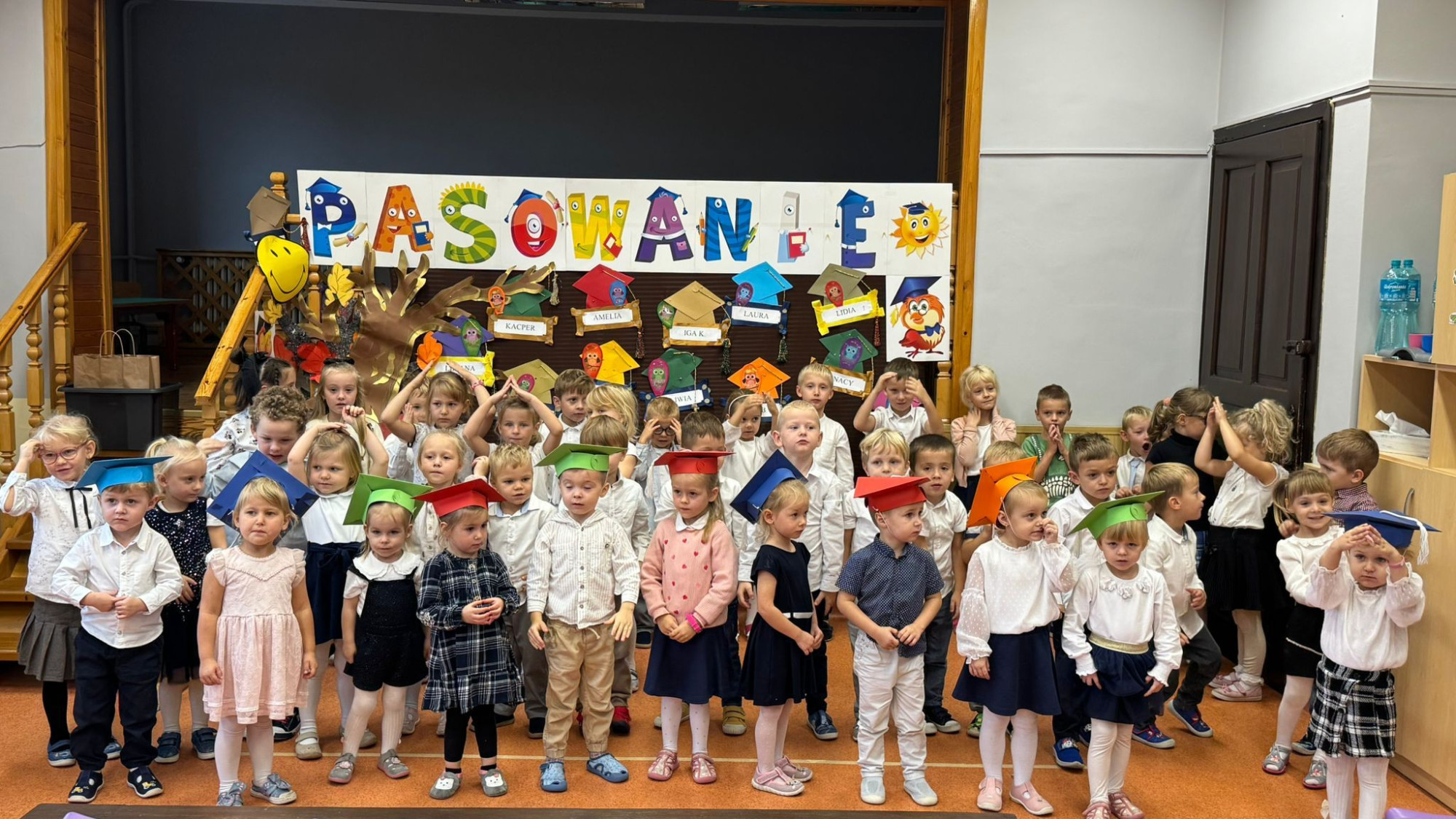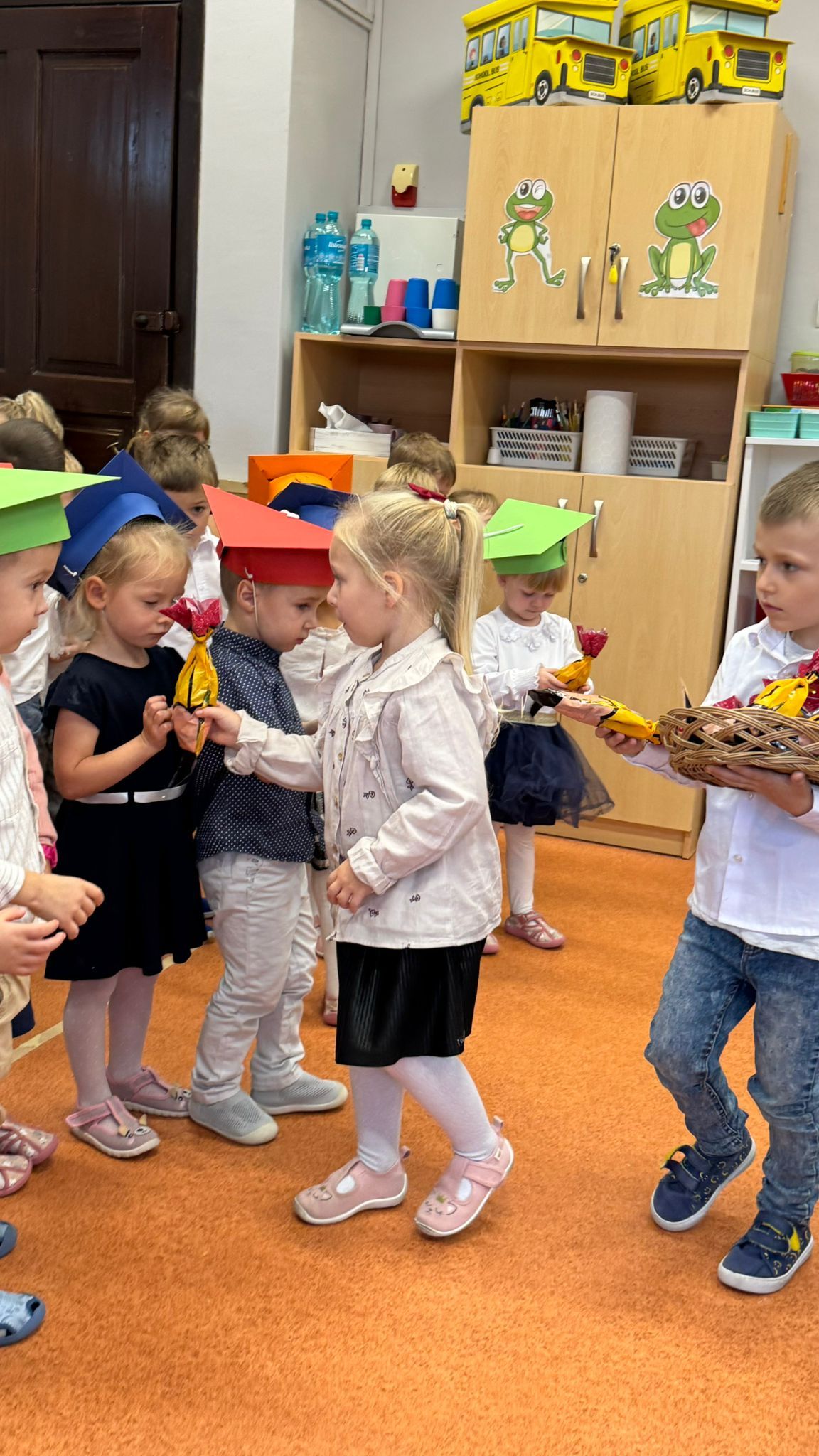 | W naszym przedszkolu 14 października obchodziliśmy dwie ważne uroczystości. „Dzień Edukacji Narodowej”, w którym przedszkolaki dziękowały wszystkim pracownikom za opiekę i wychowanie poprzez występy artystyczne i życzenia oraz „Pasowania na Przedszkolaka”. Uroczystość „Pasowania na Przedszkolaka” rozpoczęła wśród najmłodszych przedszkolaków „Słoneczek” przygodę z przedszkolem. W jej trakcie dzieci zaprezentowały swoje pierwsze zdobyte umiejętności artystyczne: piosenki, wiersze, tańce. Następnie „Słoneczka” złożyły egzamin przed swoimi starszymi koleżankami i kolegami z grup „Żabek” i „Kaczuszek”. Po części artystycznej nastąpił akt pasowania, czyli dotknięcie ramienia każdego przedszkolaka ogromną kredką przez panią dyrektor Krystynę Bezwińską oraz wręczenie drobnych upominków przygotowanych przez Radę Rodziców i przedszkolaków ze starszych oddziałów. Tego dnia padło wiele ciepłych słów oraz życzeń, dzięki czemu dzień dla wszystkich upłynął w miłej i serdecznej atmosferze. |