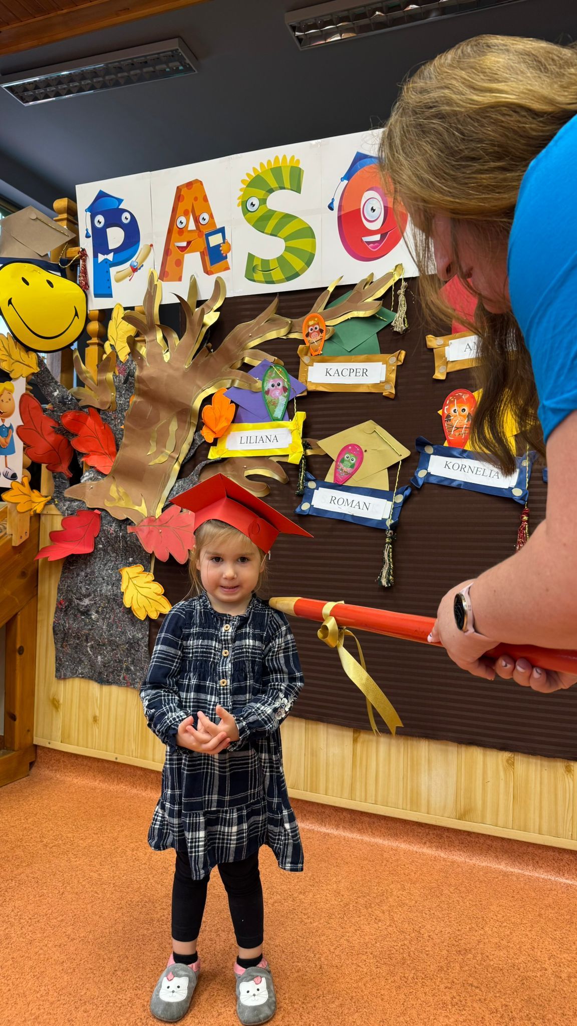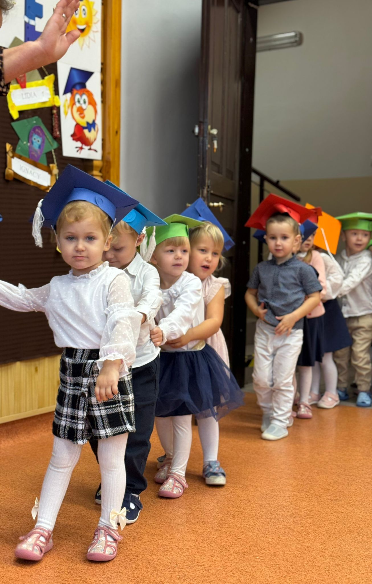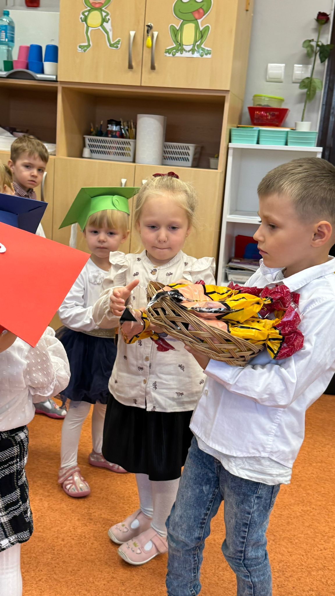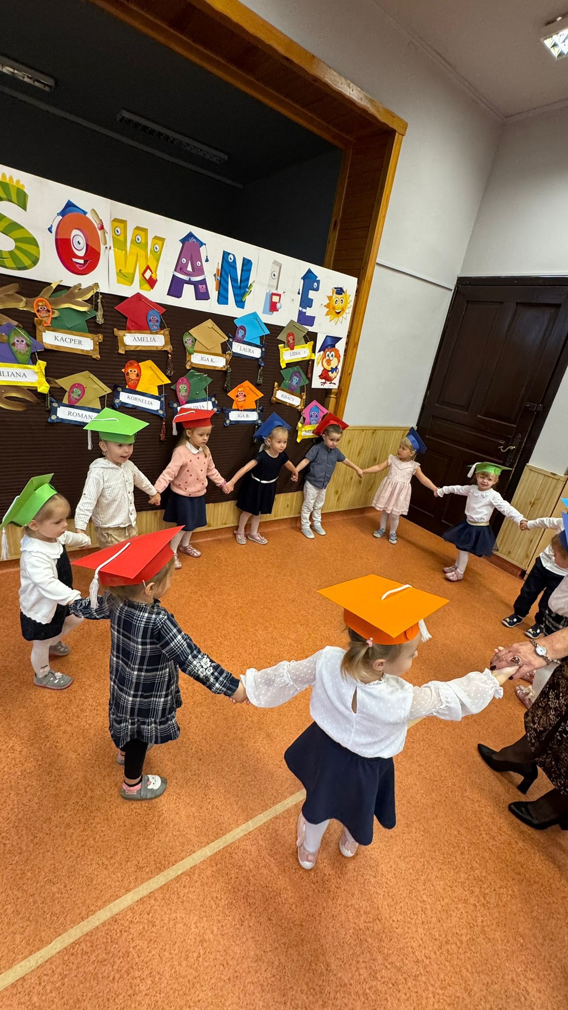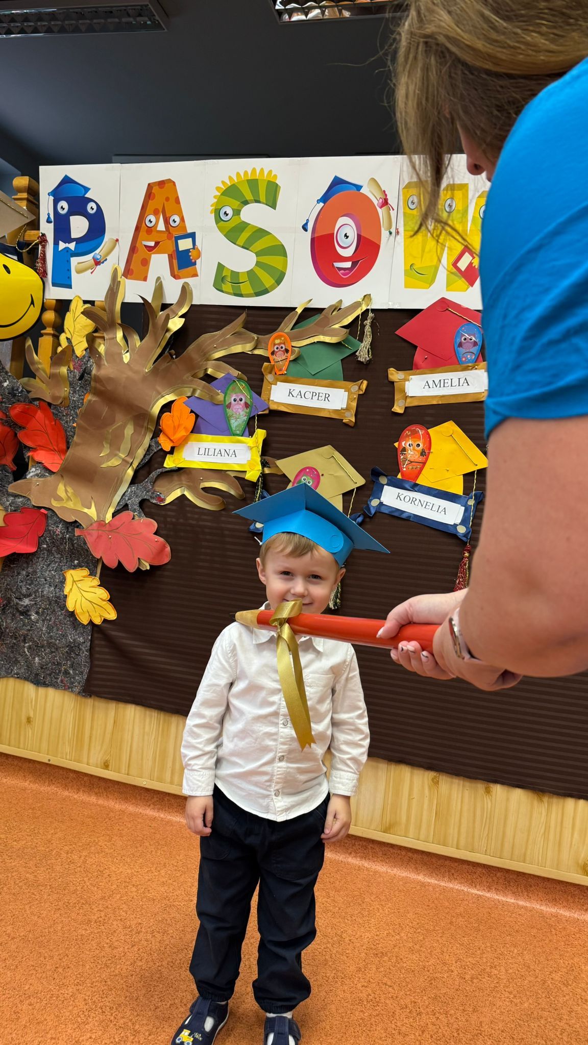 | W naszym przedszkolu 14 października obchodziliśmy dwie ważne uroczystości. „Dzień Edukacji Narodowej”, w którym przedszkolaki dziękowały wszystkim pracownikom za opiekę i wychowanie poprzez występy artystyczne i życzenia oraz „Pasowania na Przedszkolaka”. Uroczystość „Pasowania na Przedszkolaka” rozpoczęła wśród najmłodszych przedszkolaków „Słoneczek” przygodę z przedszkolem. W jej trakcie dzieci zaprezentowały swoje pierwsze zdobyte umiejętności artystyczne: piosenki, wiersze, tańce. Następnie „Słoneczka” złożyły egzamin przed swoimi starszymi koleżankami i kolegami z grup „Żabek” i „Kaczuszek”. Po części artystycznej nastąpił akt pasowania, czyli dotknięcie ramienia każdego przedszkolaka ogromną kredką przez panią dyrektor Krystynę Bezwińską oraz wręczenie drobnych upominków przygotowanych przez Radę Rodziców i przedszkolaków ze starszych oddziałów. Tego dnia padło wiele ciepłych słów oraz życzeń, dzięki czemu dzień dla wszystkich upłynął w miłej i serdecznej atmosferze. |