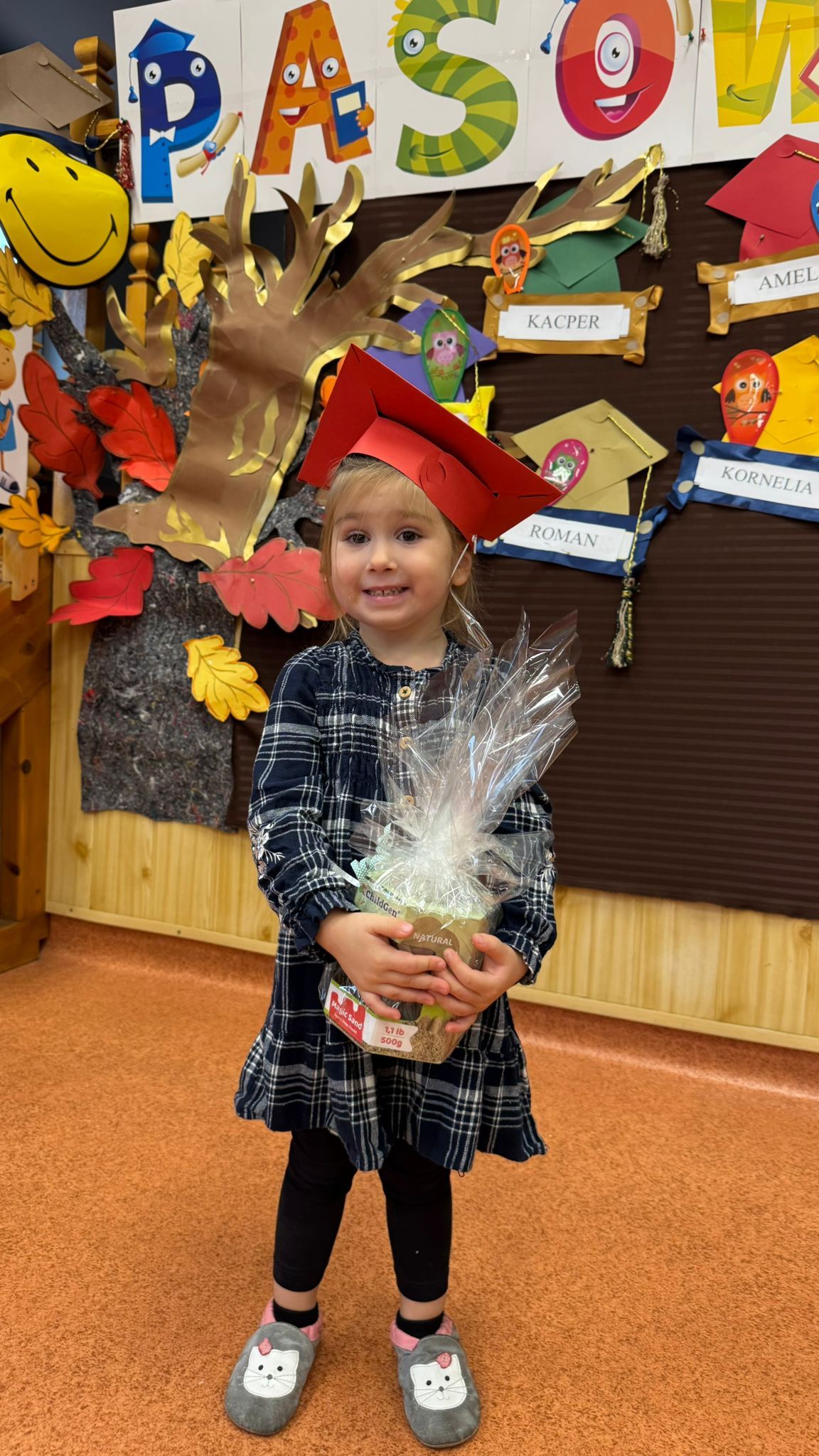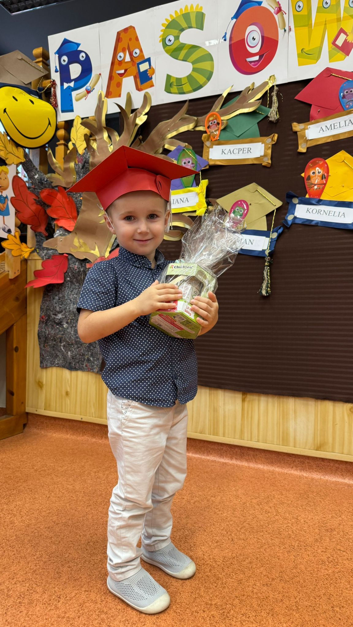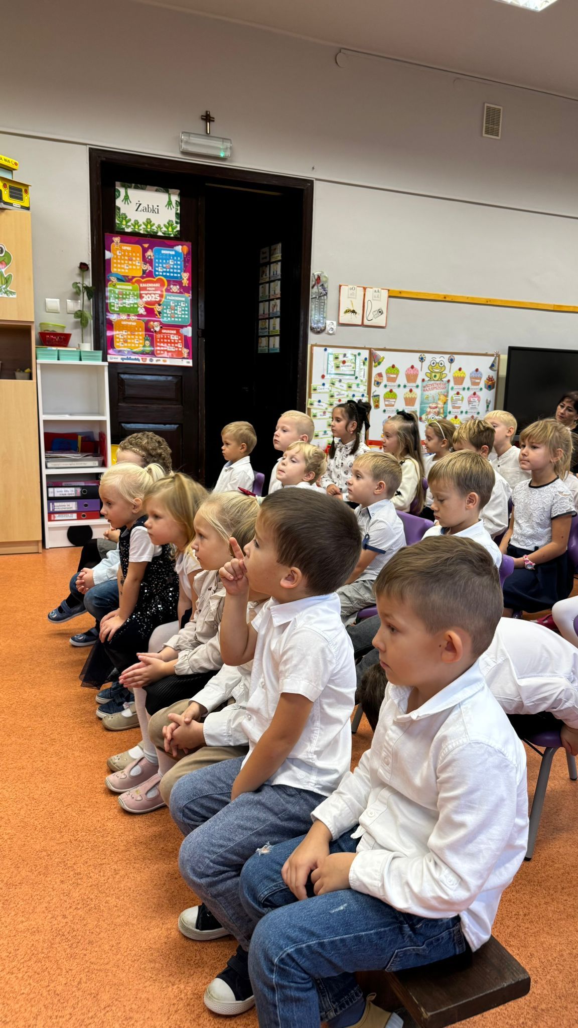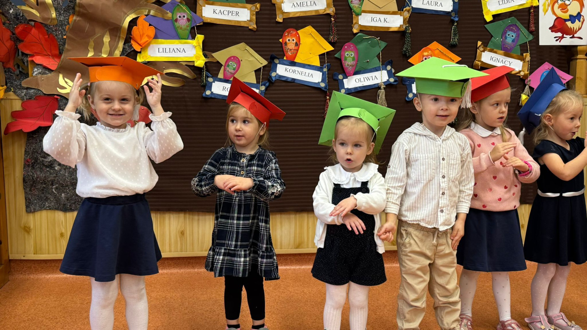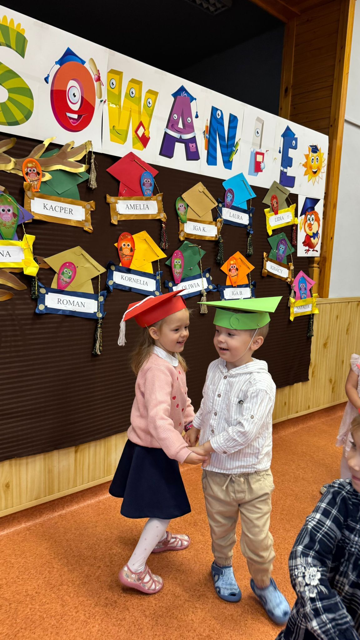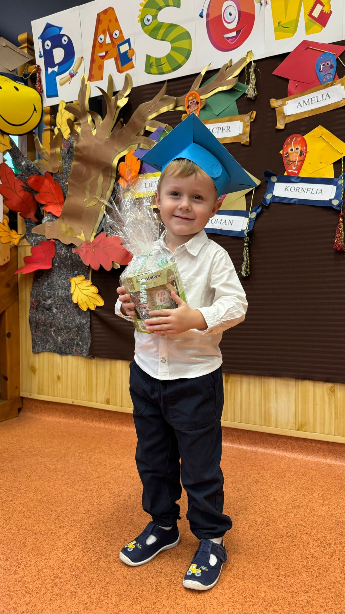 | W naszym przedszkolu 14 października obchodziliśmy dwie ważne uroczystości. „Dzień Edukacji Narodowej”, w którym przedszkolaki dziękowały wszystkim pracownikom za opiekę i wychowanie poprzez występy artystyczne i życzenia oraz „Pasowania na Przedszkolaka”. Uroczystość „Pasowania na Przedszkolaka” rozpoczęła wśród najmłodszych przedszkolaków „Słoneczek” przygodę z przedszkolem. W jej trakcie dzieci zaprezentowały swoje pierwsze zdobyte umiejętności artystyczne: piosenki, wiersze, tańce. Następnie „Słoneczka” złożyły egzamin przed swoimi starszymi koleżankami i kolegami z grup „Żabek” i „Kaczuszek”. Po części artystycznej nastąpił akt pasowania, czyli dotknięcie ramienia każdego przedszkolaka ogromną kredką przez panią dyrektor Krystynę Bezwińską oraz wręczenie drobnych upominków przygotowanych przez Radę Rodziców i przedszkolaków ze starszych oddziałów. Tego dnia padło wiele ciepłych słów oraz życzeń, dzięki czemu dzień dla wszystkich upłynął w miłej i serdecznej atmosferze. |