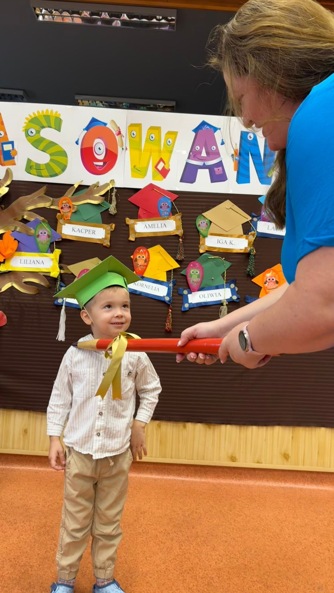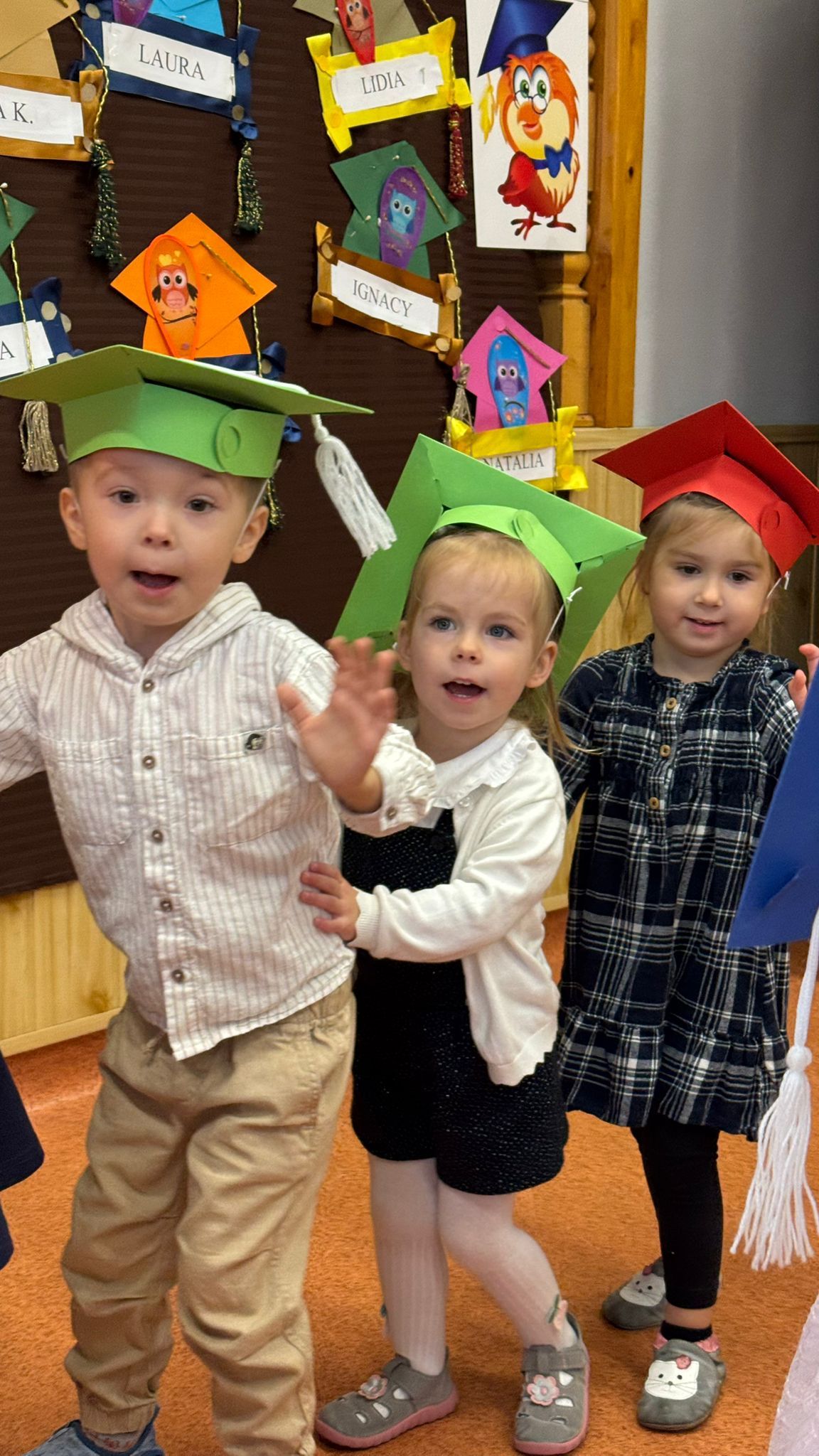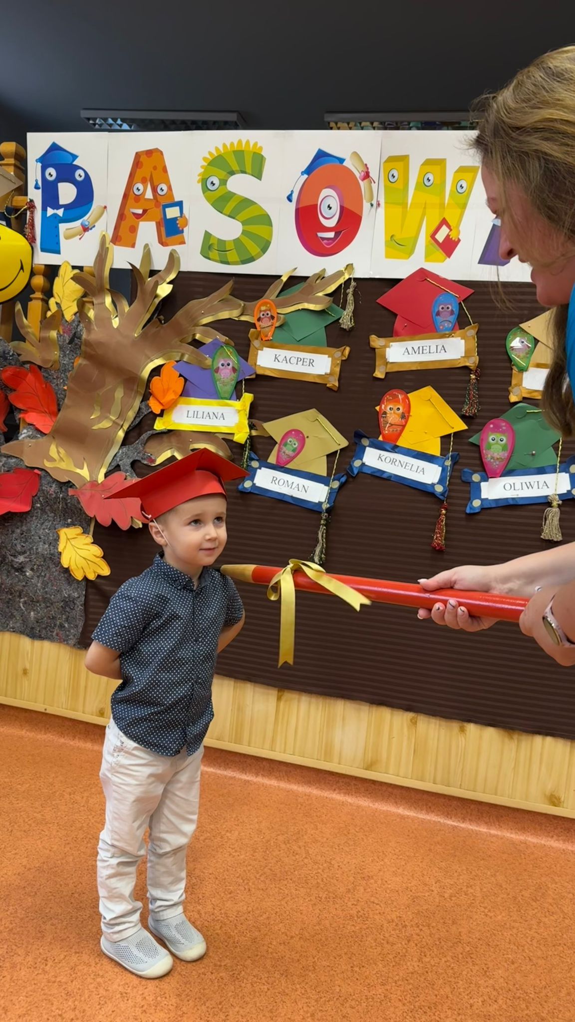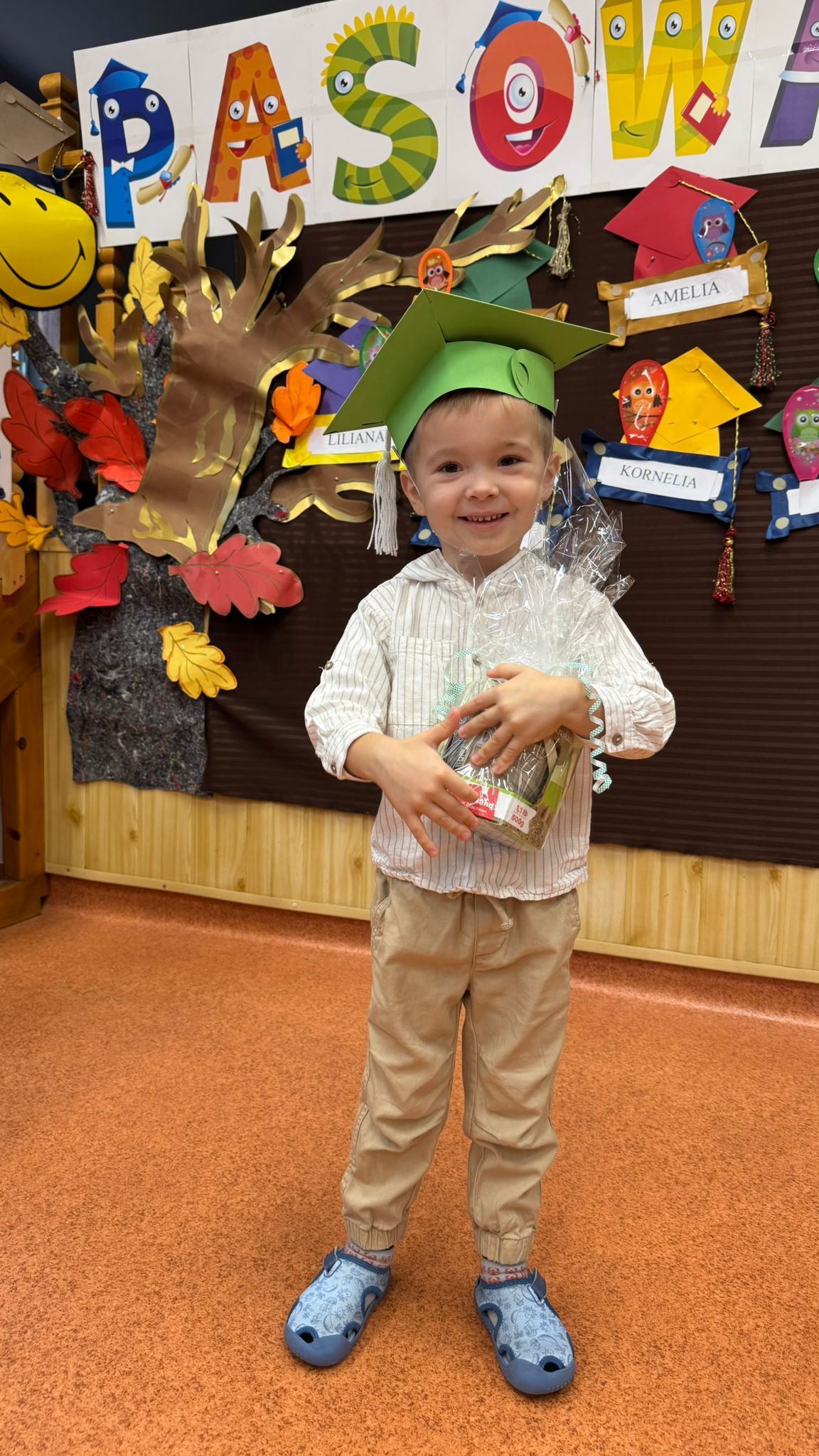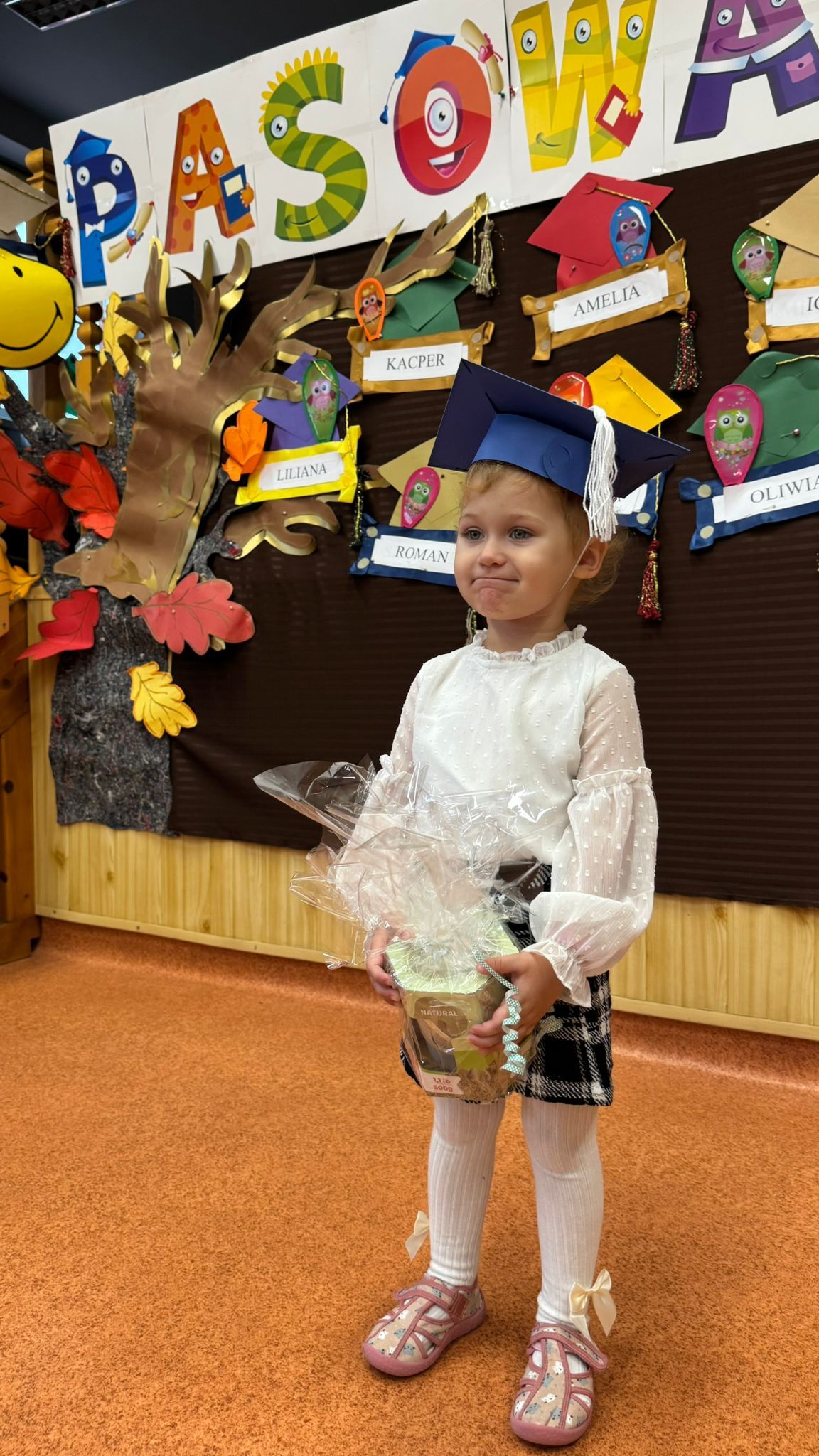 | W naszym przedszkolu 14 października obchodziliśmy dwie ważne uroczystości. „Dzień Edukacji Narodowej”, w którym przedszkolaki dziękowały wszystkim pracownikom za opiekę i wychowanie poprzez występy artystyczne i życzenia oraz „Pasowania na Przedszkolaka”. Uroczystość „Pasowania na Przedszkolaka” rozpoczęła wśród najmłodszych przedszkolaków „Słoneczek” przygodę z przedszkolem. W jej trakcie dzieci zaprezentowały swoje pierwsze zdobyte umiejętności artystyczne: piosenki, wiersze, tańce. Następnie „Słoneczka” złożyły egzamin przed swoimi starszymi koleżankami i kolegami z grup „Żabek” i „Kaczuszek”. Po części artystycznej nastąpił akt pasowania, czyli dotknięcie ramienia każdego przedszkolaka ogromną kredką przez panią dyrektor Krystynę Bezwińską oraz wręczenie drobnych upominków przygotowanych przez Radę Rodziców i przedszkolaków ze starszych oddziałów. Tego dnia padło wiele ciepłych słów oraz życzeń, dzięki czemu dzień dla wszystkich upłynął w miłej i serdecznej atmosferze. |