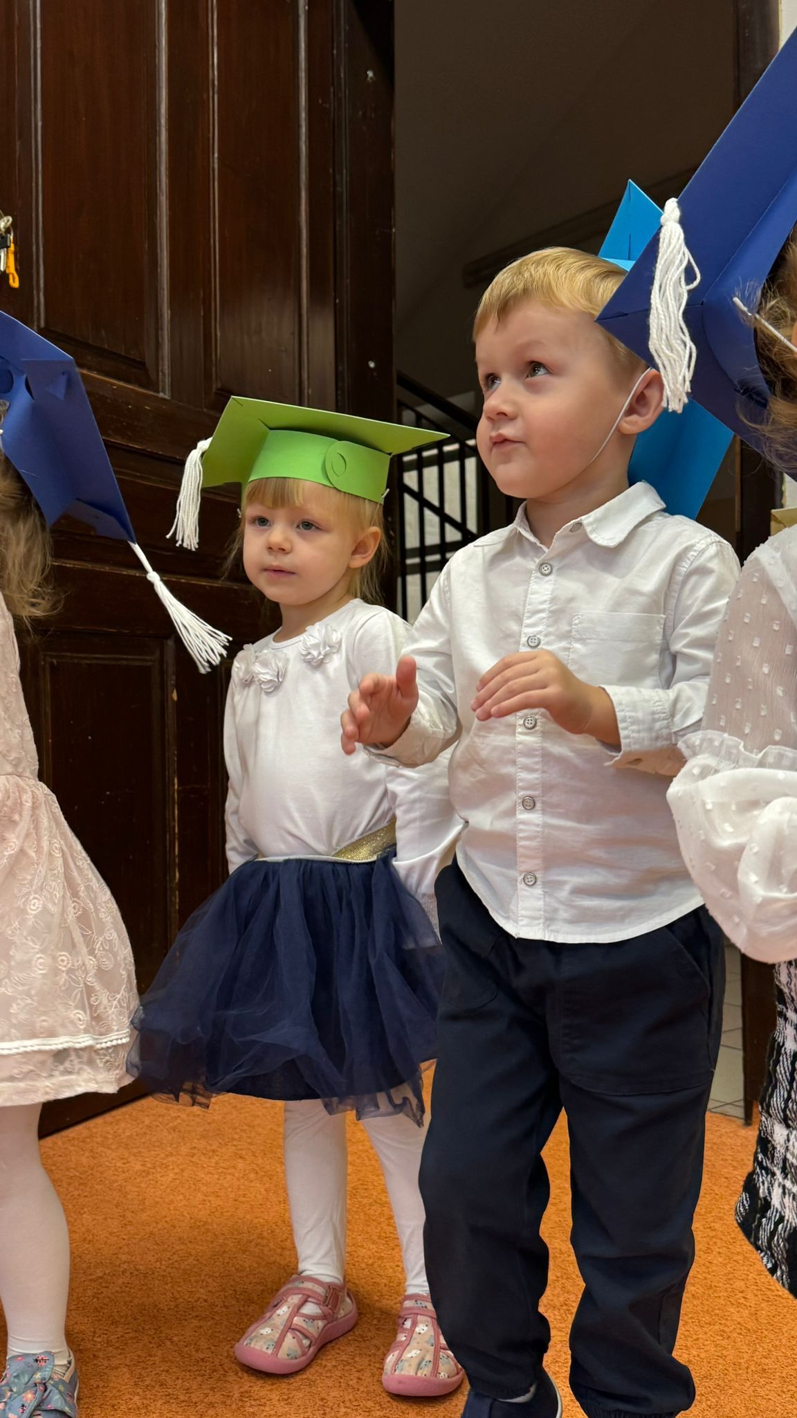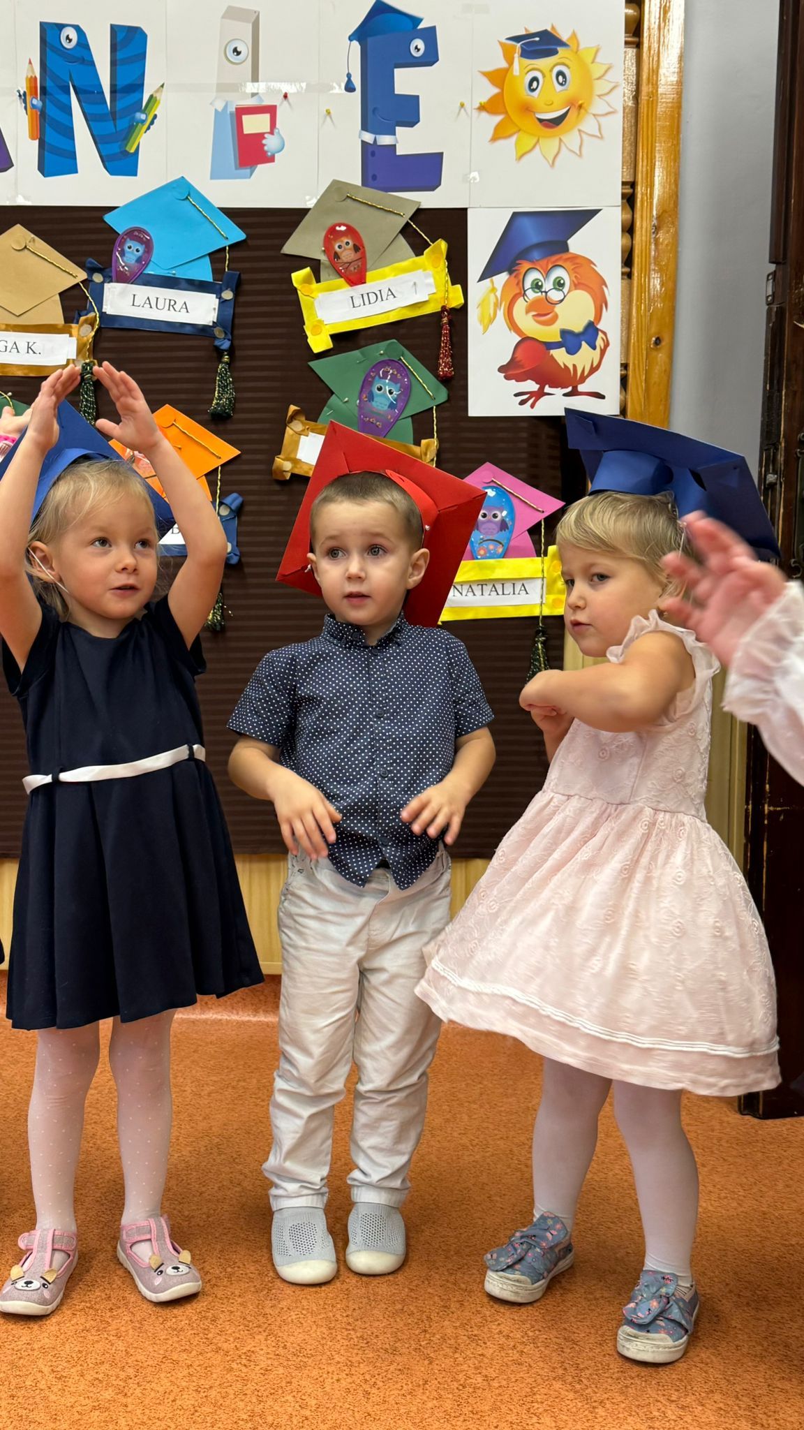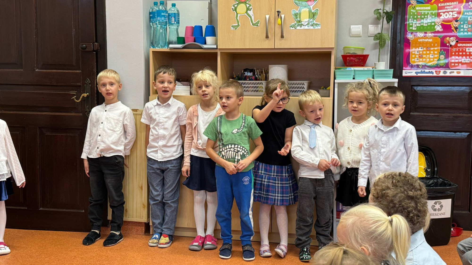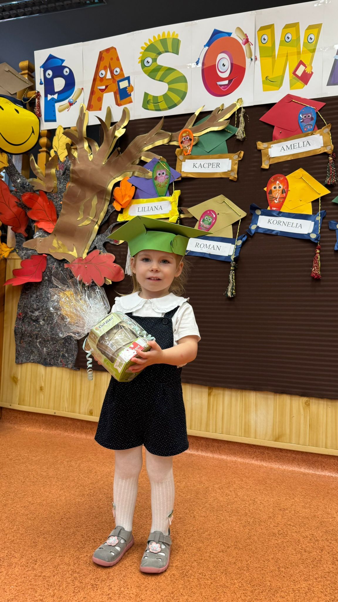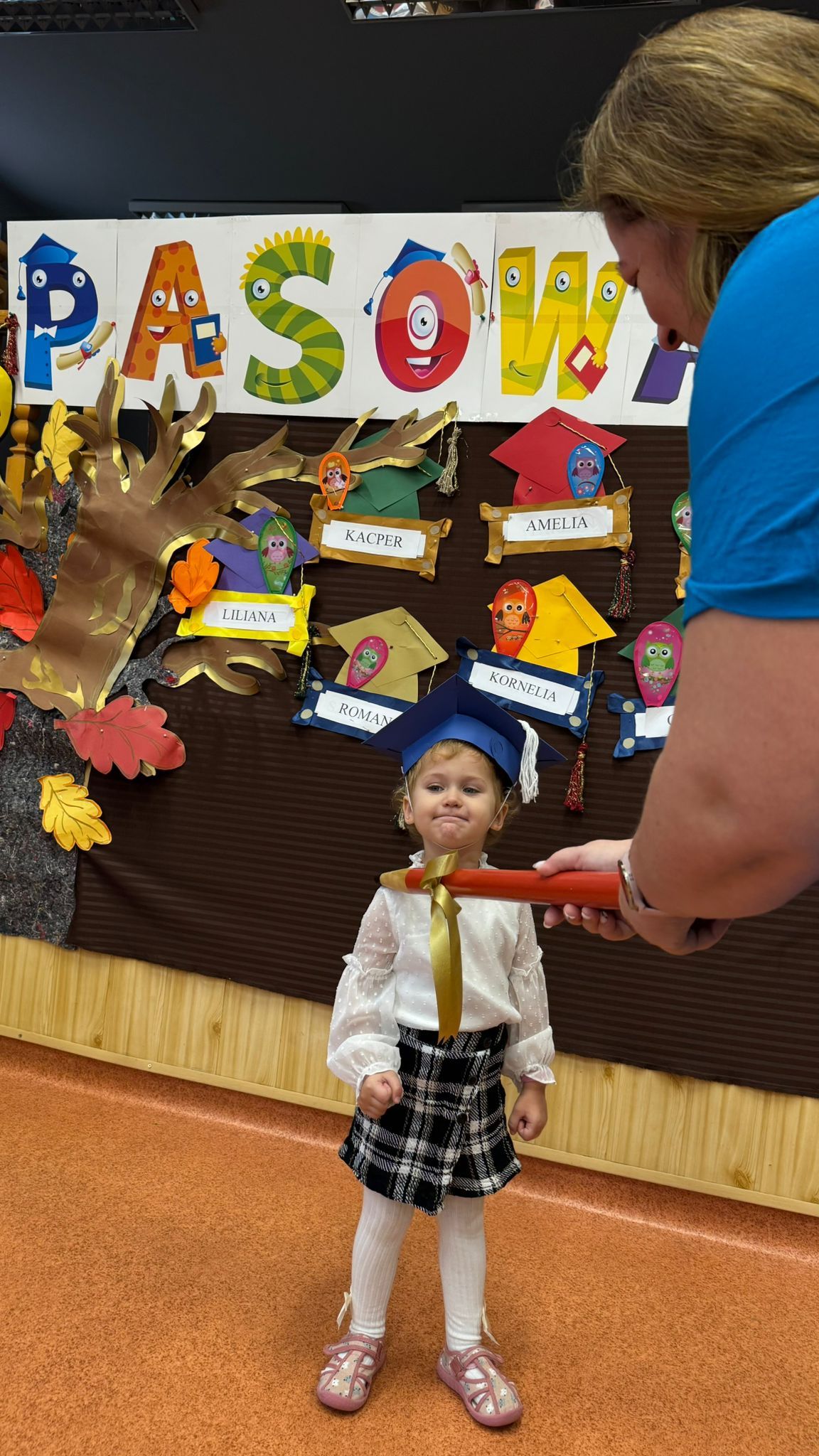 | W naszym przedszkolu 14 października obchodziliśmy dwie ważne uroczystości. „Dzień Edukacji Narodowej”, w którym przedszkolaki dziękowały wszystkim pracownikom za opiekę i wychowanie poprzez występy artystyczne i życzenia oraz „Pasowania na Przedszkolaka”. Uroczystość „Pasowania na Przedszkolaka” rozpoczęła wśród najmłodszych przedszkolaków „Słoneczek” przygodę z przedszkolem. W jej trakcie dzieci zaprezentowały swoje pierwsze zdobyte umiejętności artystyczne: piosenki, wiersze, tańce. Następnie „Słoneczka” złożyły egzamin przed swoimi starszymi koleżankami i kolegami z grup „Żabek” i „Kaczuszek”. Po części artystycznej nastąpił akt pasowania, czyli dotknięcie ramienia każdego przedszkolaka ogromną kredką przez panią dyrektor Krystynę Bezwińską oraz wręczenie drobnych upominków przygotowanych przez Radę Rodziców i przedszkolaków ze starszych oddziałów. Tego dnia padło wiele ciepłych słów oraz życzeń, dzięki czemu dzień dla wszystkich upłynął w miłej i serdecznej atmosferze. |