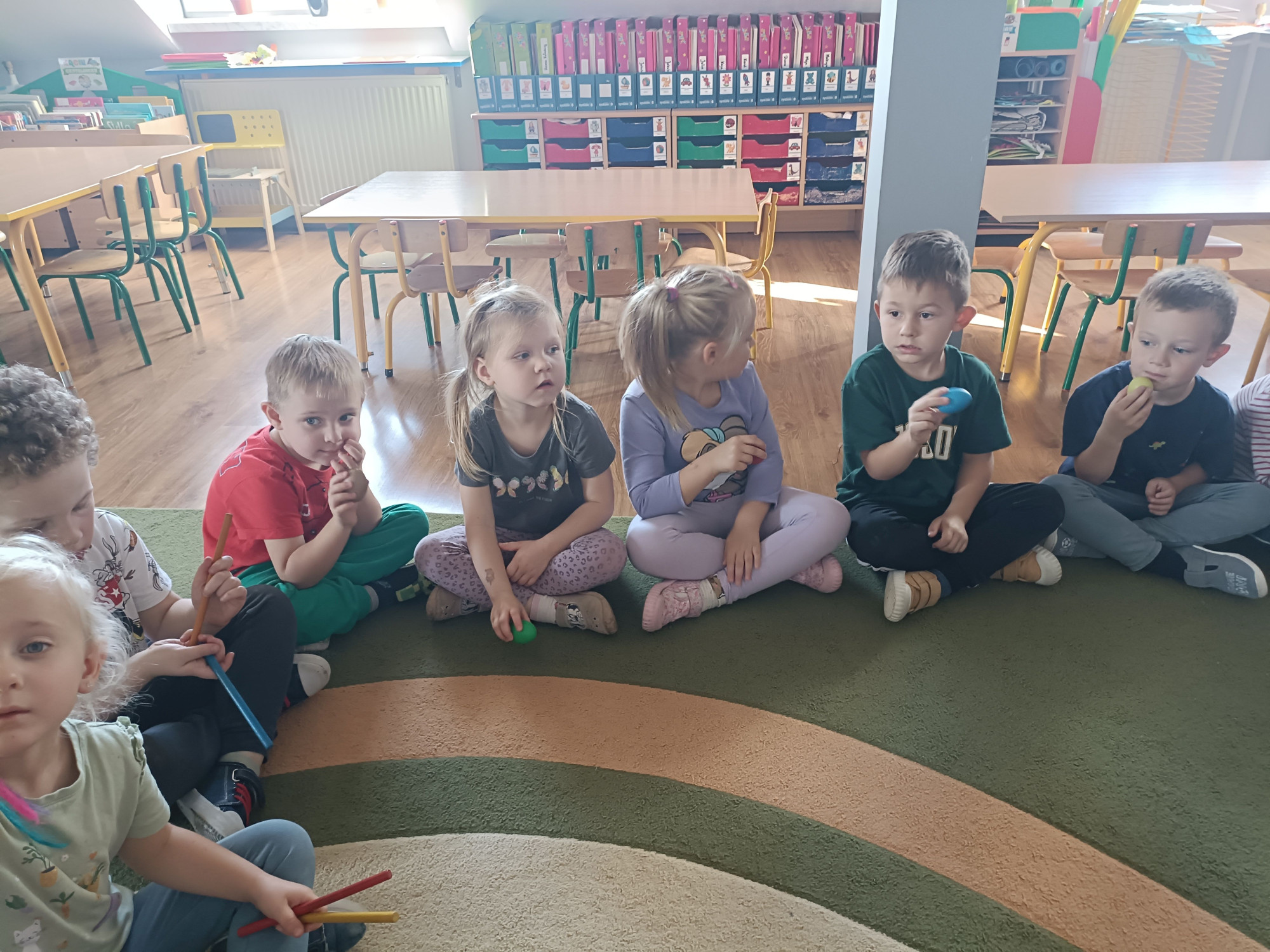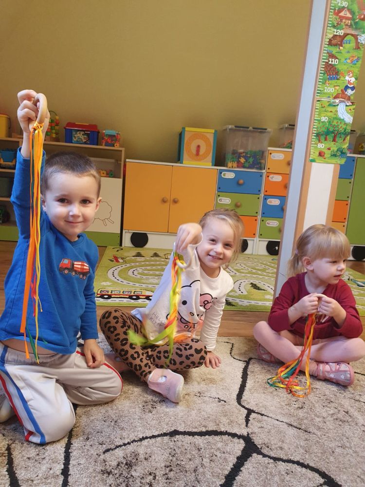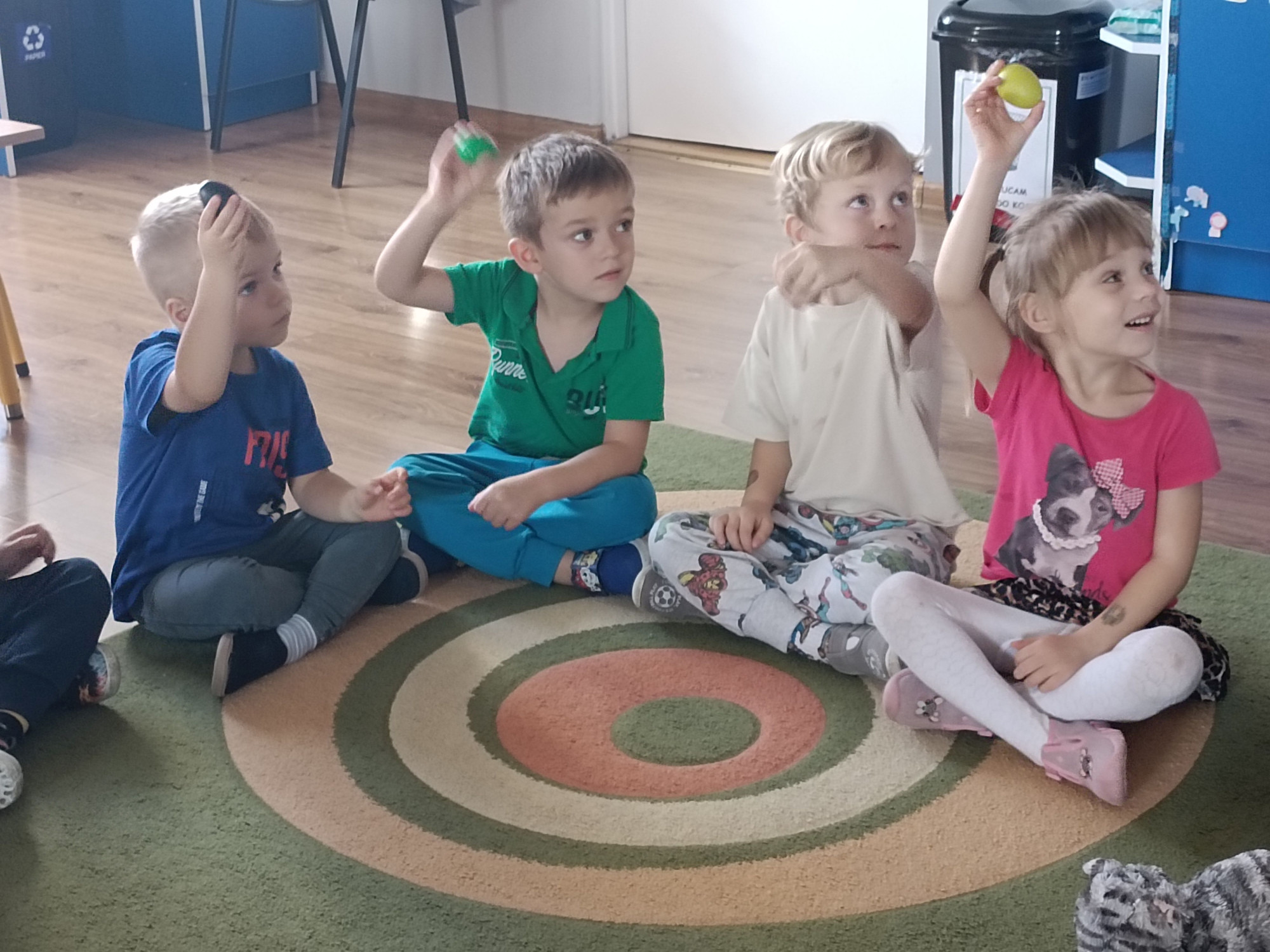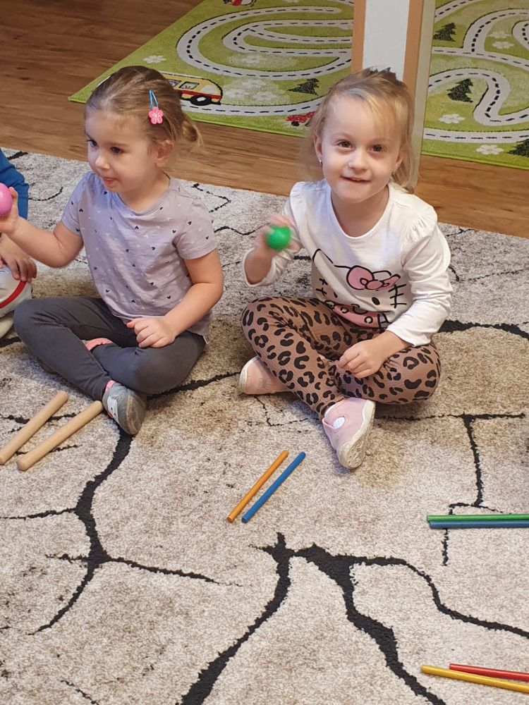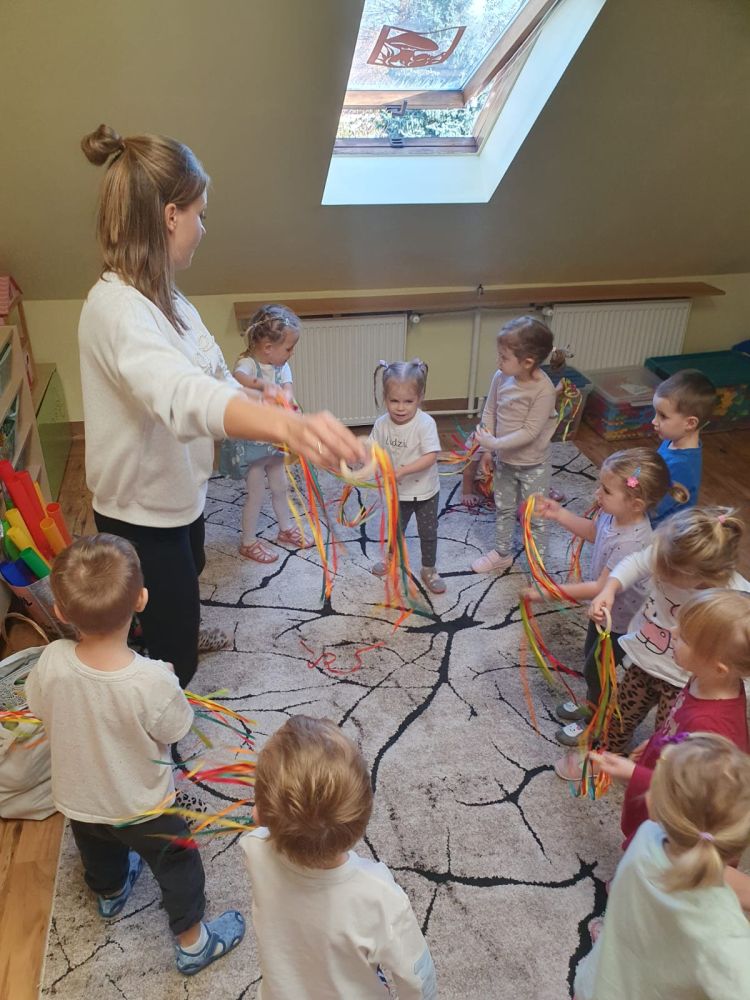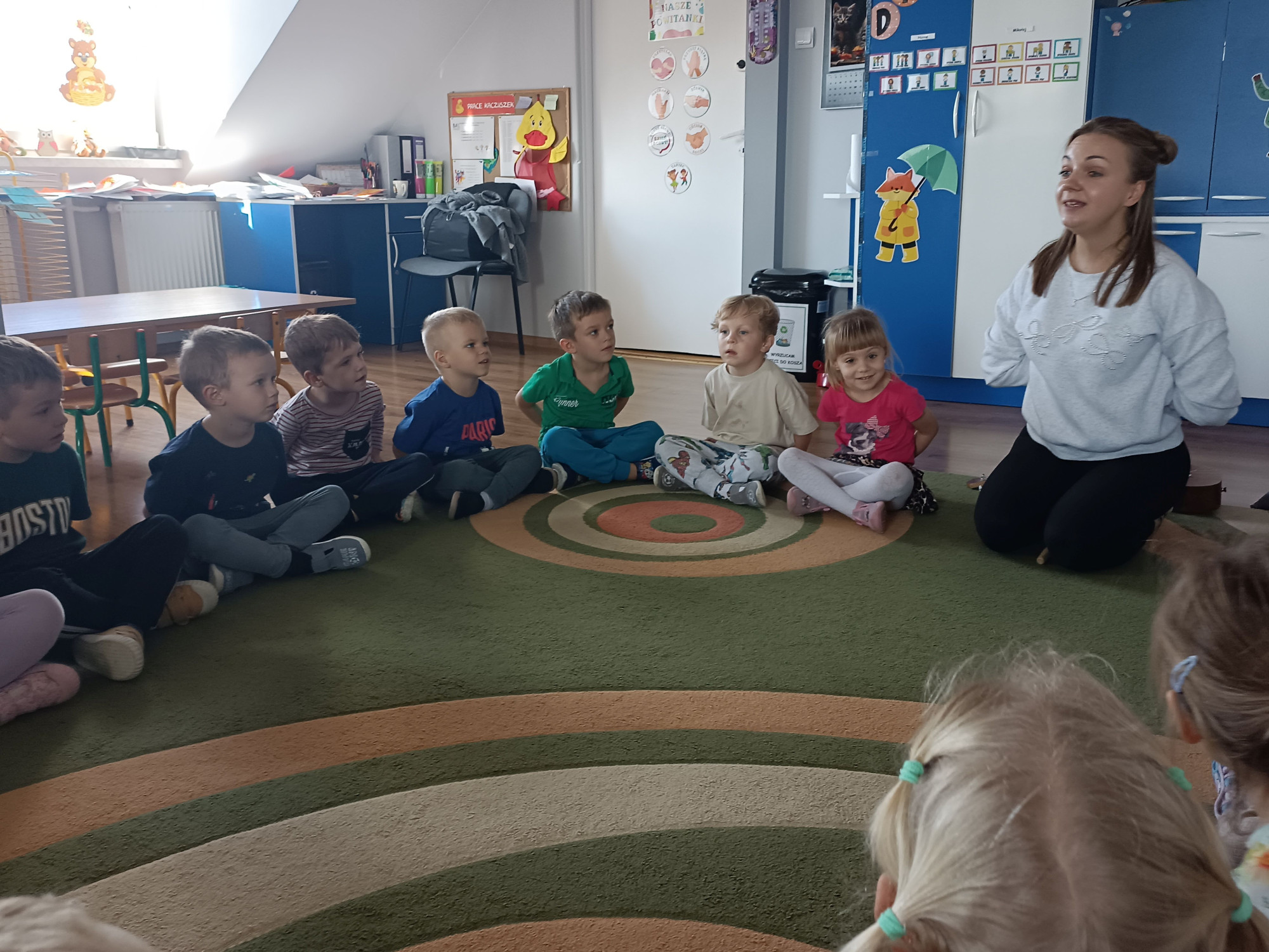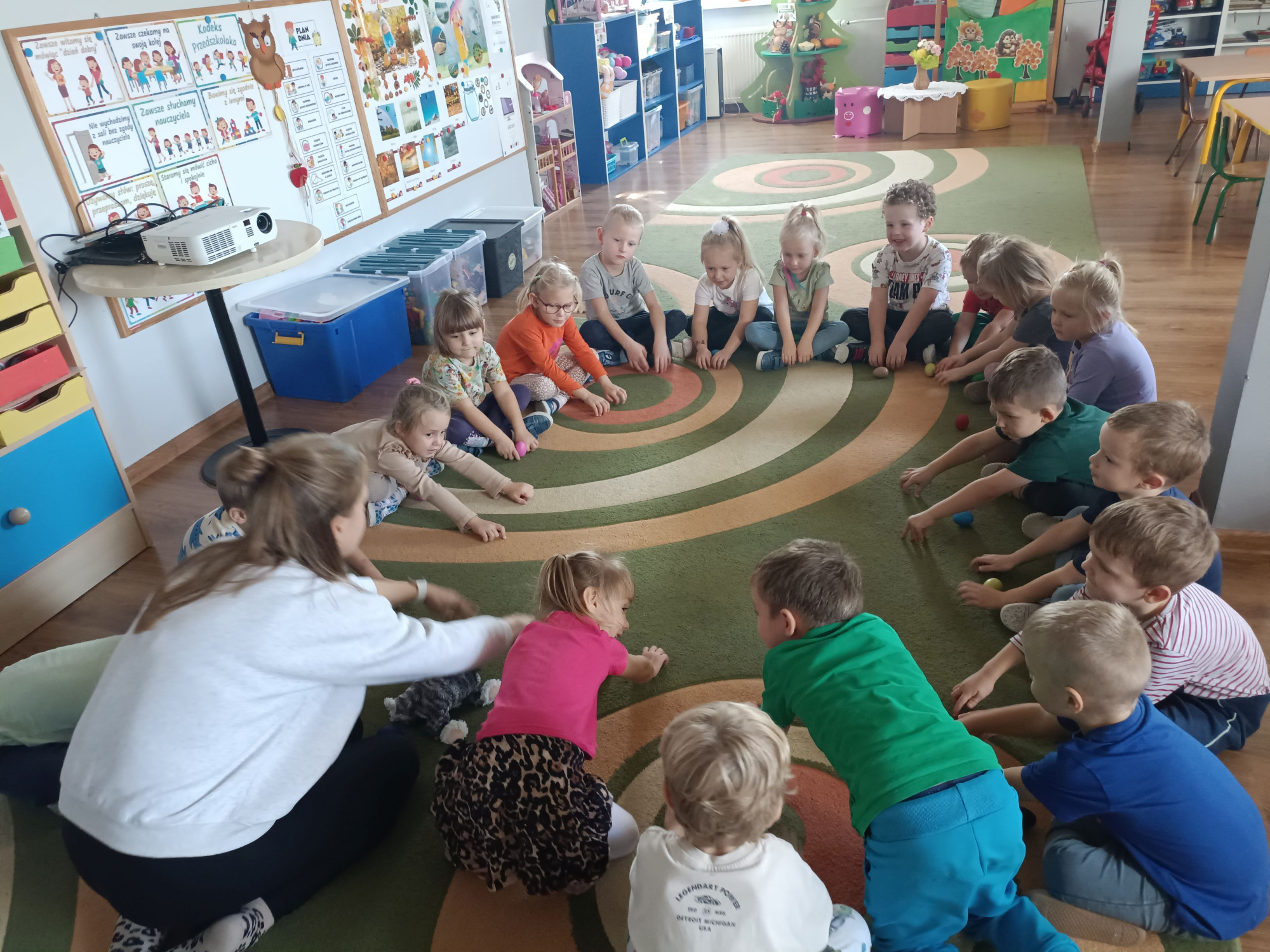 | Oddziały przedszkolne „Słoneczek”, „Kaczuszek” oraz „Żabek” 23 października uczestniczyły w warsztatach muzycznych prowadzonych przez rytmiczkę p. Agnieszkę. Warsztaty miały na celu rozwijanie wrażliwości i słuchu muzycznego dzieci. Poznały nowy instrument strunowy - okulele, na którym grała prowadząca. Brały udział w zabawach rytmiczno-muzycznych z użyciem kubeczków, marakasów. Grały na bębenku i klawesach. |