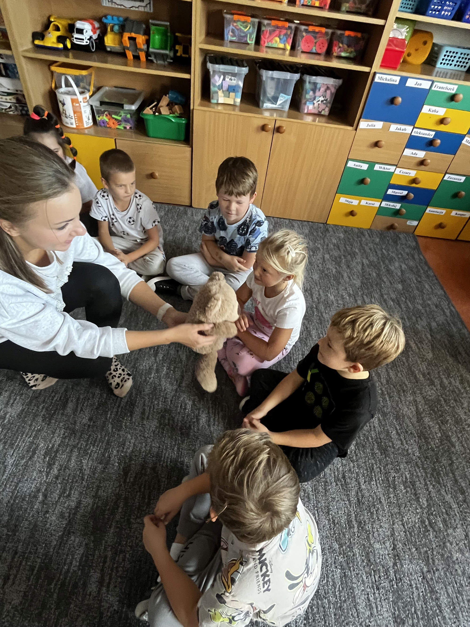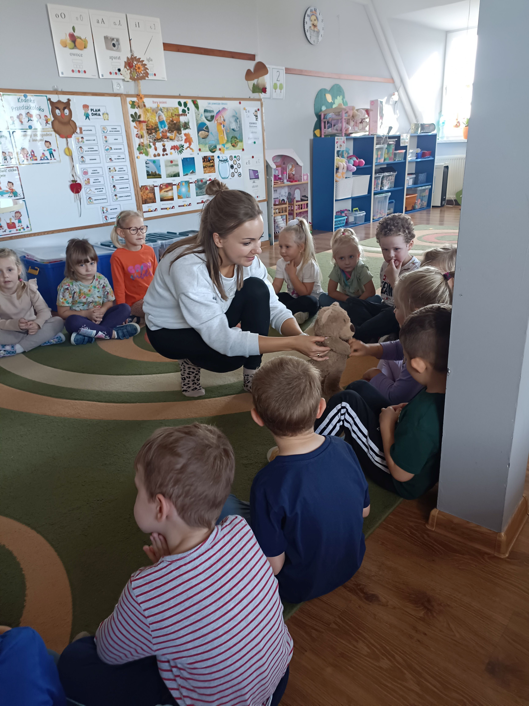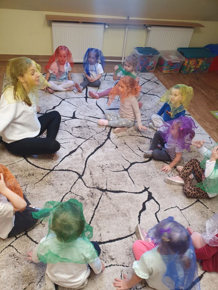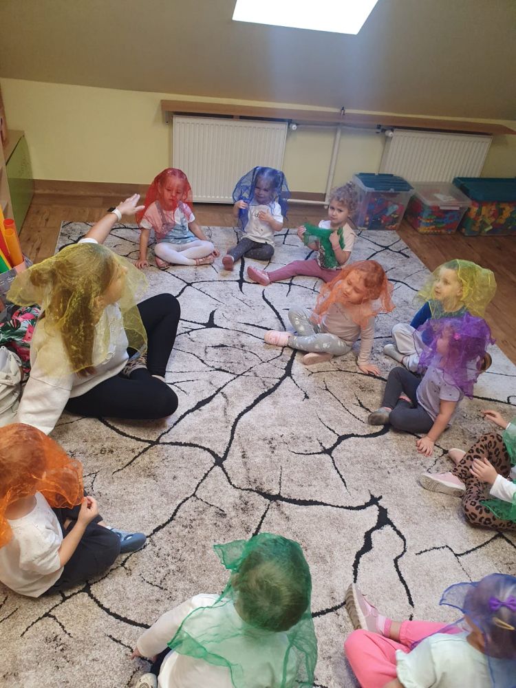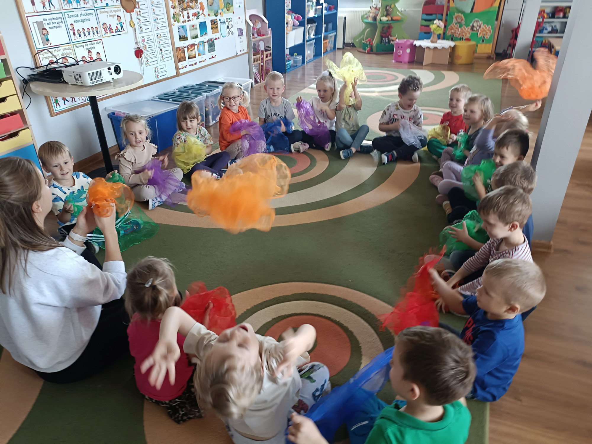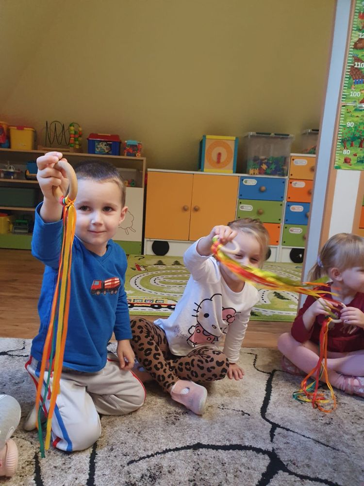 | Oddziały przedszkolne „Słoneczek”, „Kaczuszek” oraz „Żabek” 23 października uczestniczyły w warsztatach muzycznych prowadzonych przez rytmiczkę p. Agnieszkę. Warsztaty miały na celu rozwijanie wrażliwości i słuchu muzycznego dzieci. Poznały nowy instrument strunowy - okulele, na którym grała prowadząca. Brały udział w zabawach rytmiczno-muzycznych z użyciem kubeczków, marakasów. Grały na bębenku i klawesach. |