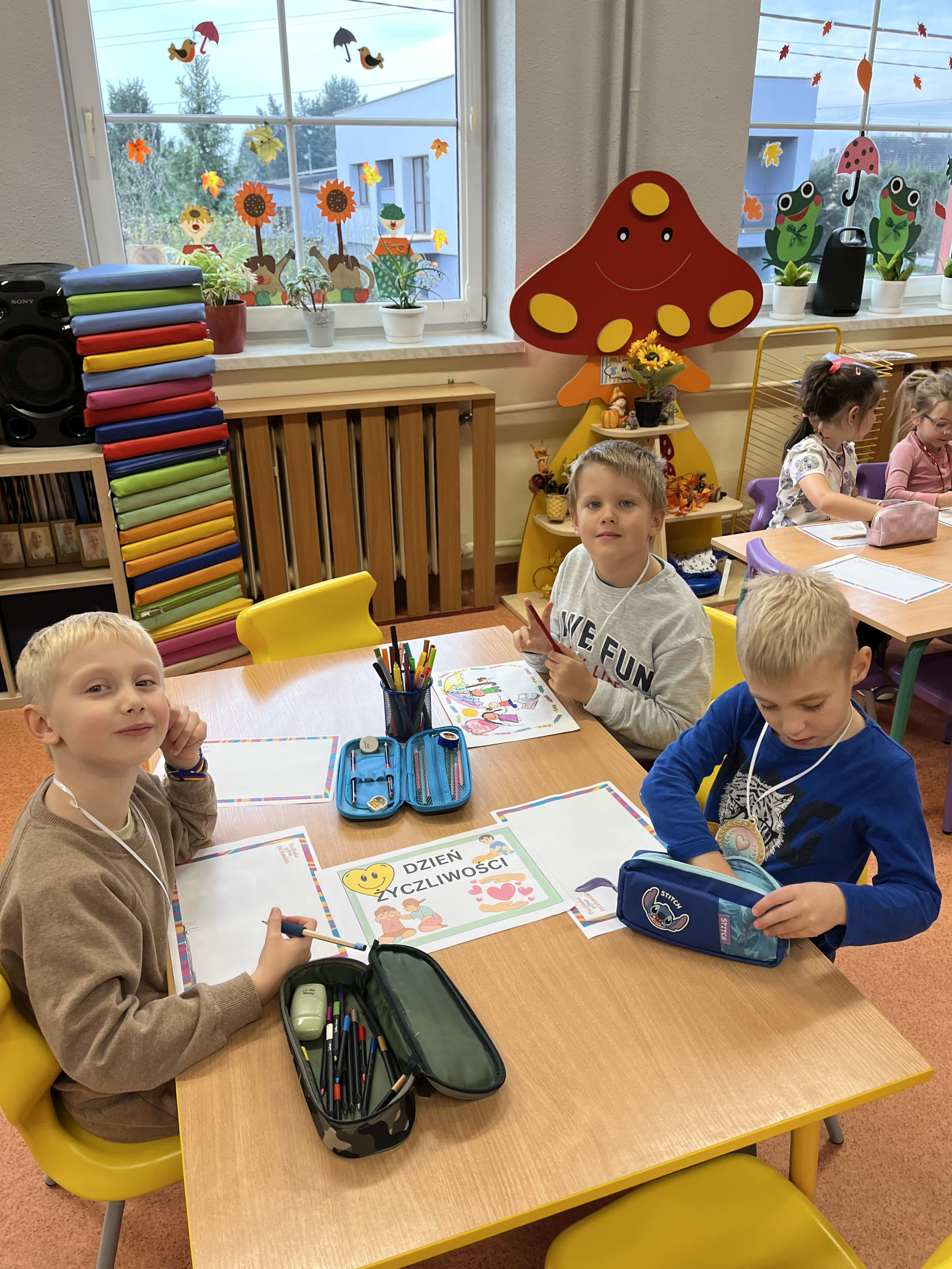 Dzień Życzliwości obchodzimy 21 listopada jako Światowy DzieńŻyczliwości i pozdrowień, święto promowane przez organizacje na całym świecie jako apel o pokój, dobre uczynki, pozytywne emocje i wzajemny szacunek, przypominające, że drobne gesty uprzejmości, jak uśmiech czy miłe słowo, mogą odmienić czyjś dzień. Dzieci z oddziału Żabek również uczciły ten dzień. |