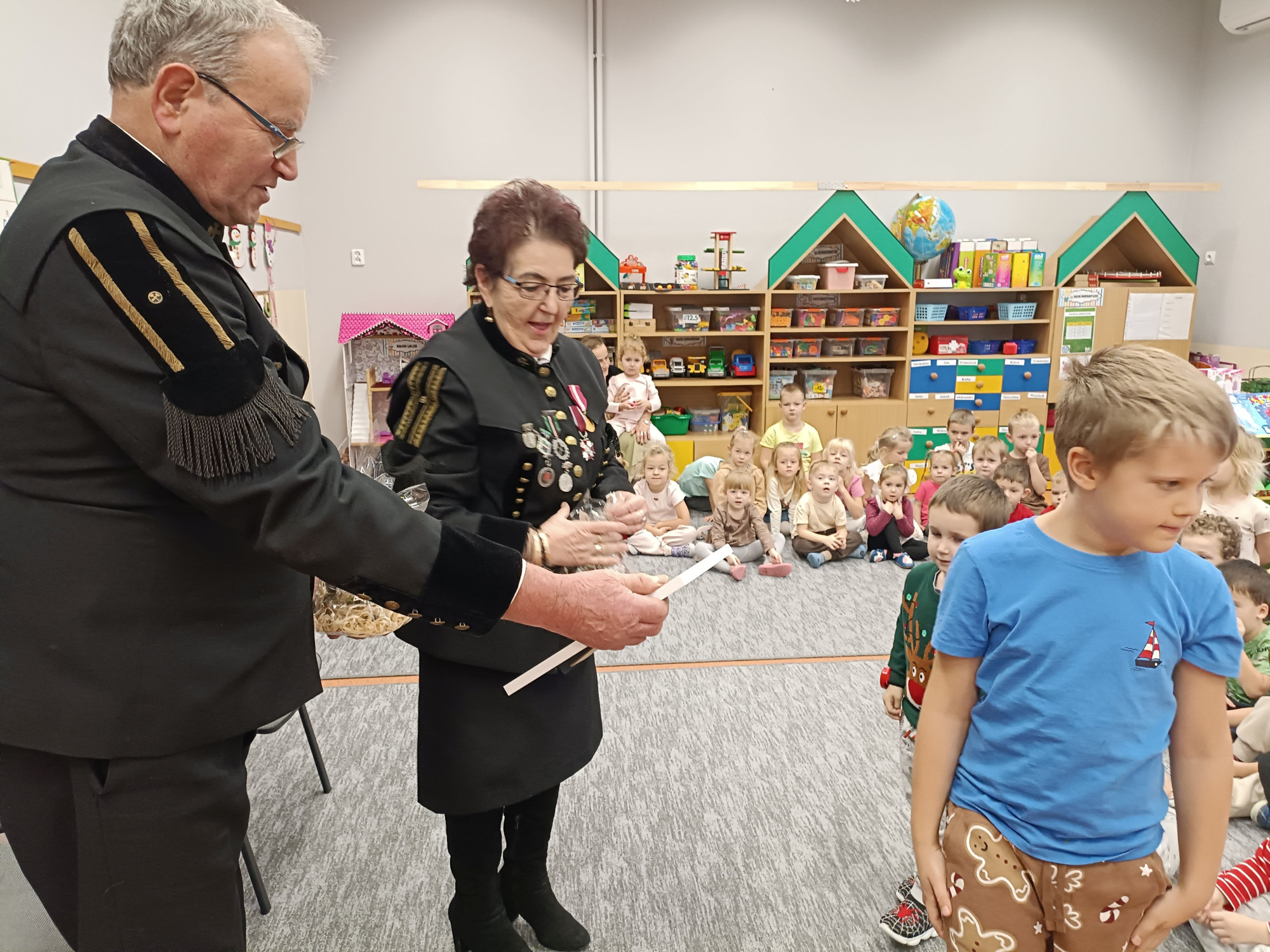 Do naszego przedszkola w dniu 5 grudnia zawitali niezykli gości, Górnicy z Bractwa św. Barbary w Rajsku, aby przybliżyć dzieci wiedzę na temat ich pracy.