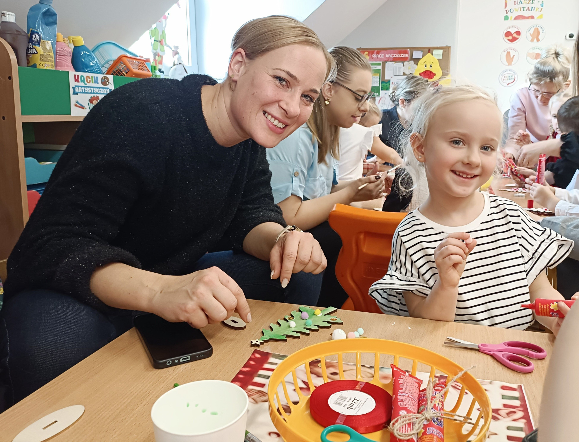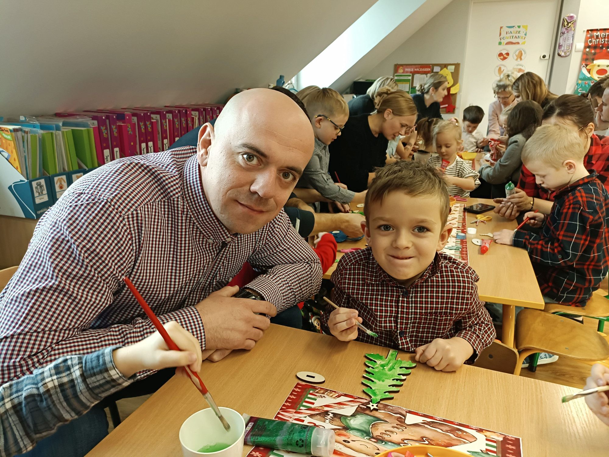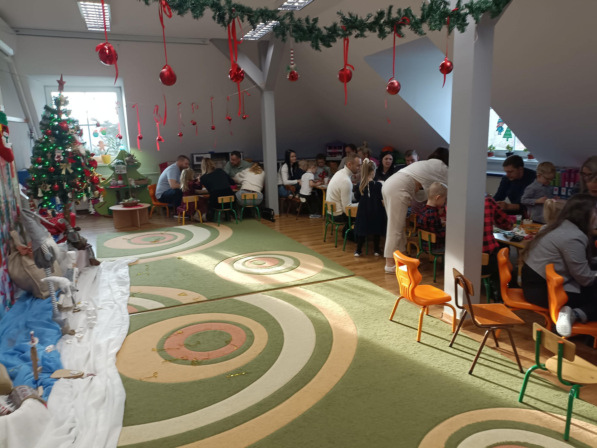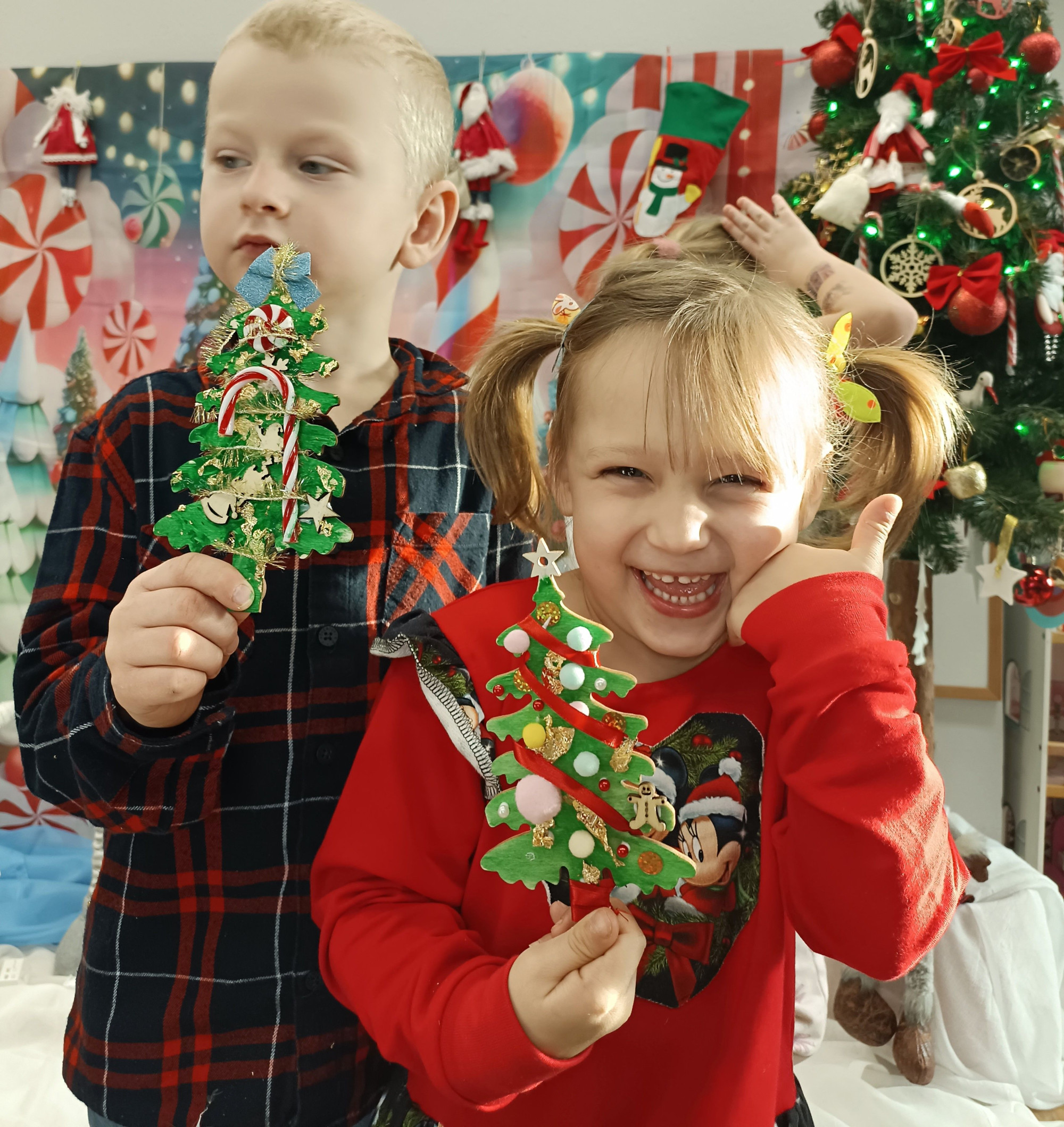 W dniu 16 grudnia dzieci wraz z rodzicami z oddziału Kaczuszek podczas świątecznych warsztatów wykonali piękne choineczki, które zostały ozdobione według pomysłu dzieci pod czujnym okiem i kreatywnością rodziców.