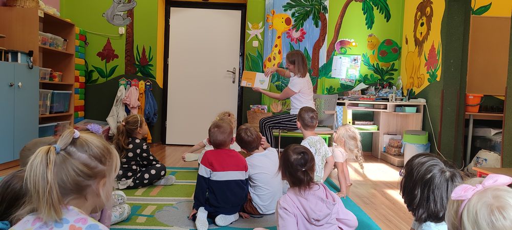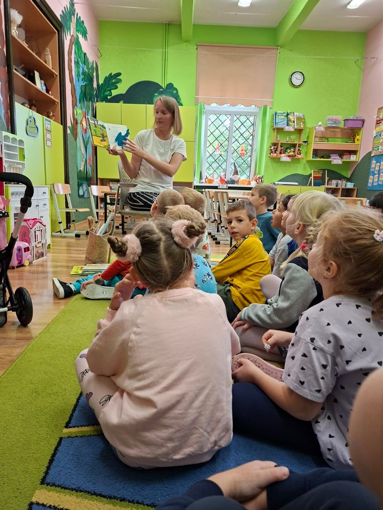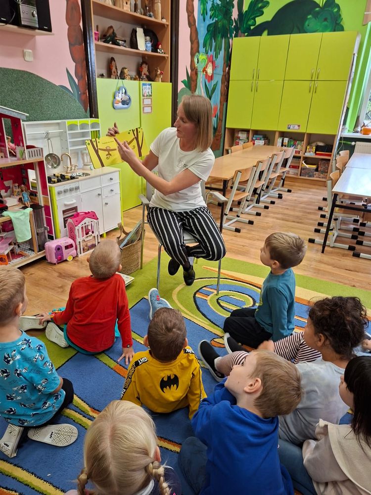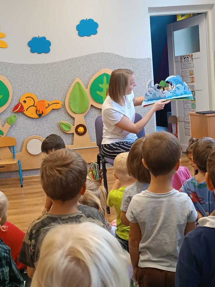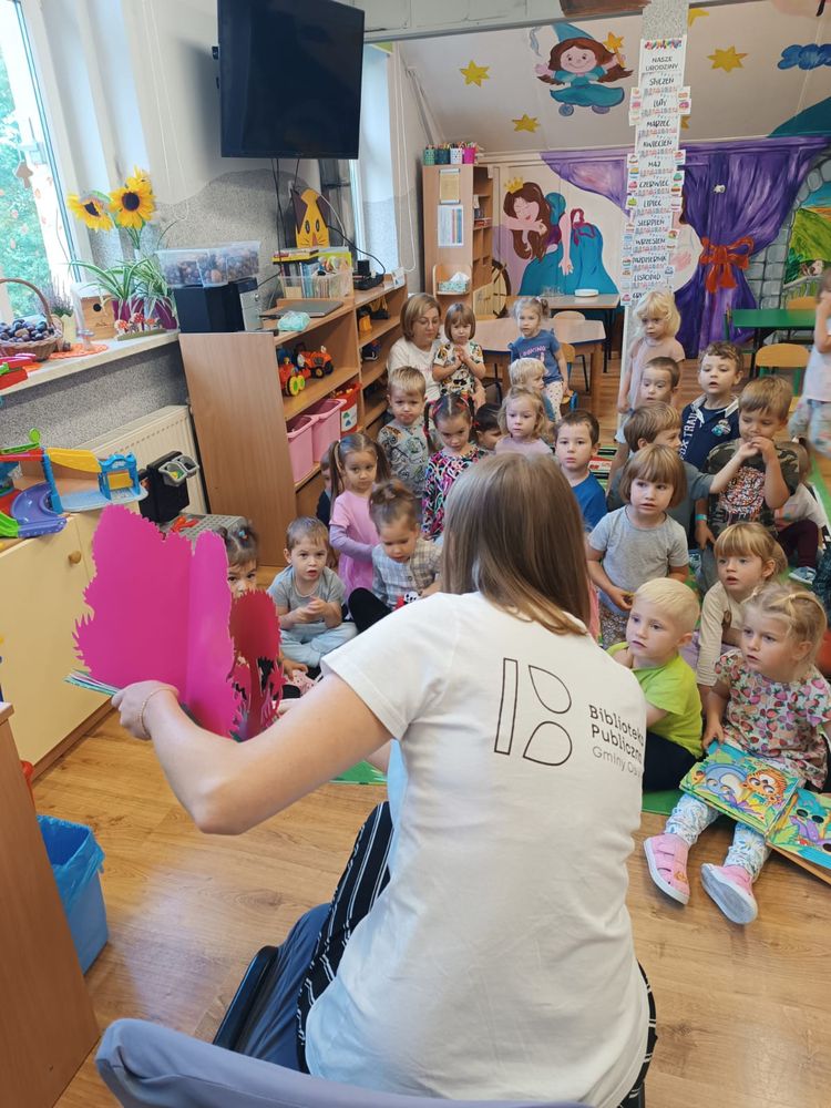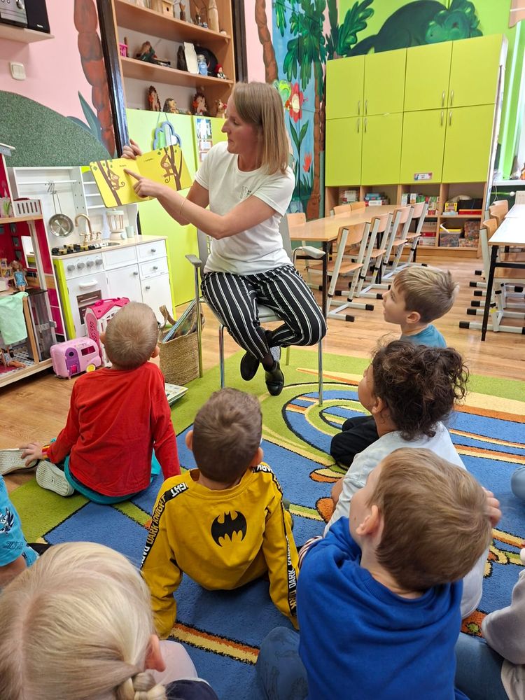 Dnia 26.09.2025 obchodziliśmy w przedszkolu Dzień Głośnego Czytania, którego celem jest promocja głośnego czytania, rozwijanie wyobraźni, słownictwa i pamięci. Naszym gościem specjalnym była Pani z Gminnej Biblioteki Publicznej w Grojcu, która czytała dla młodszych i starszych przedszkolaków teksty znane i nieznane z pięknie wydanych książek. Serdecznie dziękujemy za czas poświęcony szerzeniu czytelnictwa wśród dzieci.